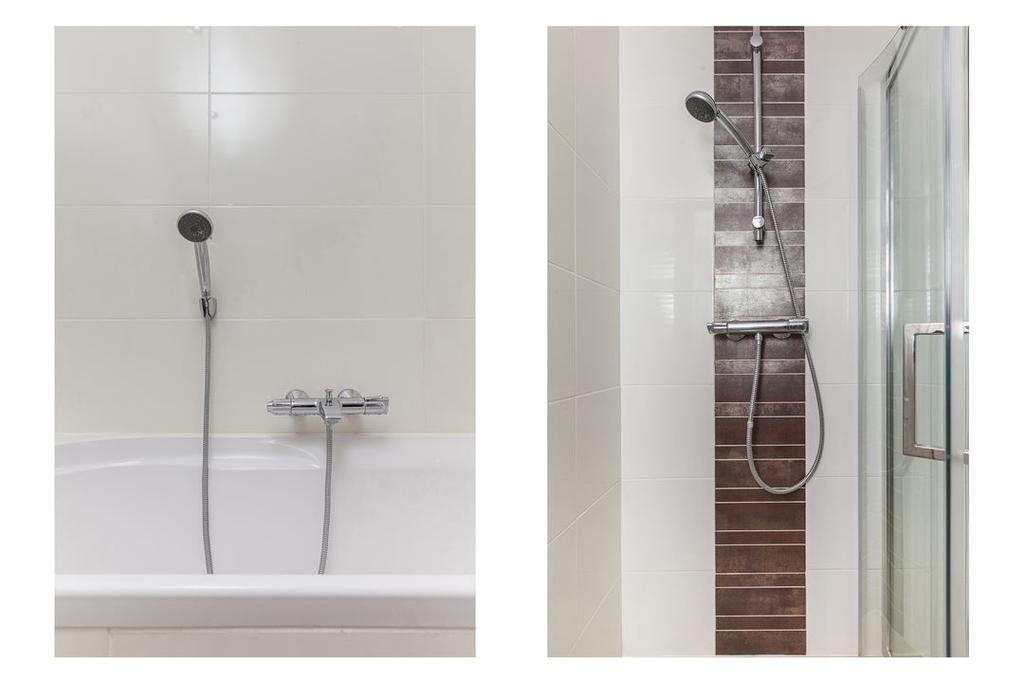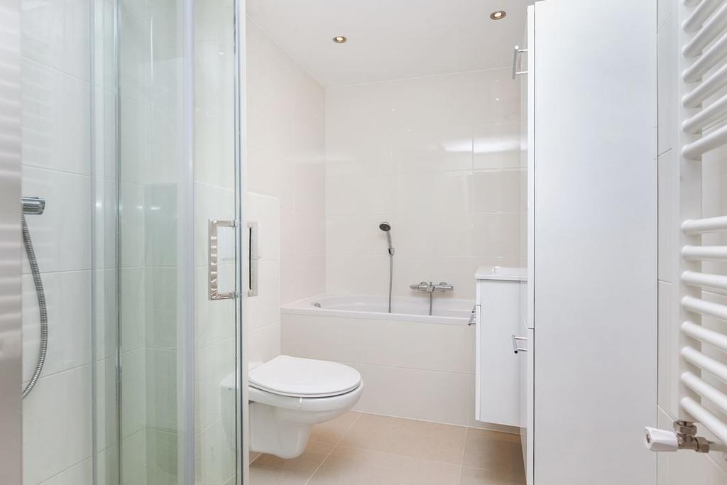 Overloop met toegang tot 2 slaapkamers, badkamer en open trap naar zolderetage. De beide slaapkamers aan de voorzijde zijn vergroot d.m.v. een dakkapel. De badkamer is zeer sfeervol en luxe uitgevoerd met inloopdouche, 2e toilet, ligbad en wastafelmeubel.