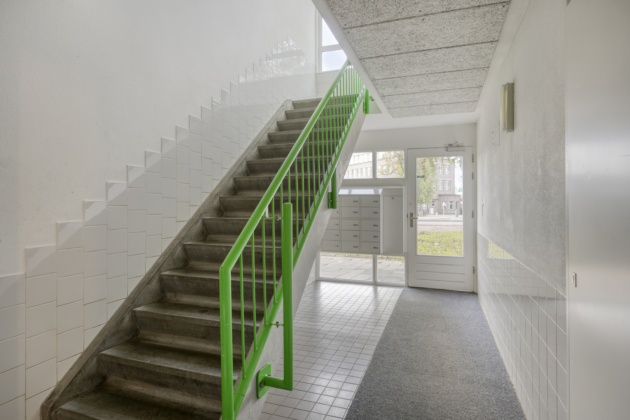 Centrale afgesloten portiek met bellentableau/intercomsysteem en brievenbussen. Op de begane grond bevindt zich ook de prive berging.