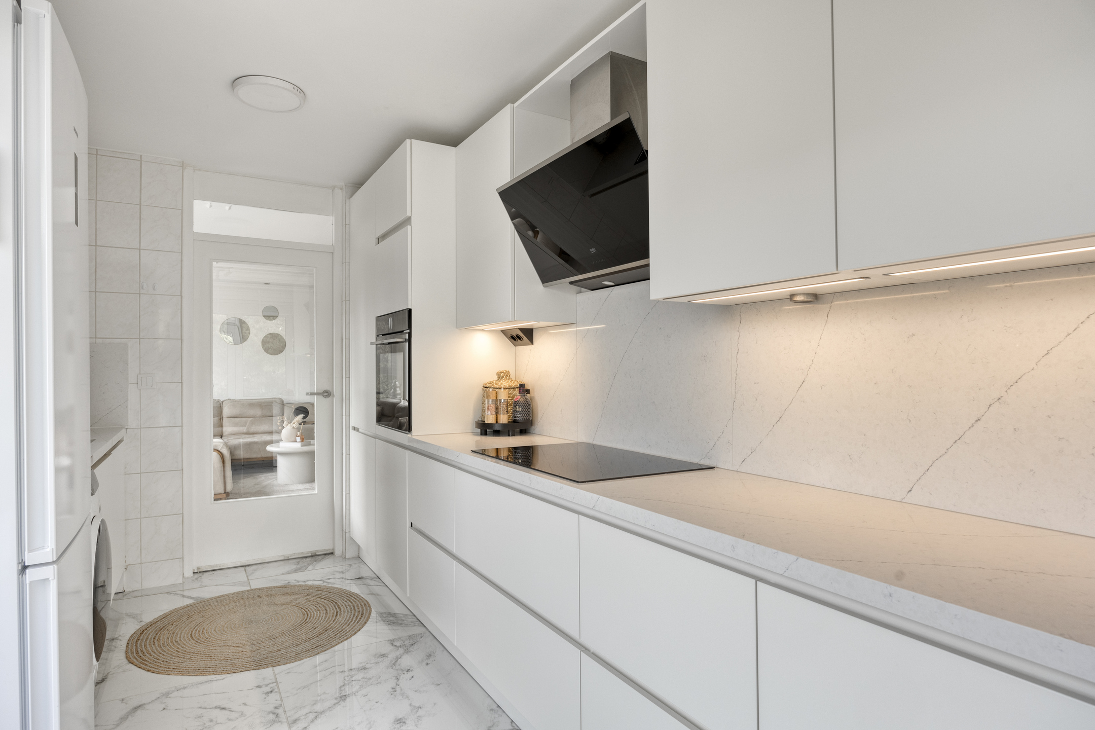 Via de entree/hal zijn alle vertrekken bereikbaar. In de hal bevindt zich de CV-ruimte met een Remeha Avanta combiketel (2015) en de mechanische ventilatie-unit, evenals de meterkast. Het toilet is geheel betegeld en voorzien van een wandcloset en een fonteintje. De inpandige berging biedt handige extra opbergruimte voor bijvoorbeeld proviand, schoonmaakspullen of een fiets. De ruime en lichte woonkamer is een fijne plek om te ontspannen, met grote raampartijen die zorgen voor veel natuurlijke lichtinval. Vanuit de woonkamer is er toegang tot de dichte keuken. De keuken is fraai uitgevoerd en voorzien van een composiet werkblad en diverse moderne inbouwapparatuur, waaronder een nieuwe oven met magnetron-, airfry- en grillfunctie, een inductiekookplaat met afzuigkap, een vaatwasser en een aansluiting voor de wasmachine. Een fijne ruimte voor wie van koken houdt! De badkamer is geheel betegeld en beschikt over een massage douchecabine, een handdoekenradiator en een modern badkamermeubel met bergruimte. Er zijn drie slaapkamers, stuk voor stuk van goed formaat en prettig in te delen als hoofdslaapkamer, kinderkamer of werkkamer.
