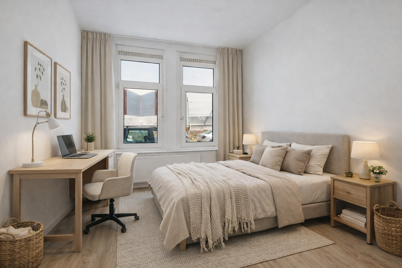 De slaapkamer bevindt zich aan de voorzijde van de... Lees meer