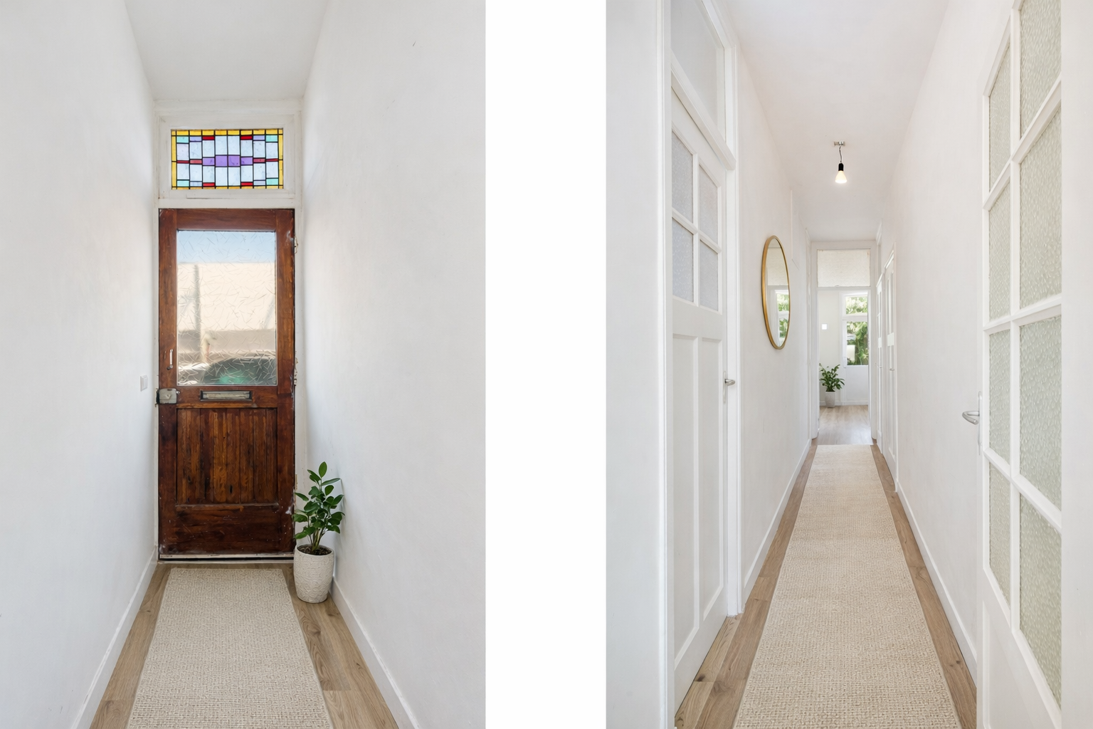 Eigen entree in het tochtportaal, hal met toegang tot alle vertrekken en een bergruimte onder de trap.