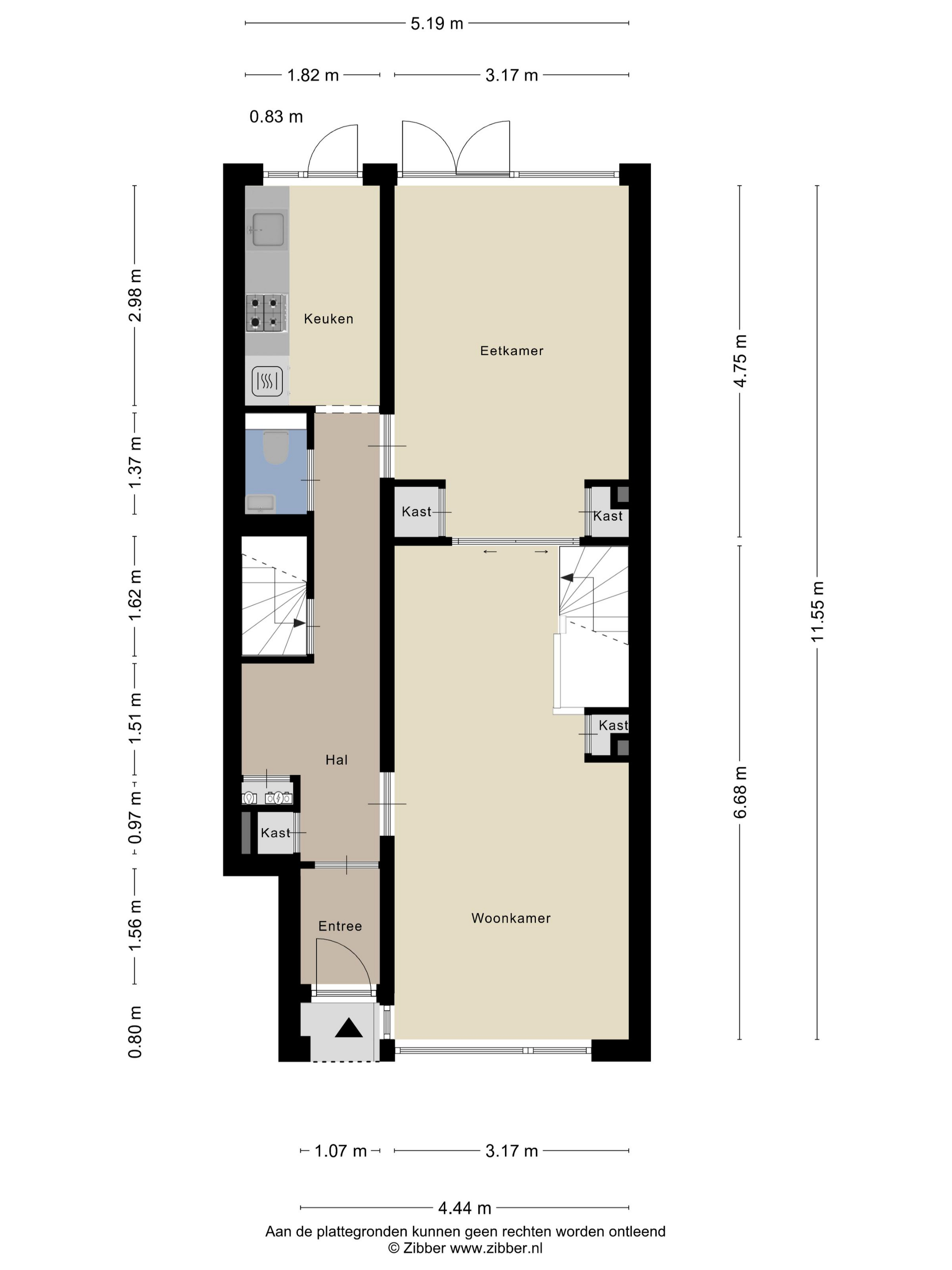Voor de afmetingen van de diverse vertrekken verwijzen wij u naar de plattegronden.