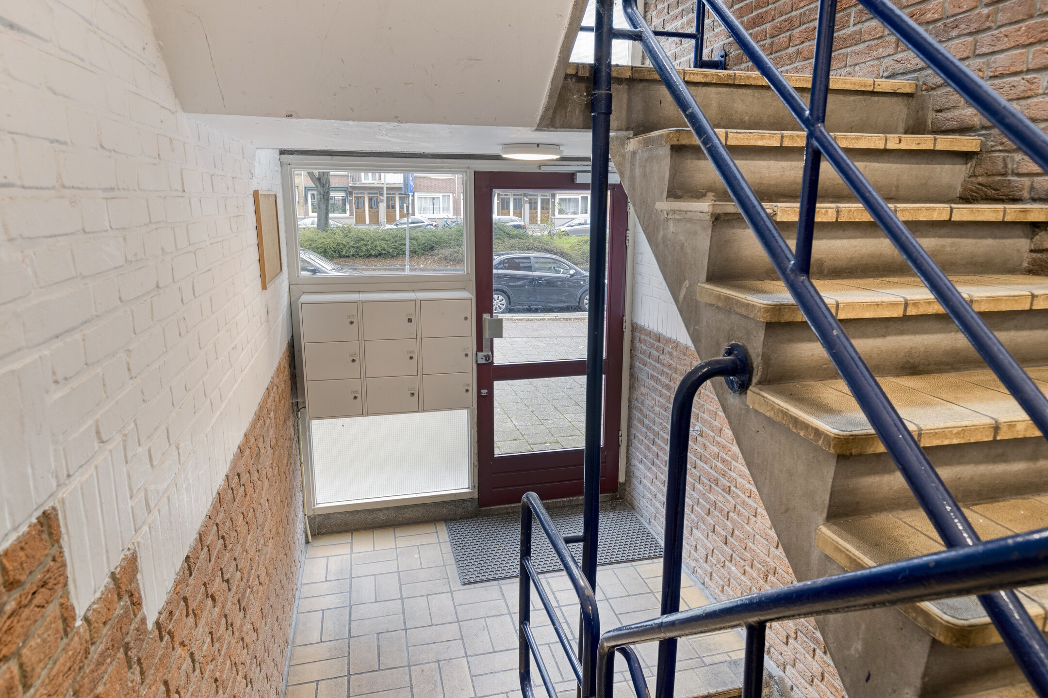 Afgesloten portiek met bellentableau/intercom en brievenbussen. In de onderbouw bevindt zich de eigen berging, ideaal voor fietsen, seizoensspullen of extra opslagruimte.