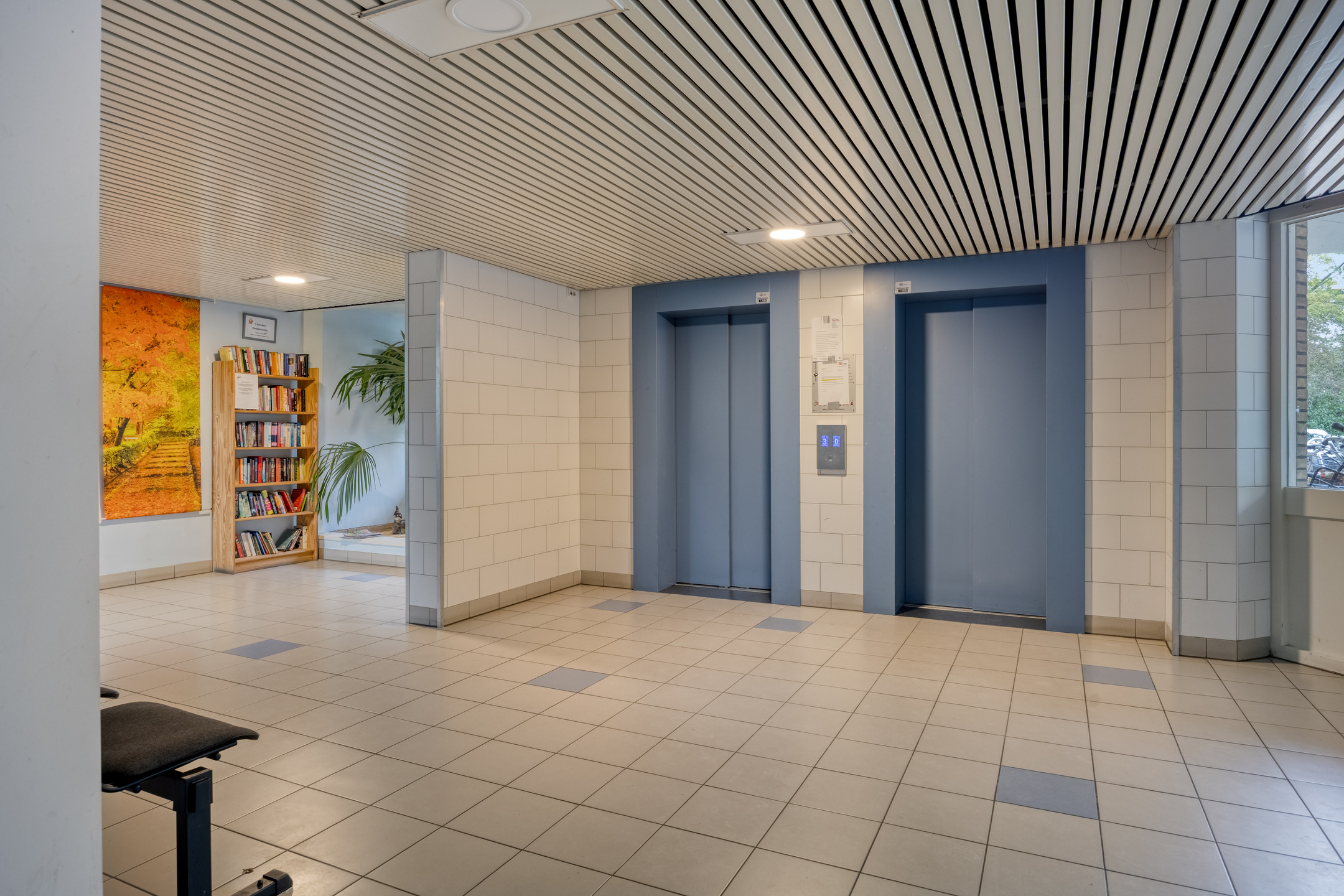 Afgesloten entree met bellentableau/intercom, brievenbussen, lift en trappenhuis. Hier bevinden zich eveneens de bergingen.