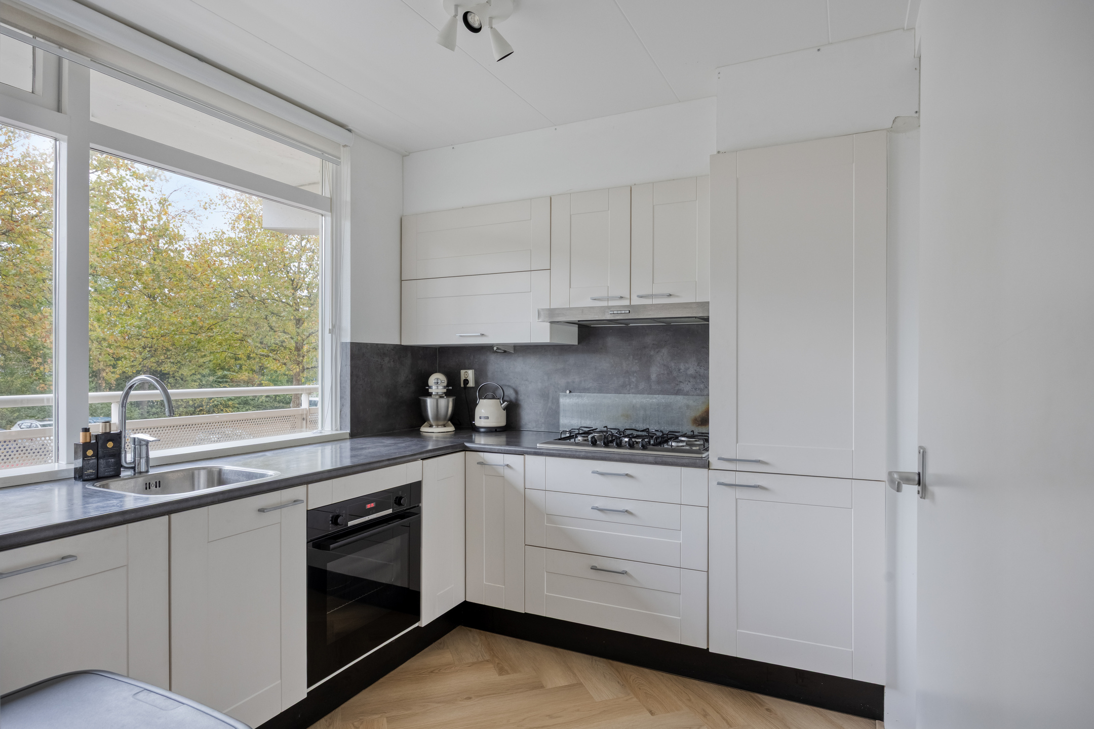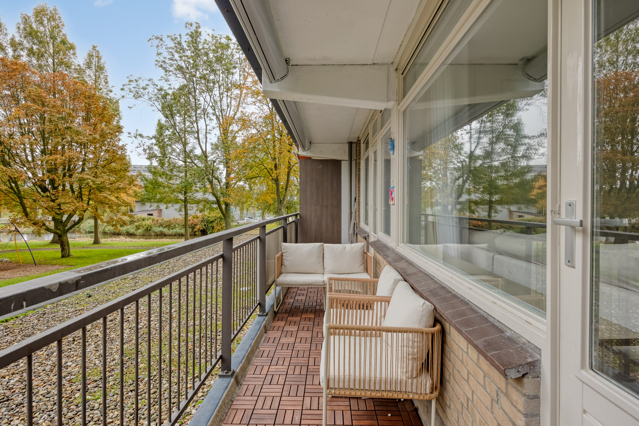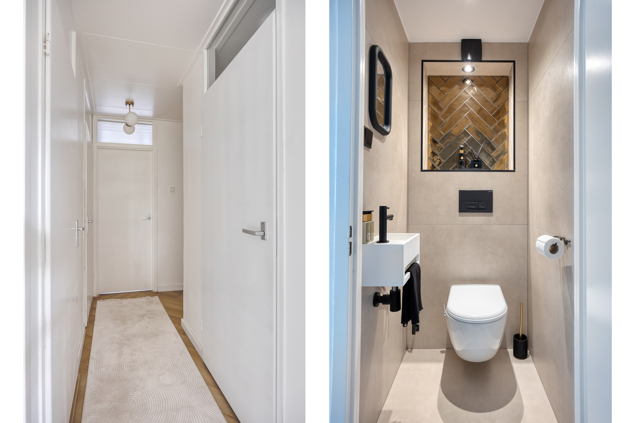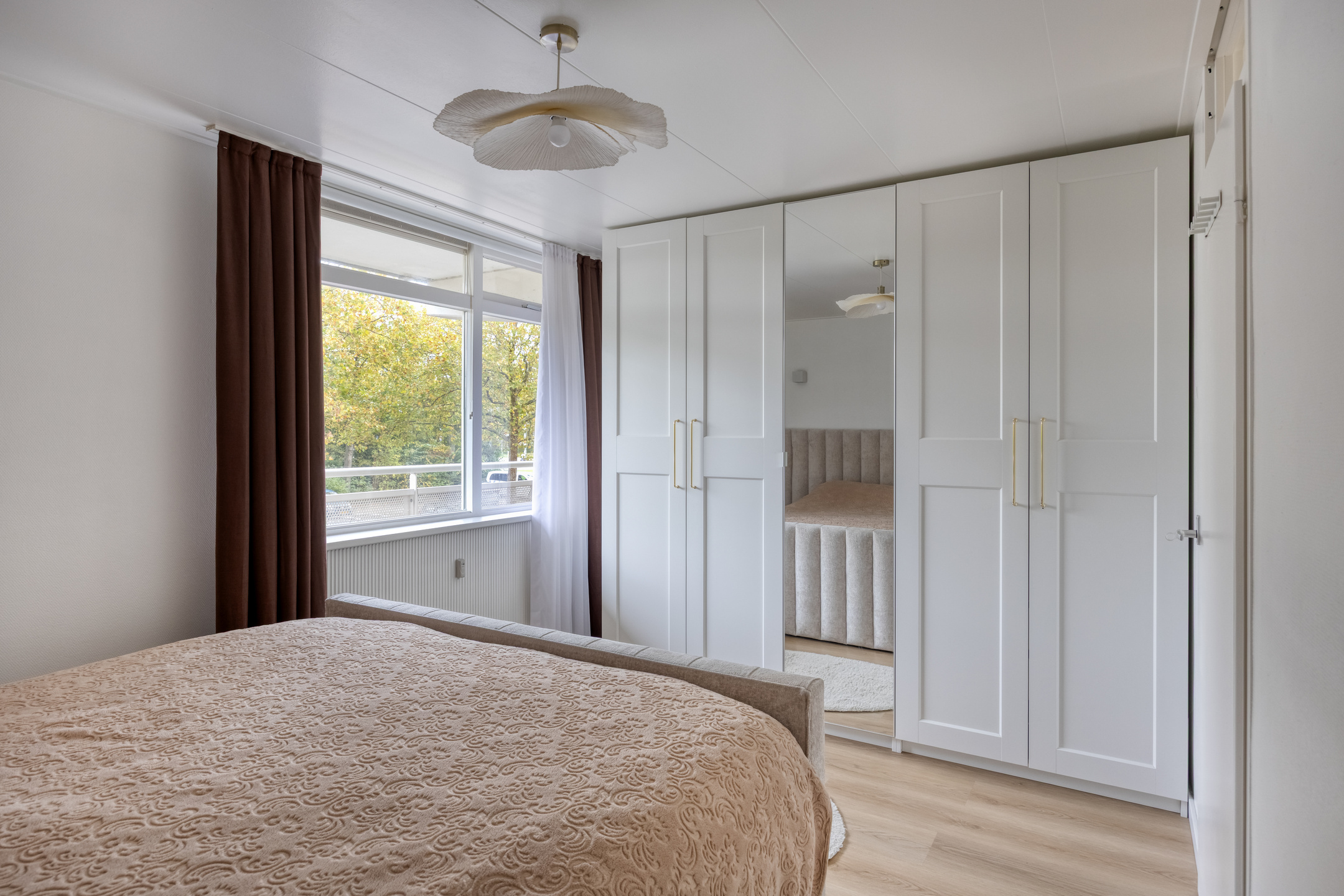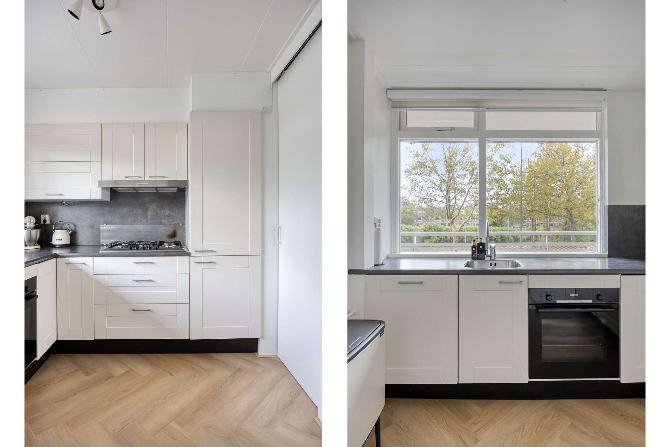 Entree/hal met toegang tot de verschillende vertrekken. De dichte keuken is uitgevoerd in een moderne hoekopstelling en voorzien van diverse inbouwapparatuur, waaronder een oven (2025), vaatwasser (2025), 5-pits gaskookplaat met afzuigkap, koel-/vriescombinatie en een handige draaicarrousel. Extra praktisch is de schuifwandkast met volop bergruimte. Aangrenzend bevindt zich de ruime en lichte woonkamer, met toegang tot het heerlijk royale woning brede balkon. Dit zonnige balkon is gelegen op het zuiden en biedt een prachtig vrij uitzicht over groen, water en een speelplaats. De masterbedroom (slaapkamer 1) ligt aan de galerijzijde. De fraai afgewerkte toiletruimte is luxe betegeld en voorzien van een wandcloset en fonteintje. De zeer smaakvolle badkamer is eveneens hoogwaardig afgewerkt en uitgerust met een verlichte ronde spiegel, modern badmeubel, ruime inloopdouche en mechanische ventilatie. Daarnaast is er een aparte wasruimte met boiler en wasmachineaansluiting. De slaapkamers 2 en 3 liggen aan de achterzijde; vanuit één van deze kamers heeft u eveneens toegang tot het balkon.