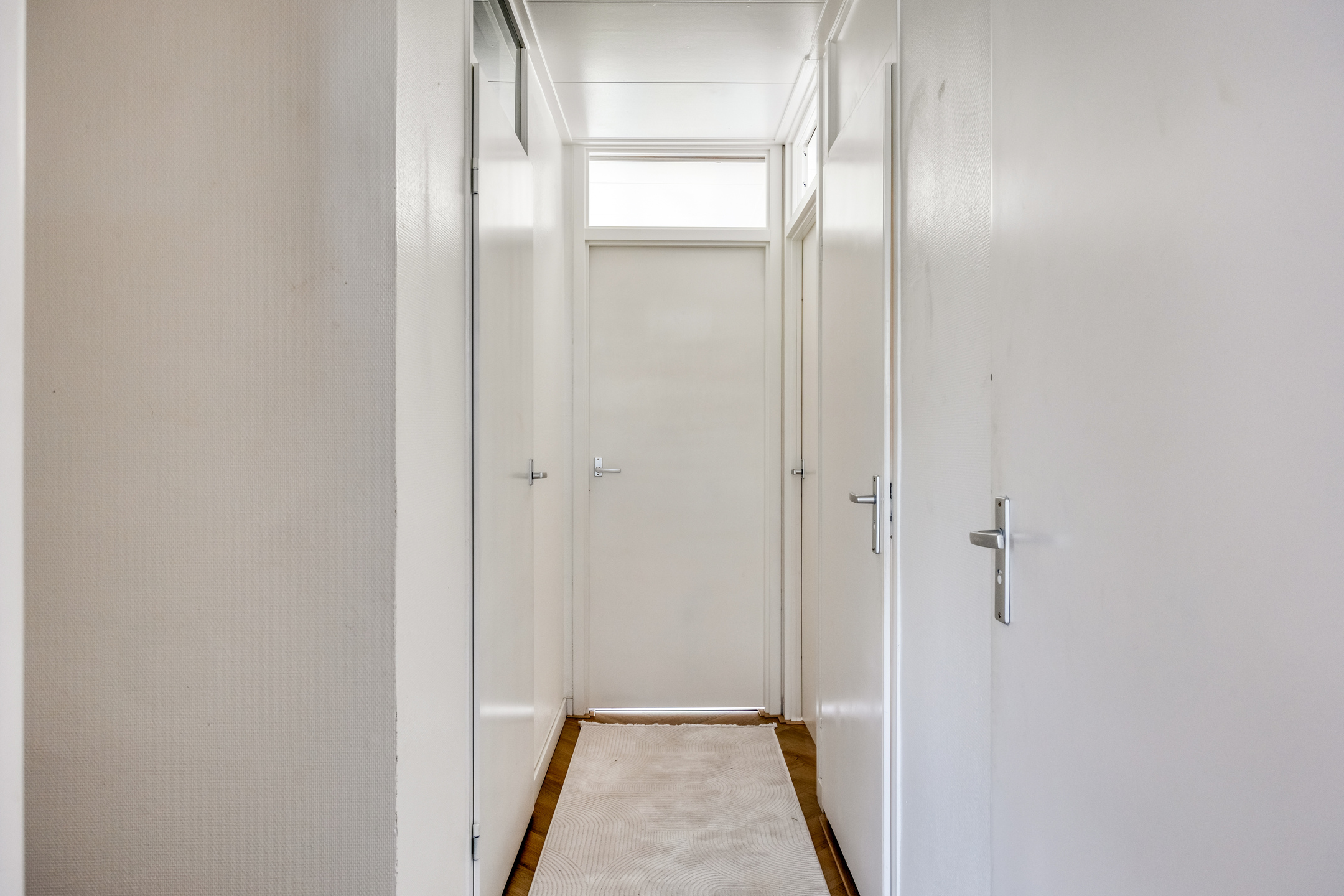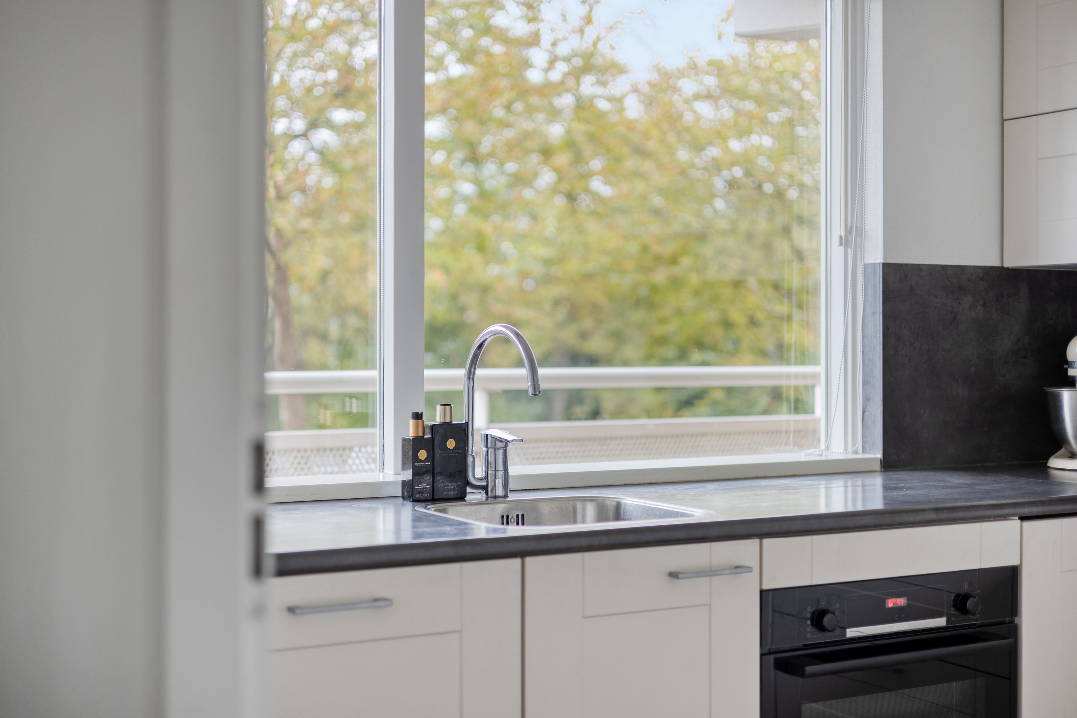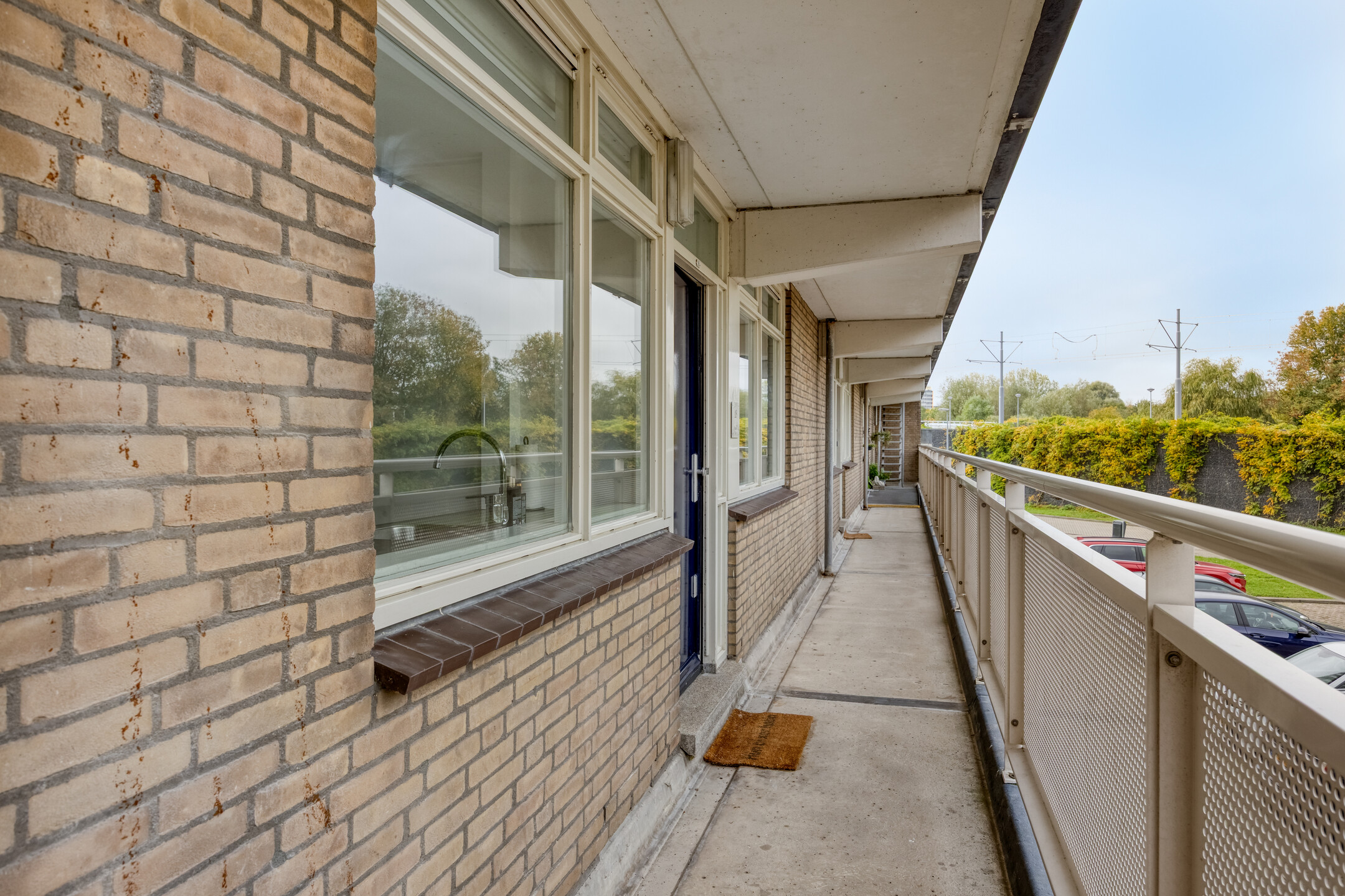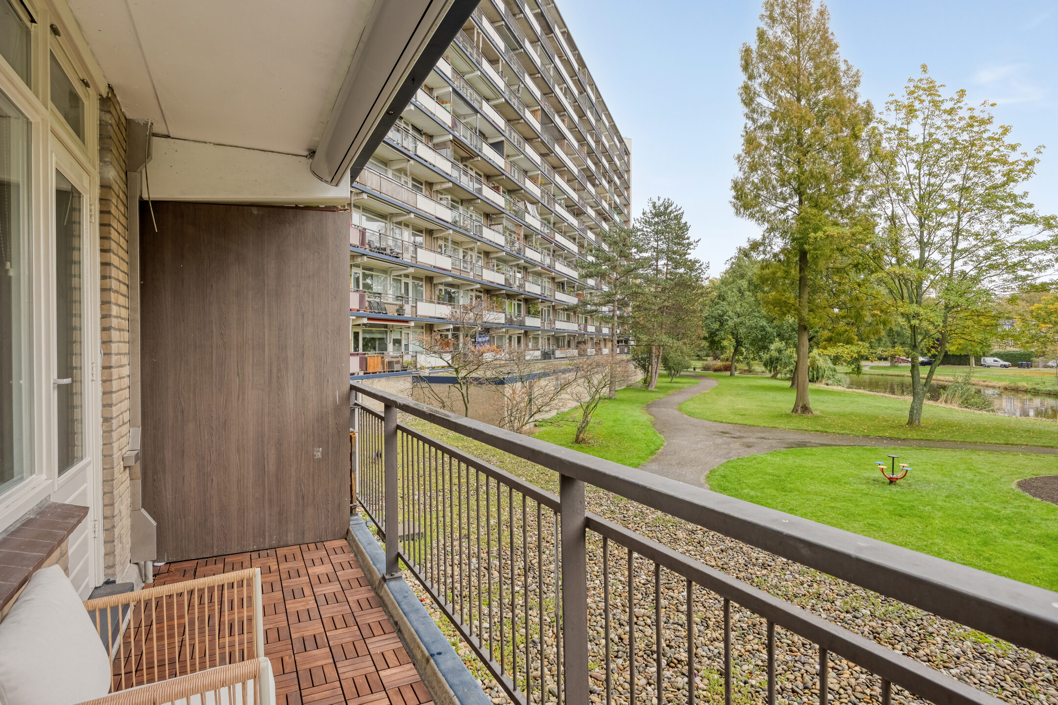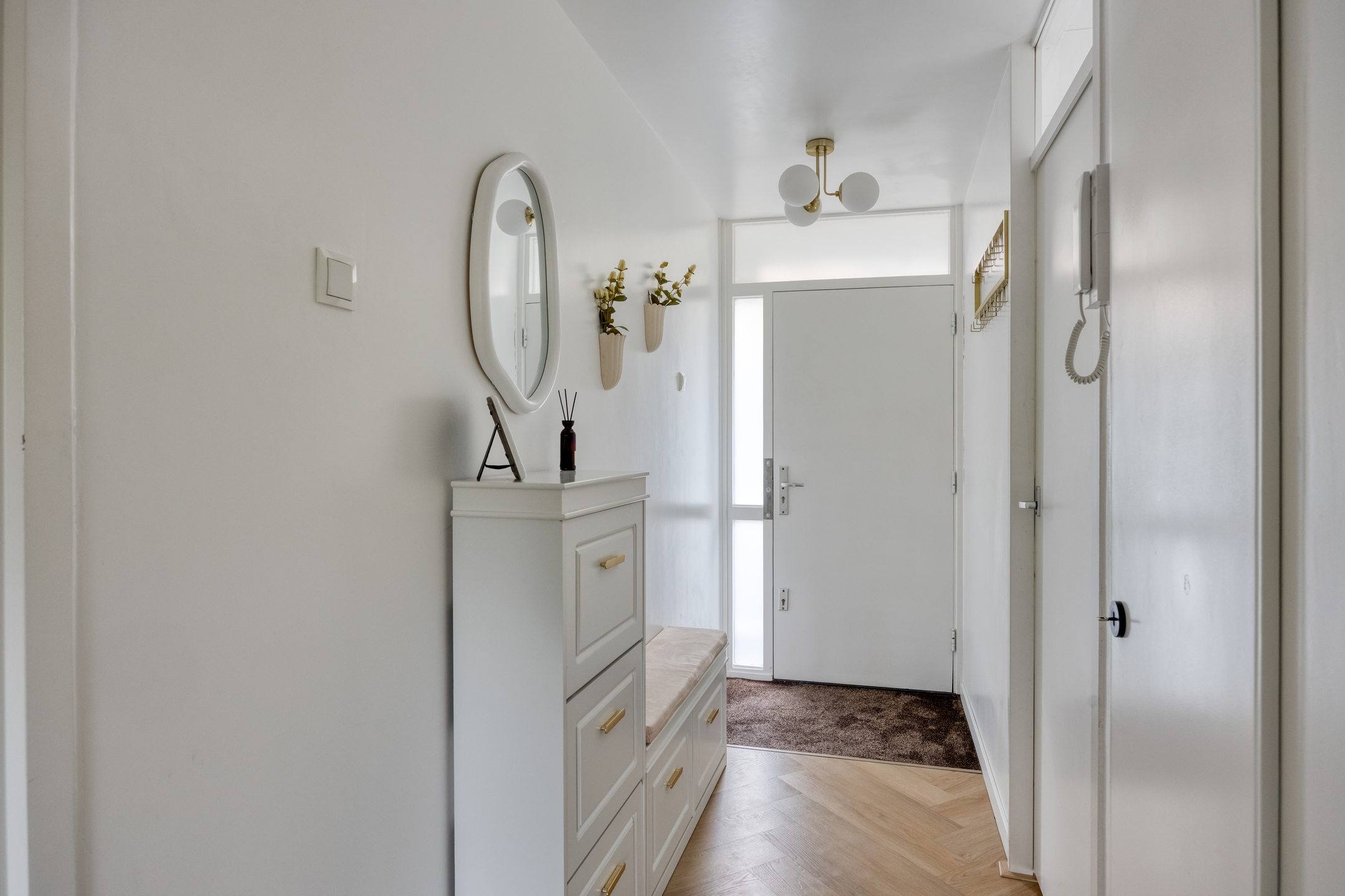 Entree/hal met toegang tot de verschillende vertrekken. De dichte keuken is uitgevoerd in een moderne hoekopstelling en voorzien van diverse inbouwapparatuur, waaronder een oven (2025), vaatwasser (2025), 5-pits gaskookplaat met afzuigkap, koel-/vriescombinatie en een handige draaicarrousel. Extra praktisch is de schuifwandkast met volop bergruimte. Aangrenzend bevindt zich de ruime en lichte woonkamer, met toegang tot het heerlijk royale woning brede balkon. Dit zonnige balkon is gelegen op het zuiden en biedt een prachtig vrij uitzicht over groen, water en een speelplaats. De masterbedroom (slaapkamer 1) ligt aan de galerijzijde. De fraai afgewerkte toiletruimte is luxe betegeld en voorzien van een wandcloset en fonteintje. De zeer smaakvolle badkamer is eveneens hoogwaardig afgewerkt en uitgerust met een verlichte ronde spiegel, modern badmeubel, ruime inloopdouche en mechanische ventilatie. Daarnaast is er een aparte wasruimte met boiler en wasmachineaansluiting. De slaapkamers 2 en 3 liggen aan de achterzijde; vanuit één van deze kamers heeft u eveneens toegang tot het balkon.
