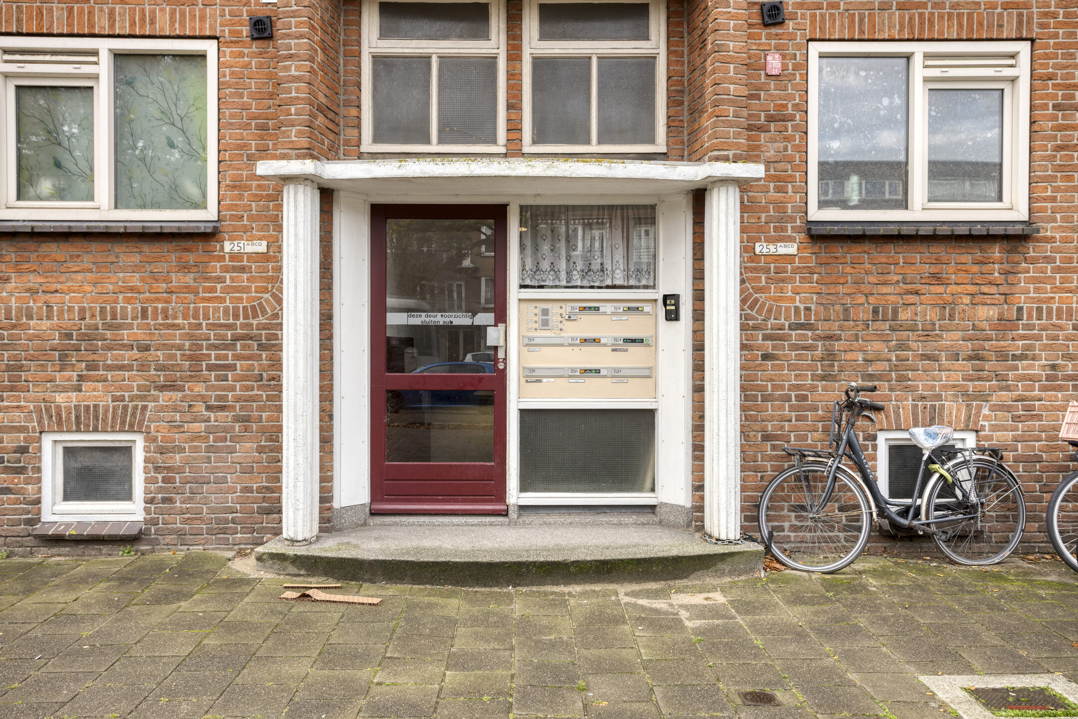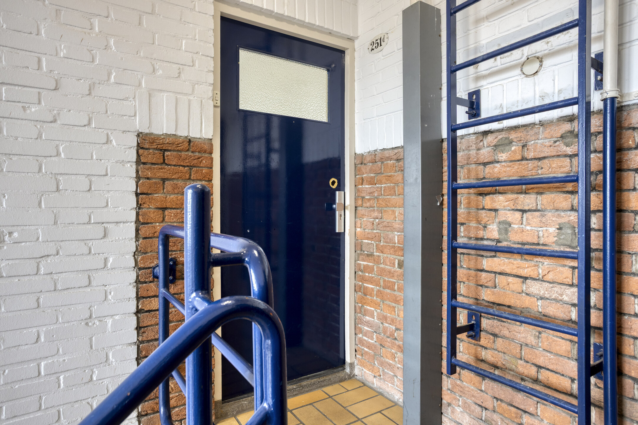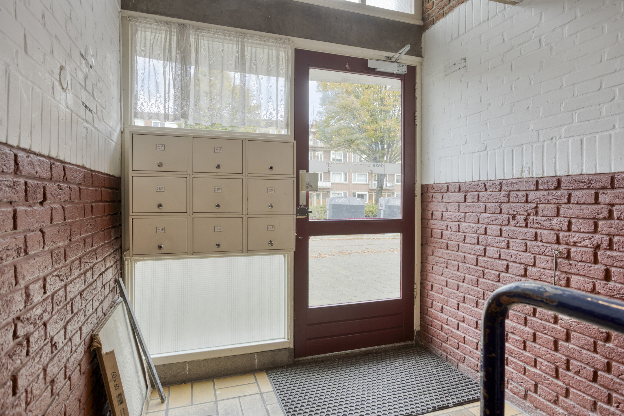 Afgesloten portiek met bellentableau/intercom en brievenbussen. In de onderbouw bevindt zich de eigen berging, ideaal voor fietsen, seizoensspullen of extra opslagruimte.