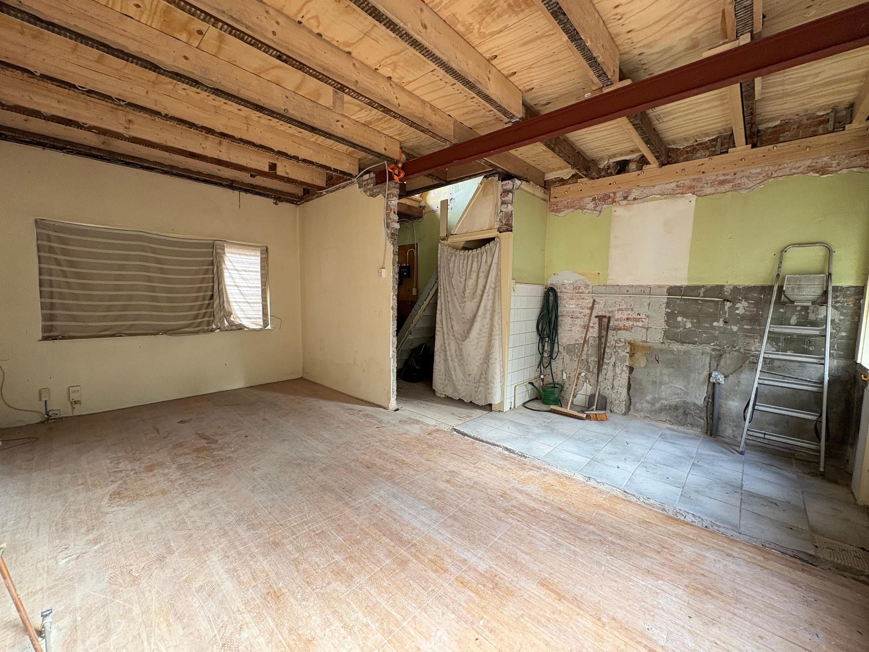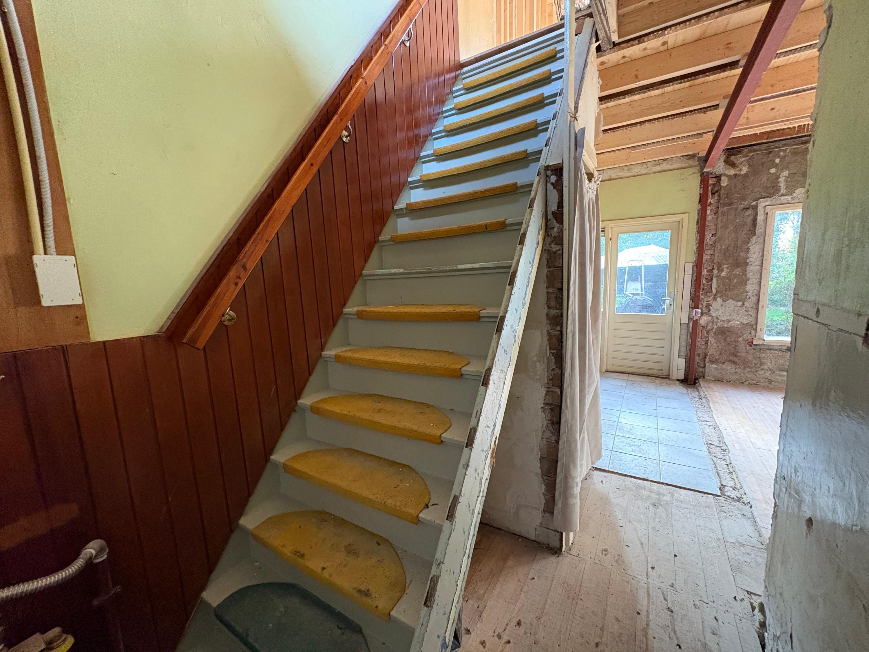 Entree, hal met meterkast, trapopgang naar de eerste verdieping, toiletruimte en toegang tot de woonkamer en keuken. Op de begane grond ligt nog alle ruimte open voor jouw eigen plannen. De keuken, woonkamer, hal en het toilet dienen volledig opnieuw opgebouwd te worden, een mooie kans om alles naar eigen smaak in te richten.