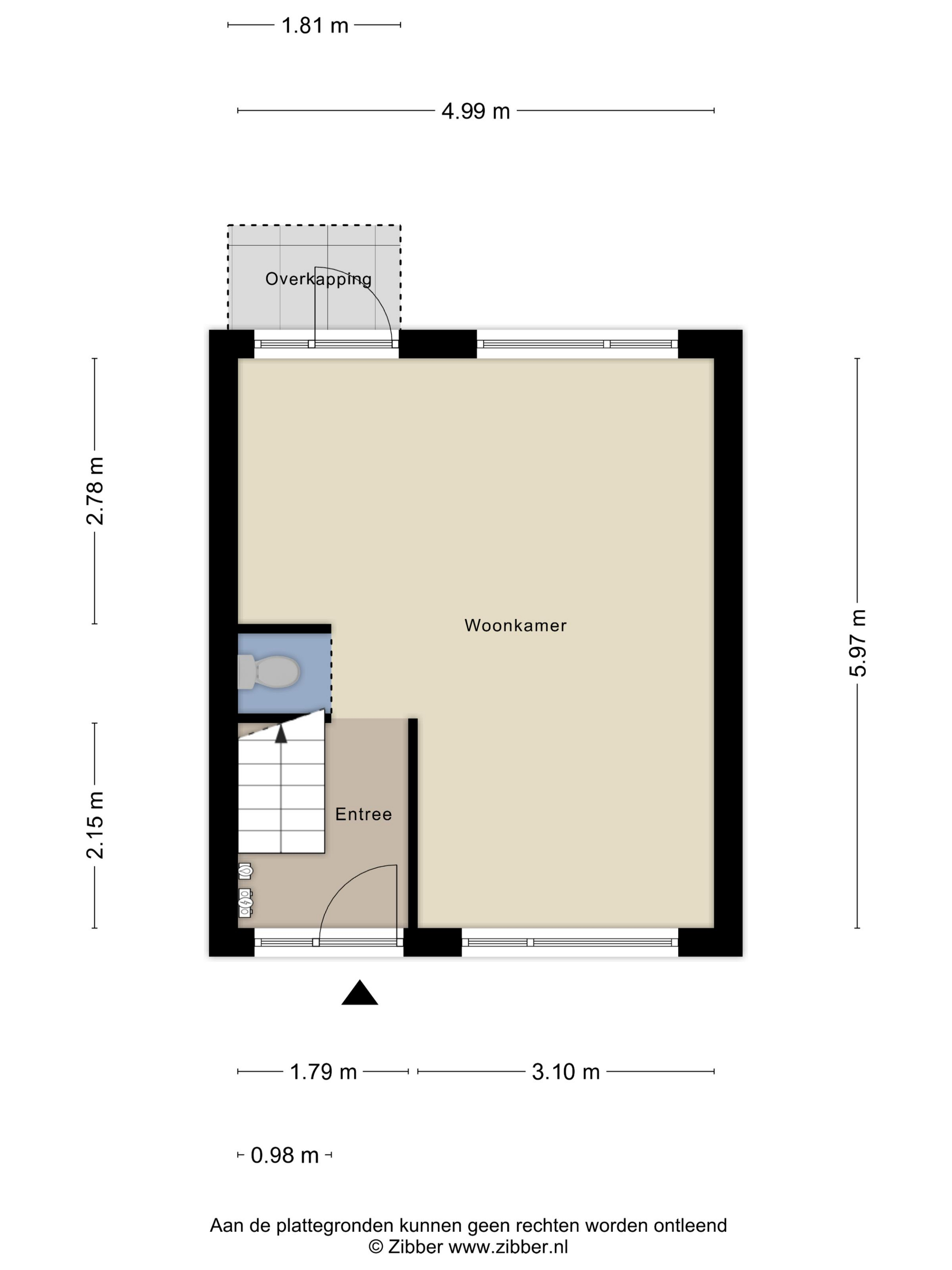 Entree, hal met meterkast, trapopgang naar de eerste verdieping, toiletruimte en toegang tot de woonkamer en keuken. Op de begane grond ligt nog alle ruimte open voor jouw eigen plannen. De keuken, woonkamer, hal en het toilet dienen volledig opnieuw opgebouwd te worden, een mooie kans om alles naar eigen smaak in te richten.