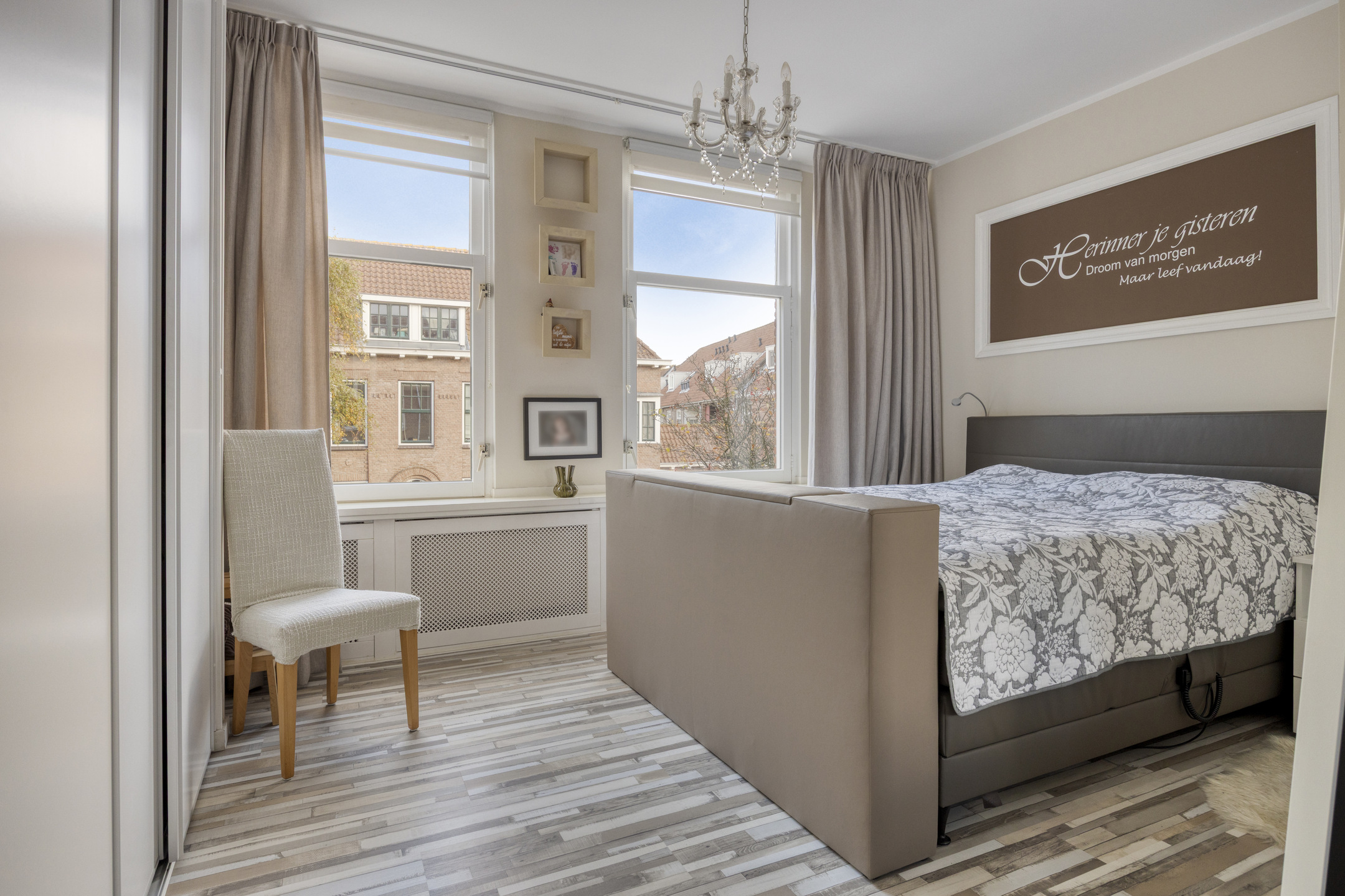 De overloop beschikt over een vaste kast en geeft toegang tot twee ruime slaapkamers. Slaapkamer 1 is voorzien van een praktische schuifwandkast en slaapkamer 2 heeft een deur naar het royale balkon op het zuiden — heerlijk om in de ochtendzon te genieten van een kop koffie.