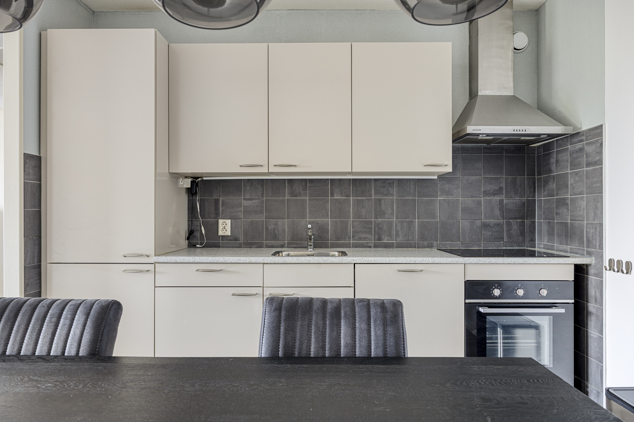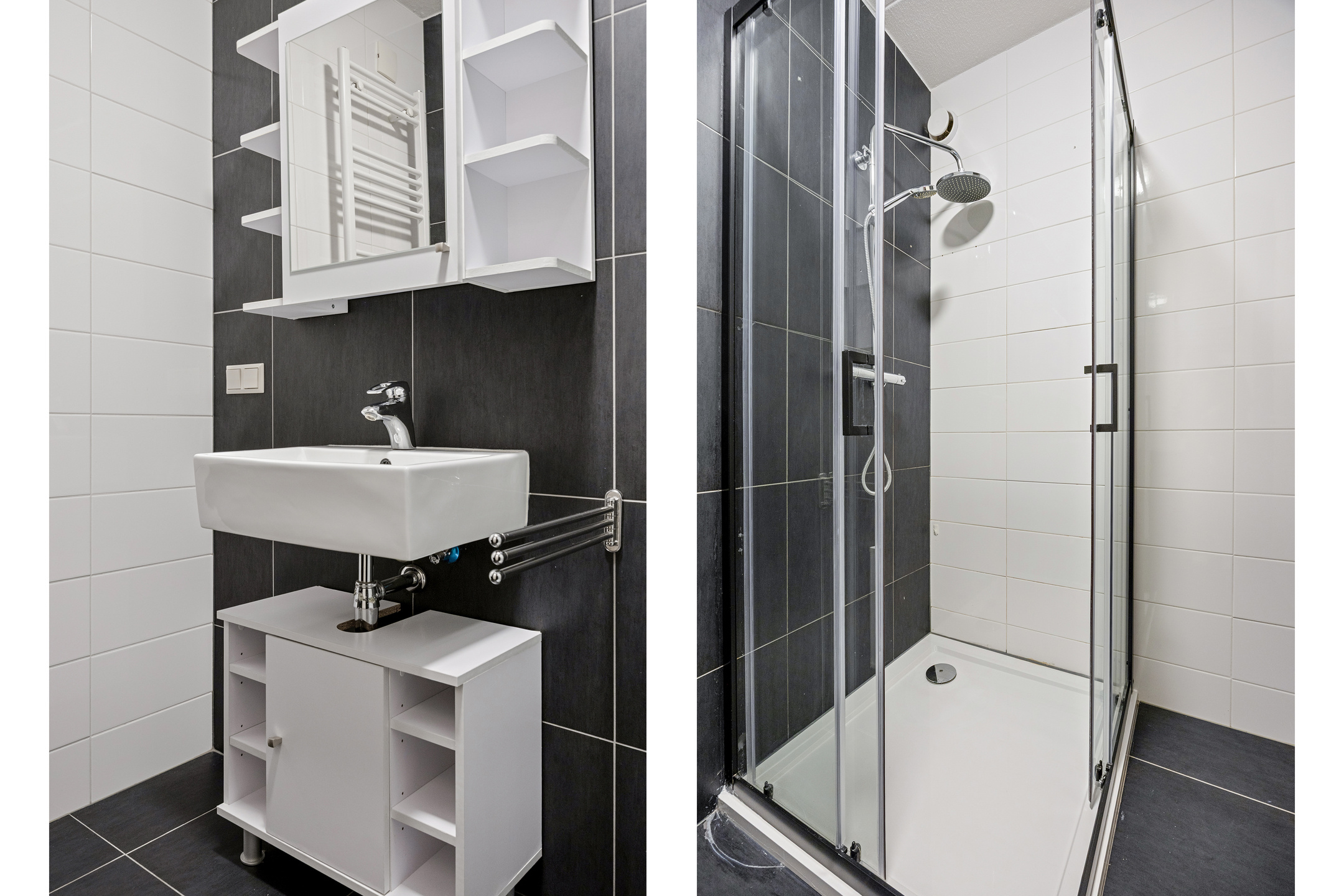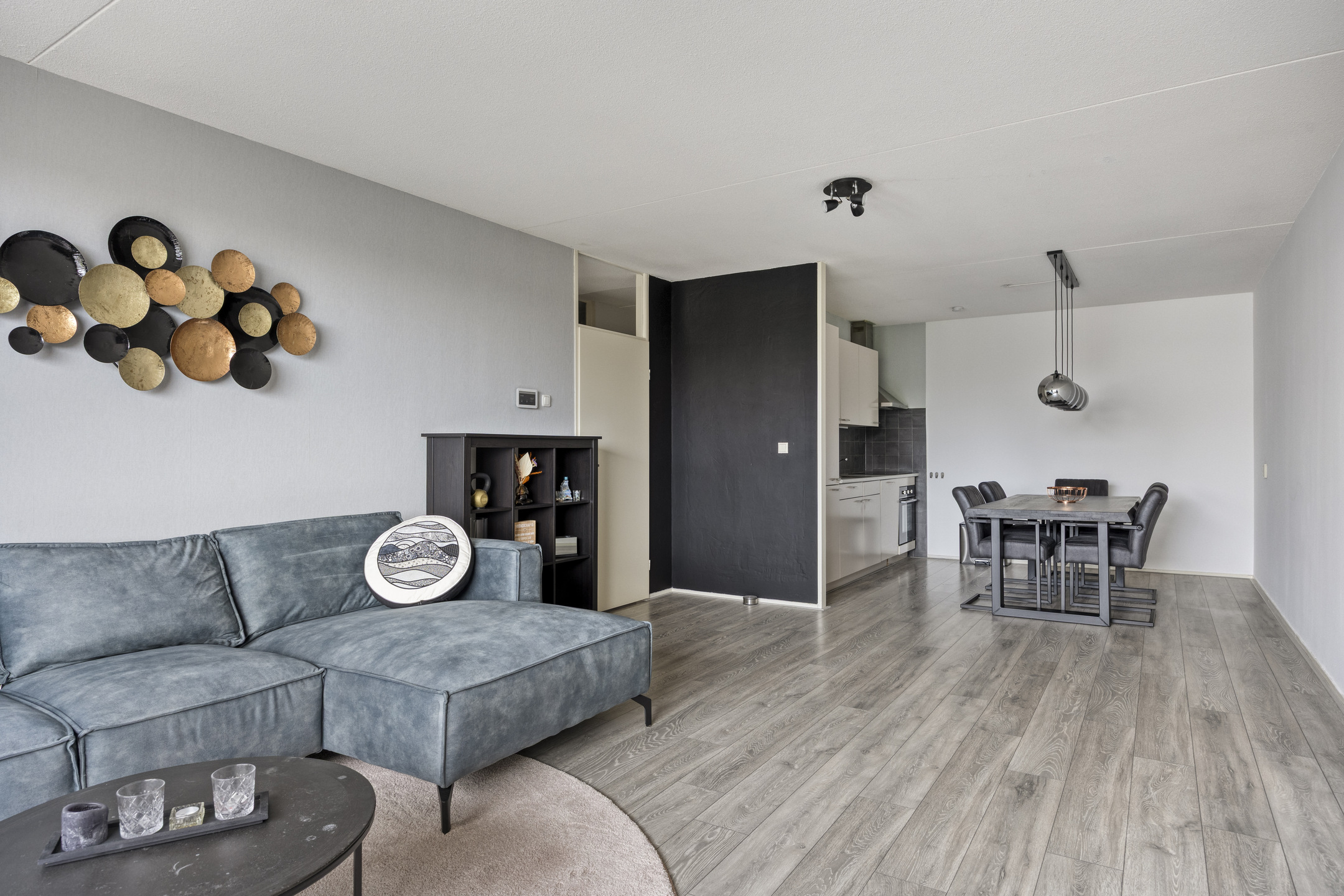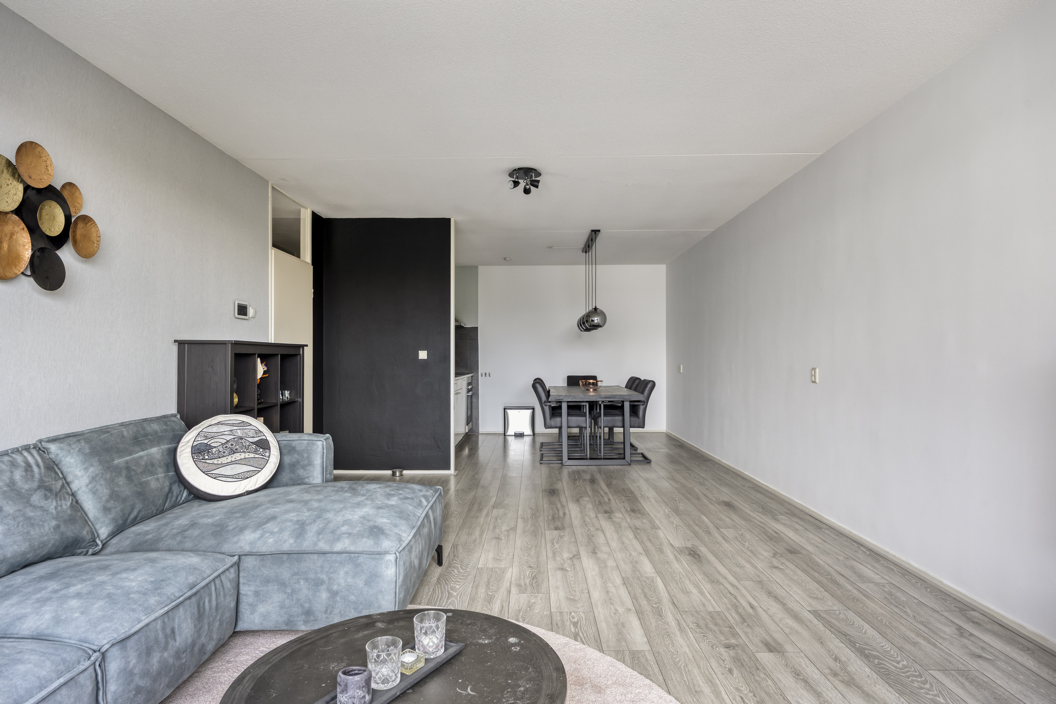 Entree, hal met meterkast en toegang tot alle vertrekken. De woonkamer is gelegen aan de achterzijde van de woning en heerlijk licht door de grote raampartij. De ramen zijn voorzien van een elektrisch bedienbaar screen. De open keuken beschikt over diverse inbouwapparatuur zoals een koel-/vries combinatie, 4-zones inductiekookplaat, vaatwasser, afzuigkap en een oven. De slaapkamer van ca. 12 m² is gelegen aan de achterzijde van de woning en geeft toegang tot het balkon. De moderne badkamer is voorzien van een douche en een wastafelmeubel met spiegelkast. Separaat bevindt zich de toiletruimte en een inpandige berging, waarin de opstelplaats van de cv-combiketel, aansluiting voor wasmachine en droger zich bevinden.