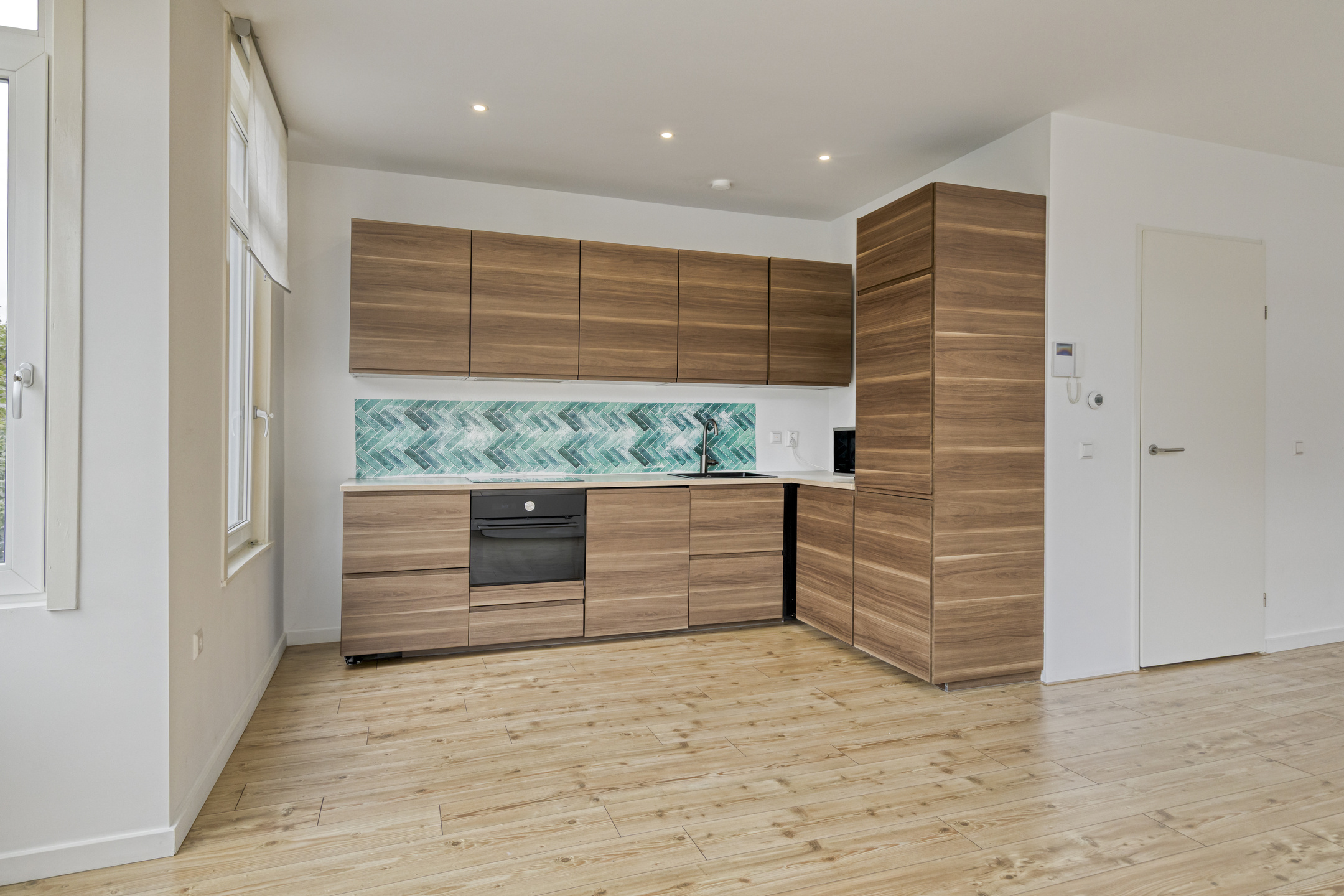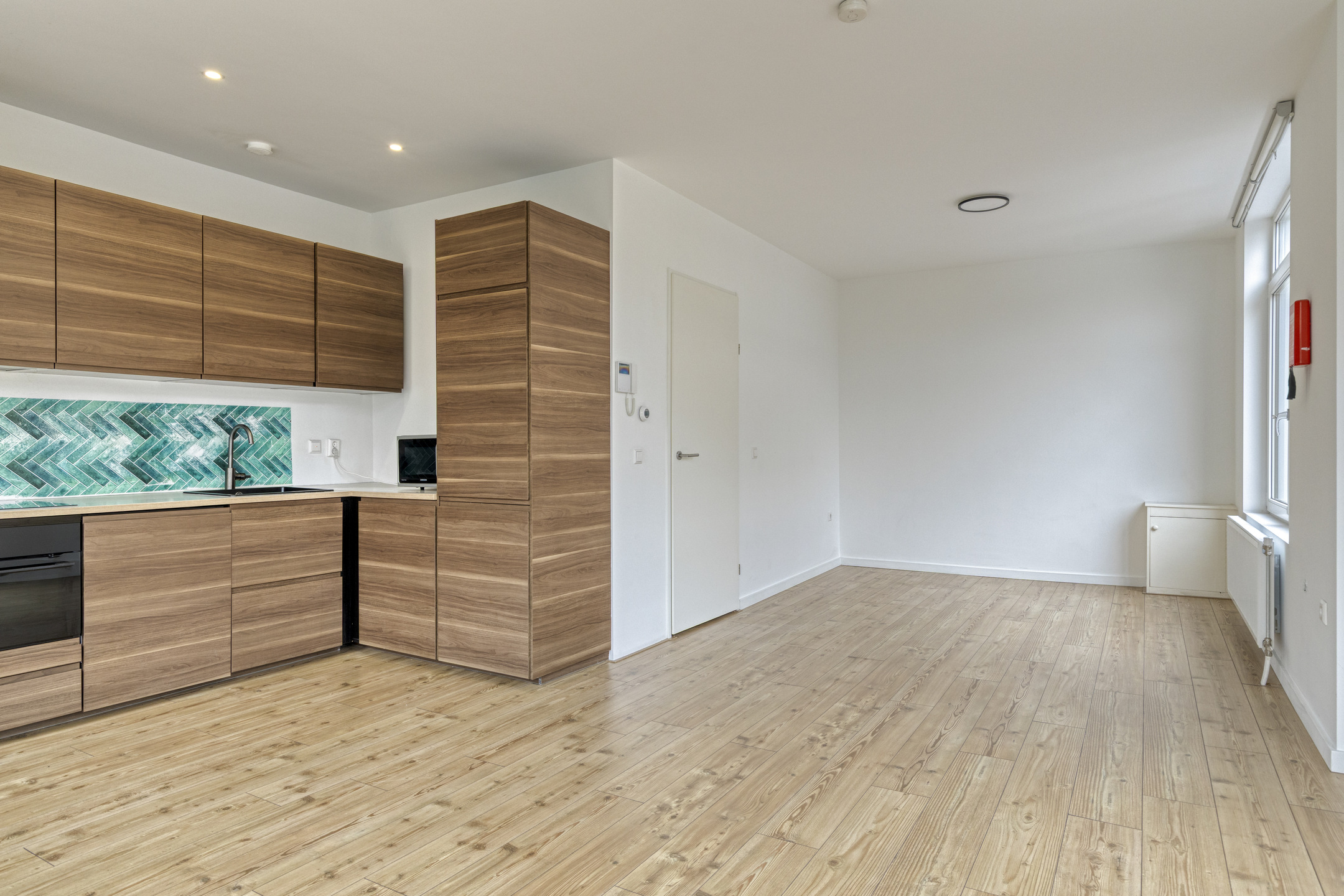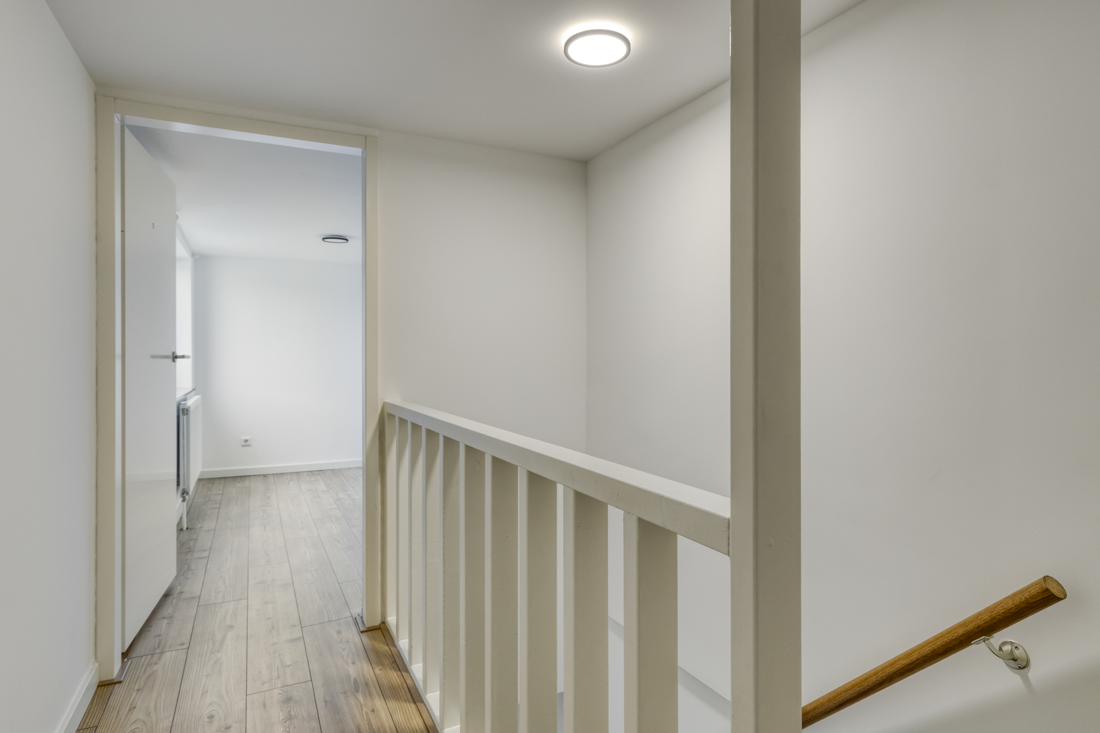 Hier begint het woongenot! Een lichte overloop leidt naar het moderne, luxe afgewerkte toilet met wandcloset, fonteintje en mechanische afzuiging. De royale woonkamer is een fijne leefruimte met veel lichtinval. De open hoekkeuken sluit hier naadloos op aan en is volledig uitgerust met een inductie kookplaat, geïntegreerde afzuigkap, oven, vaatwasser en koel-/vriescombinatie. De laminaatvloer zorgt voor een strakke en sfeervolle uitstraling.