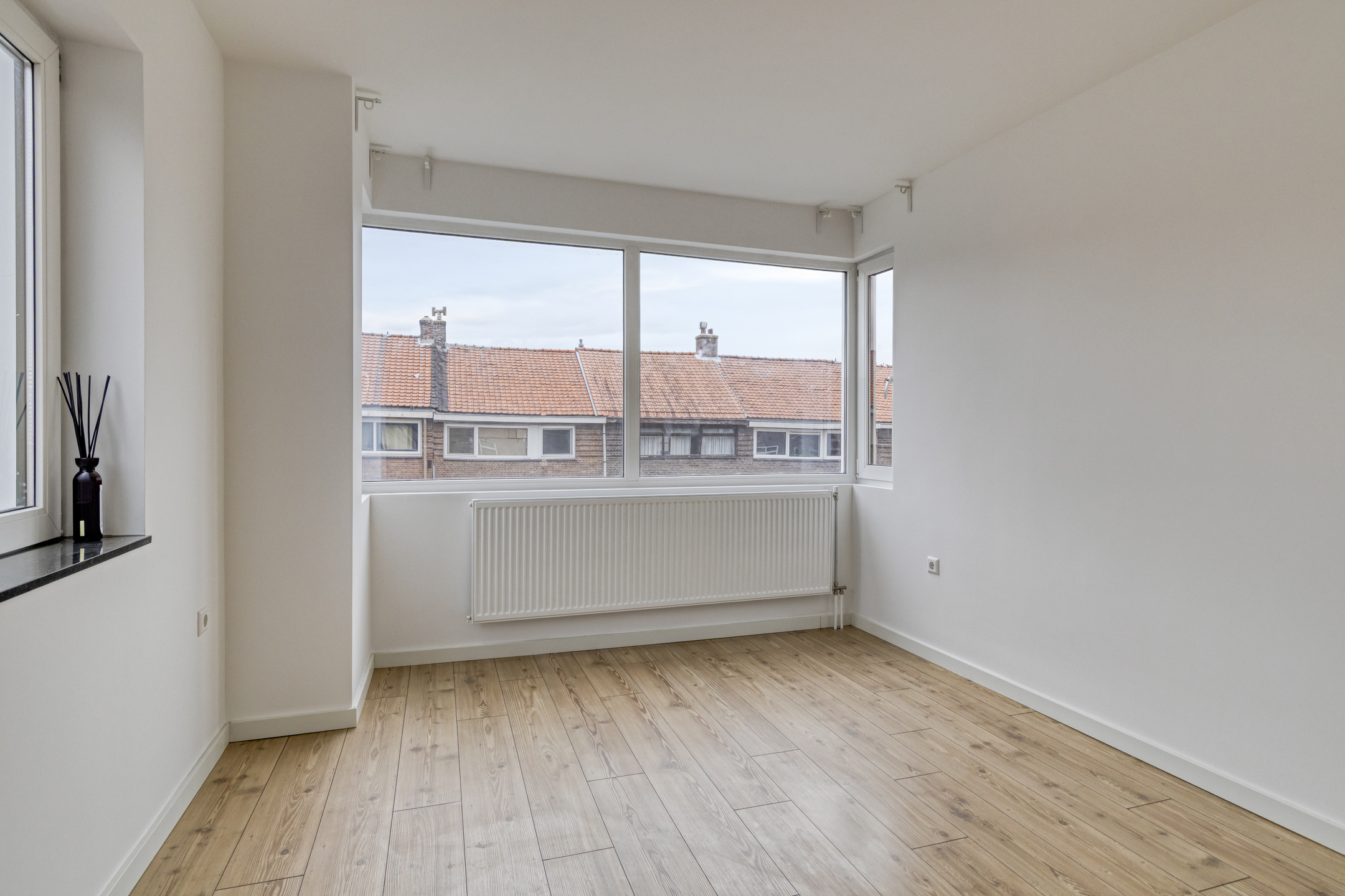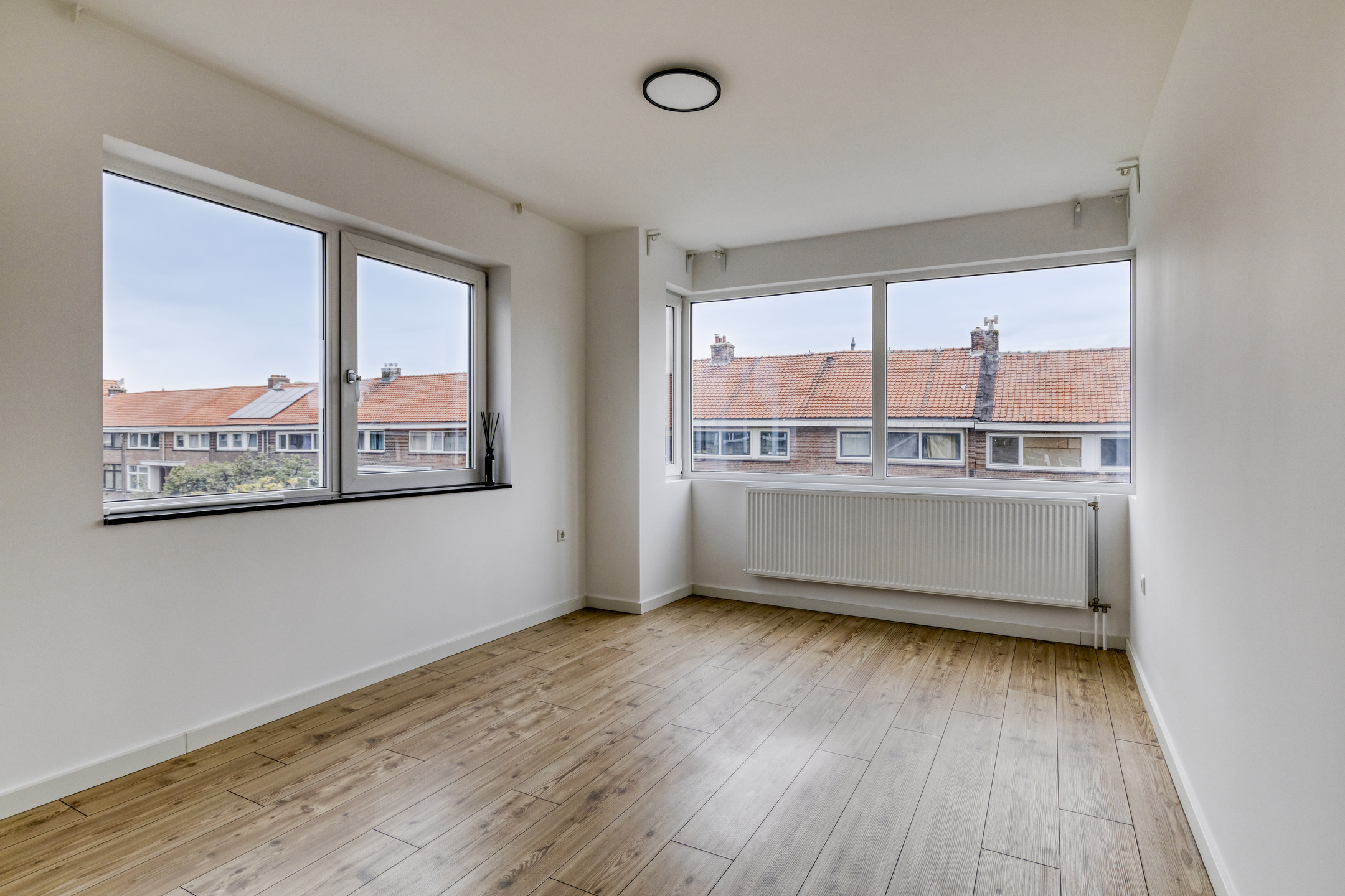 De verrassend ruime zolderverdieping biedt nog twee slaapkamers. Eén van de kamers geeft toegang tot een heerlijk groot dakterras op het zonnige zuidwesten – een perfecte plek om te genieten van de middag- en avondzon. In de andere kamer bevindt zich de CV-ruimte met Remeha CV-combiketel (2023) en de mechanische ventilatie-unit. Uiteraard is ook deze verdieping volledig afgewerkt met laminaat.