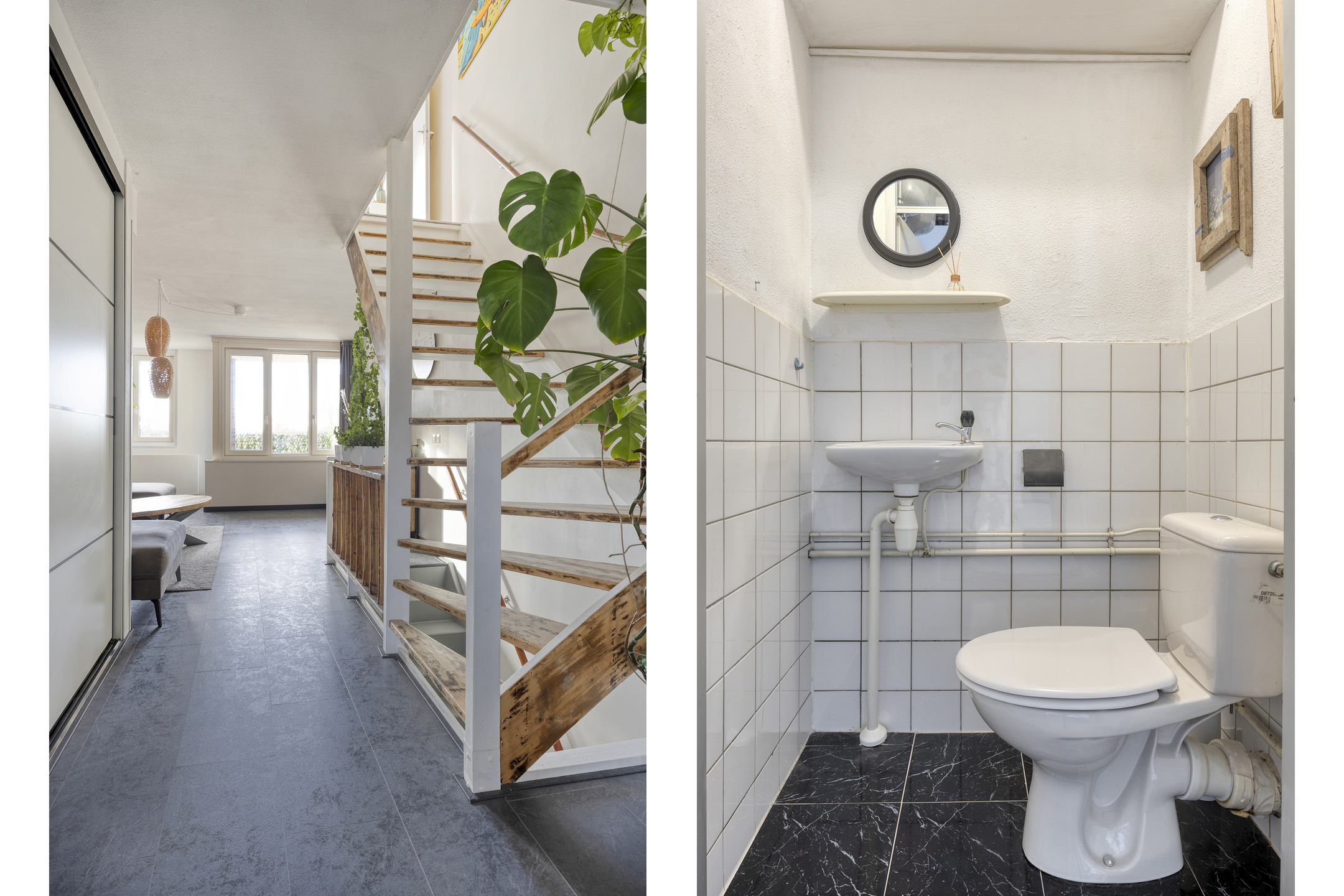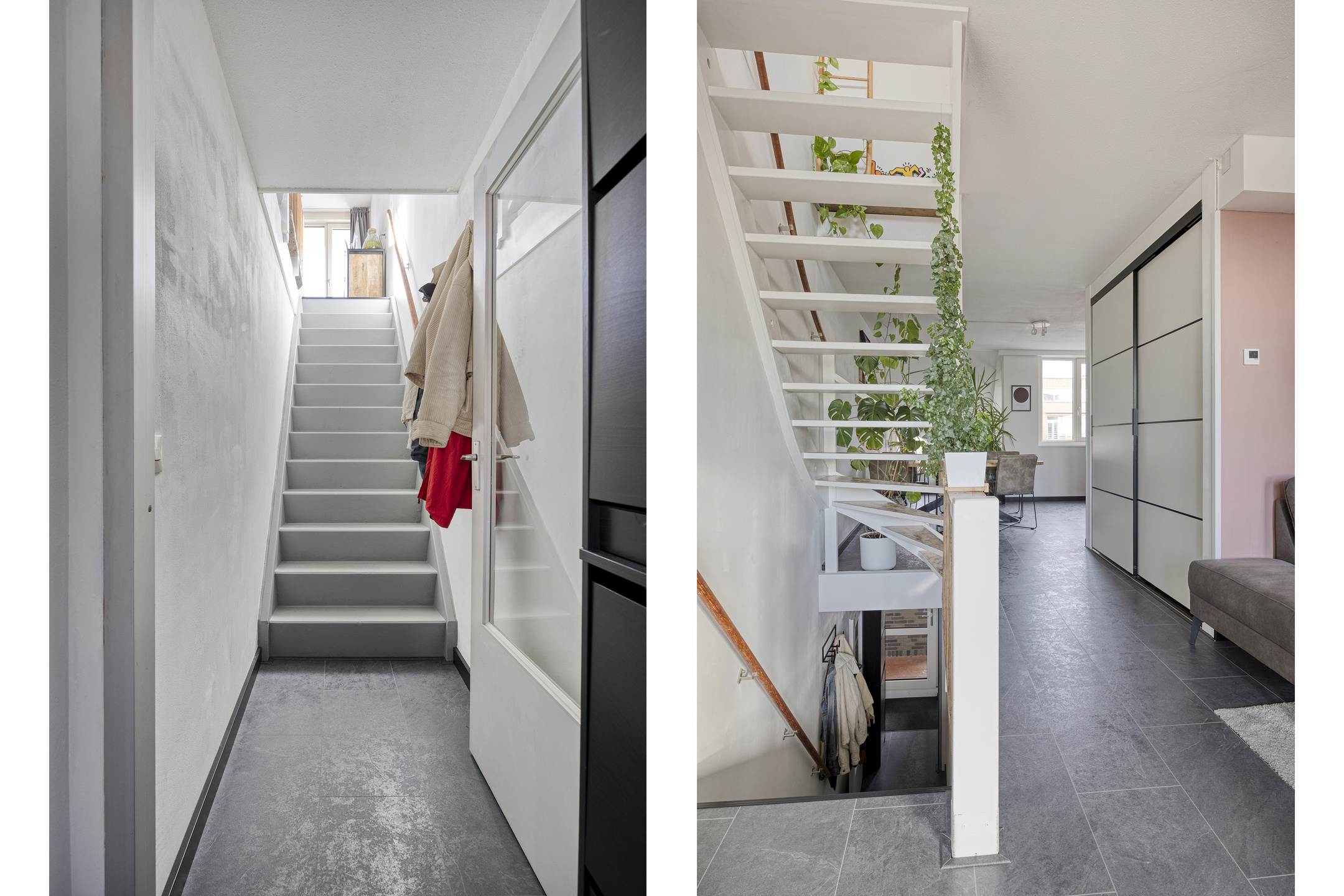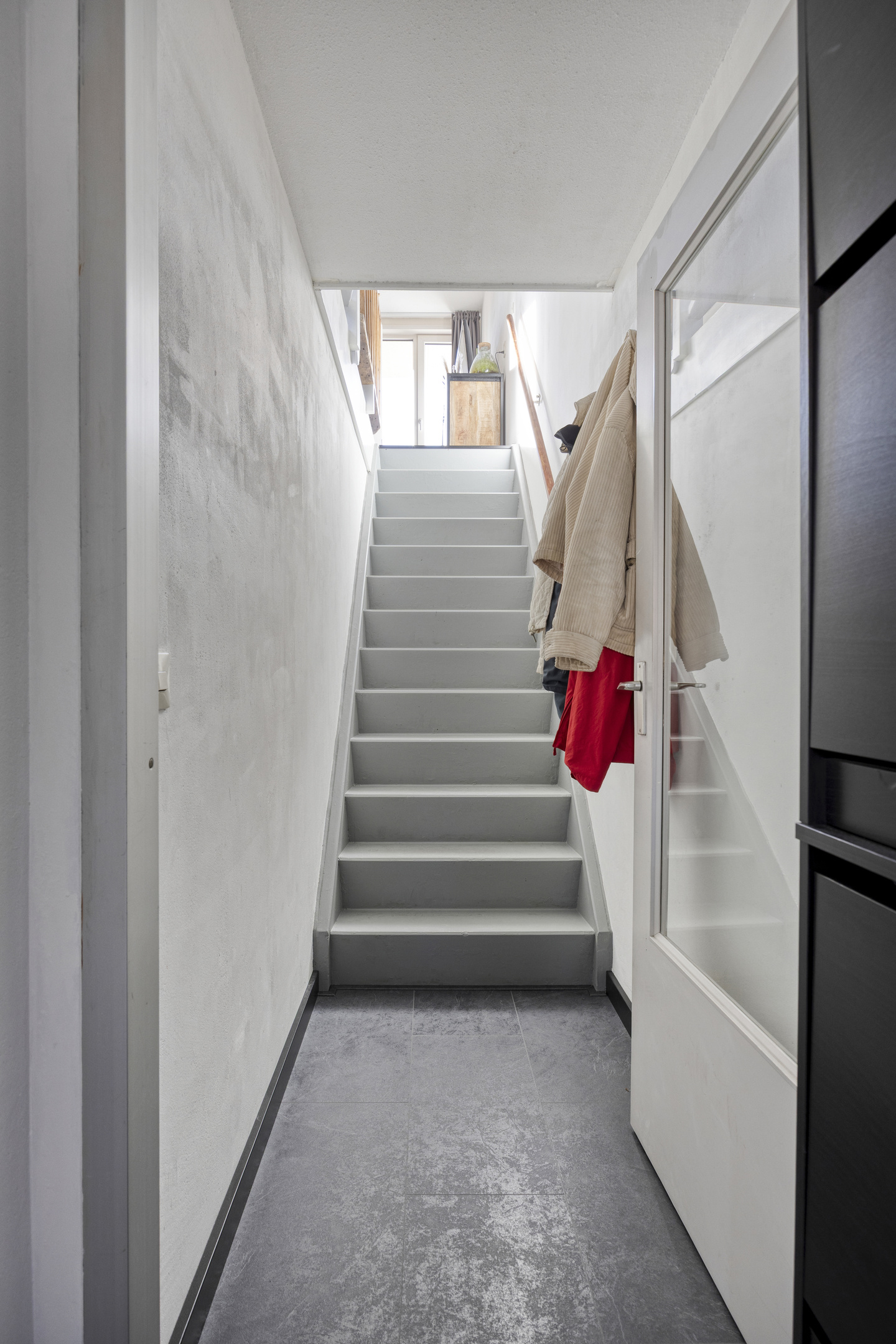 De entreehal biedt een verzorgde ontvangst en leidt naar de trapopgang naar de woonverdieping.