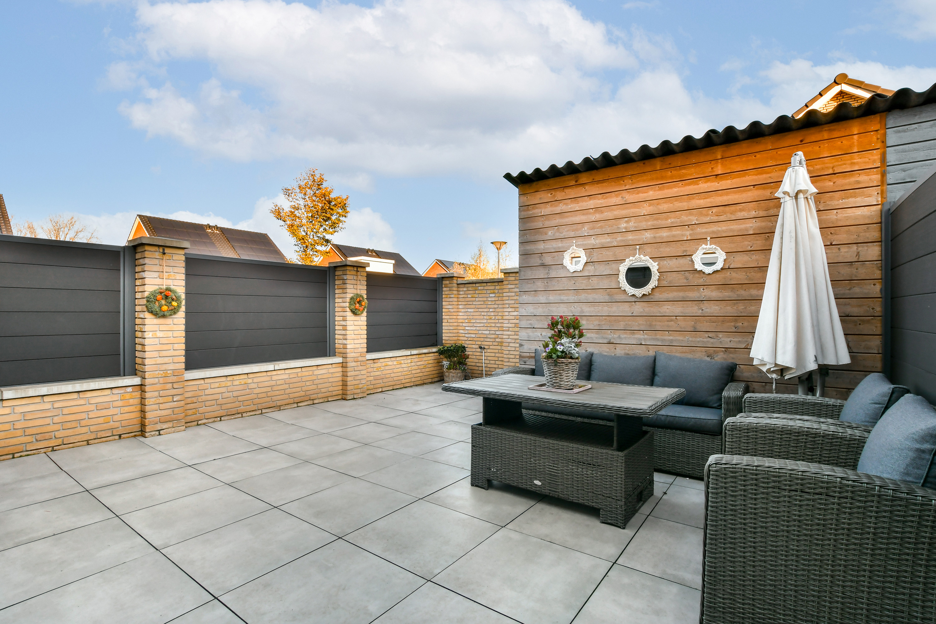 De tuin is met zorg aangelegd. Dankzij de hoekligging profiteer je van zon én privacy. Achter de tuin ligt een brede groene zone zonder verkeer – ideaal voor rust, ontspanning of spelende kinderen. De tuin beschikt over een vrijstaande berging.