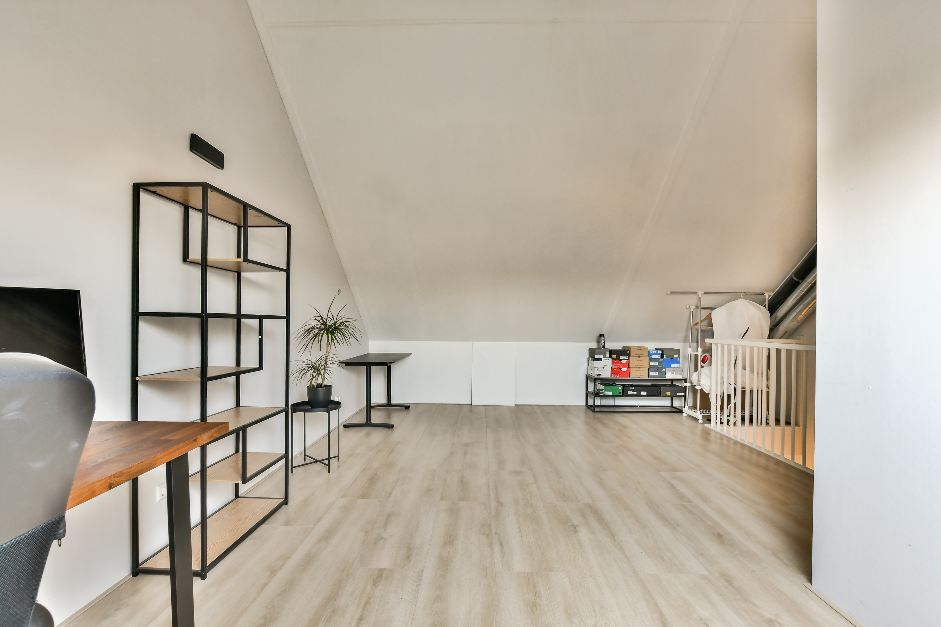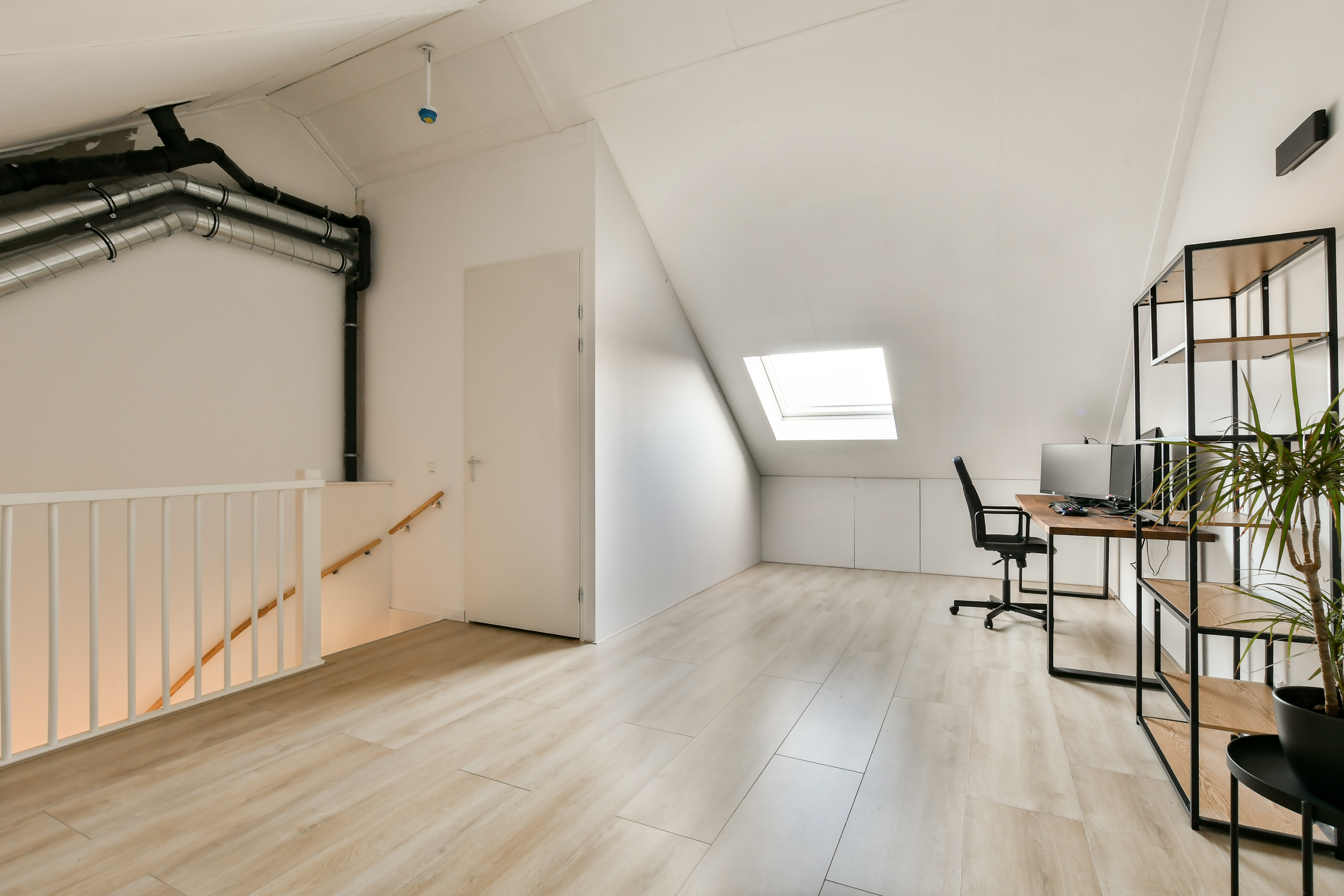 De zolderverdieping biedt een zee aan ruimte en is perfect als extra slaapkamer, werkruimte of hobbykamer. Dankzij het dakraam is er extra daglicht. In de technische ruimte bevinden zich de mechanische ventilatie en de omvormer voor de zonnepanelen.
