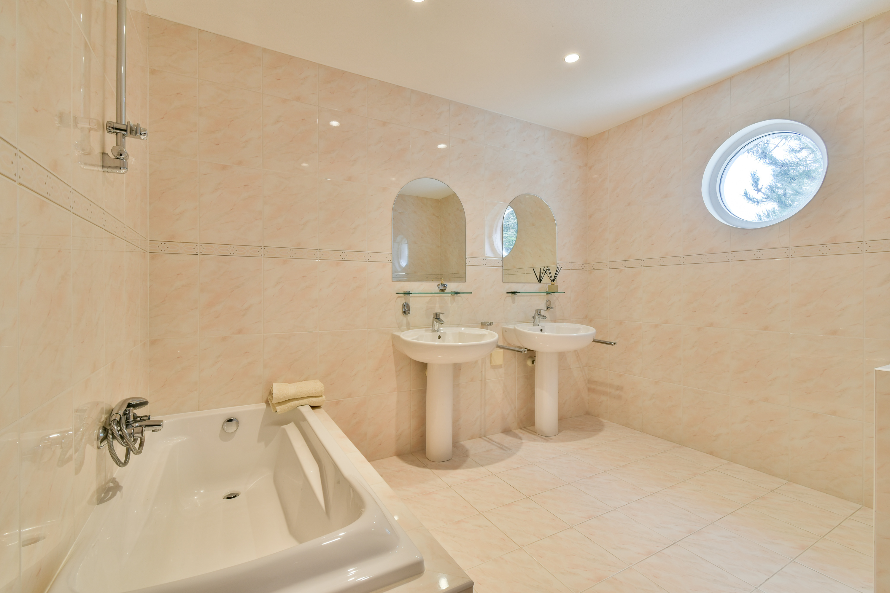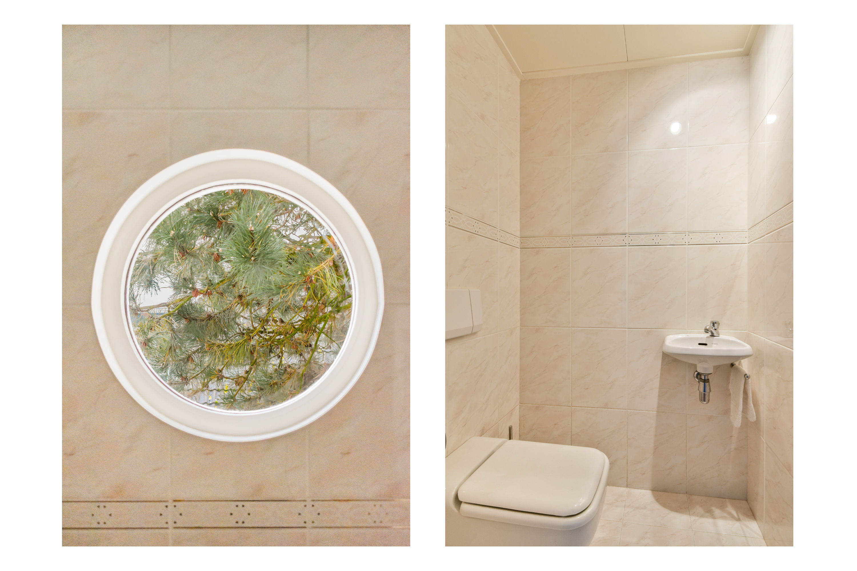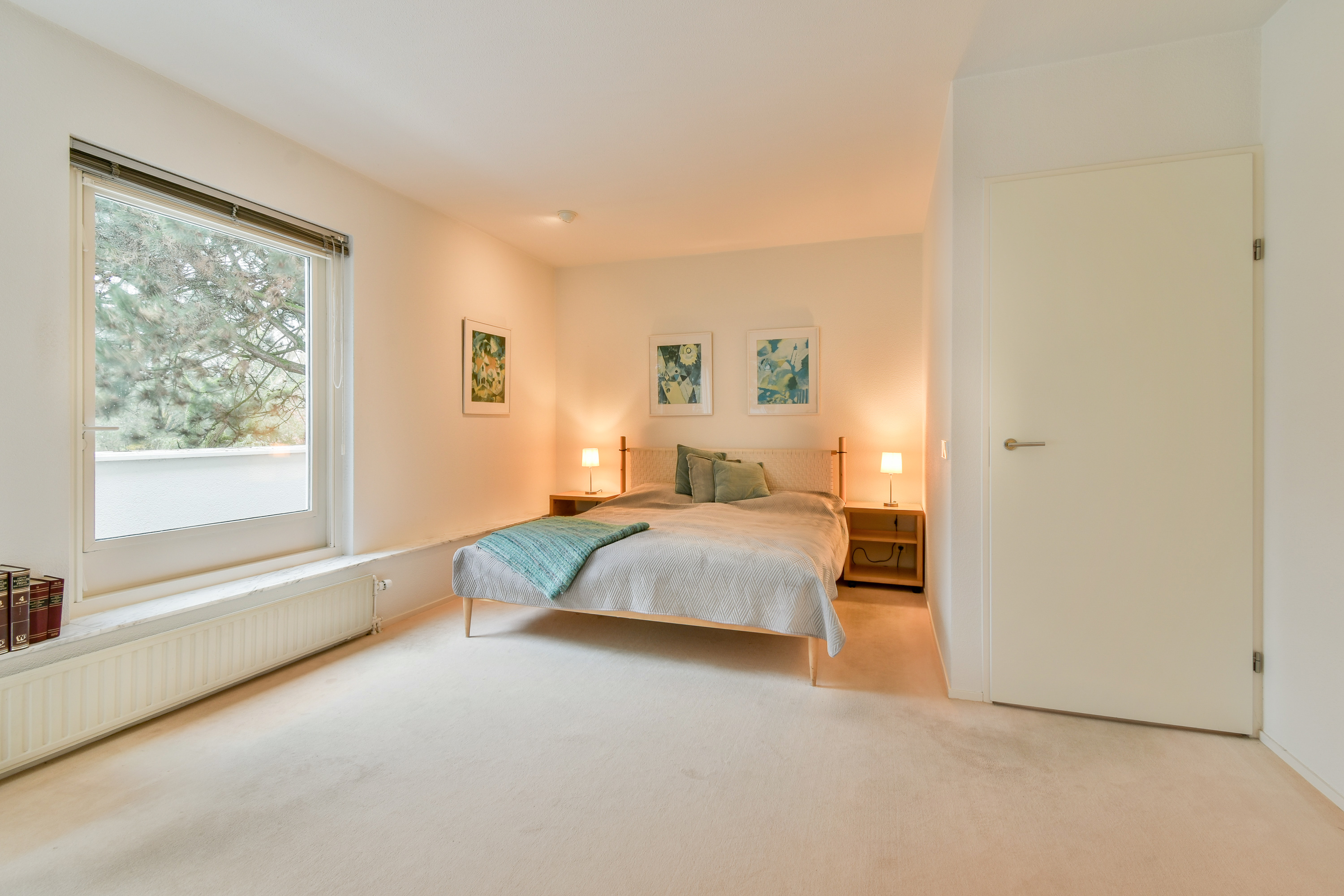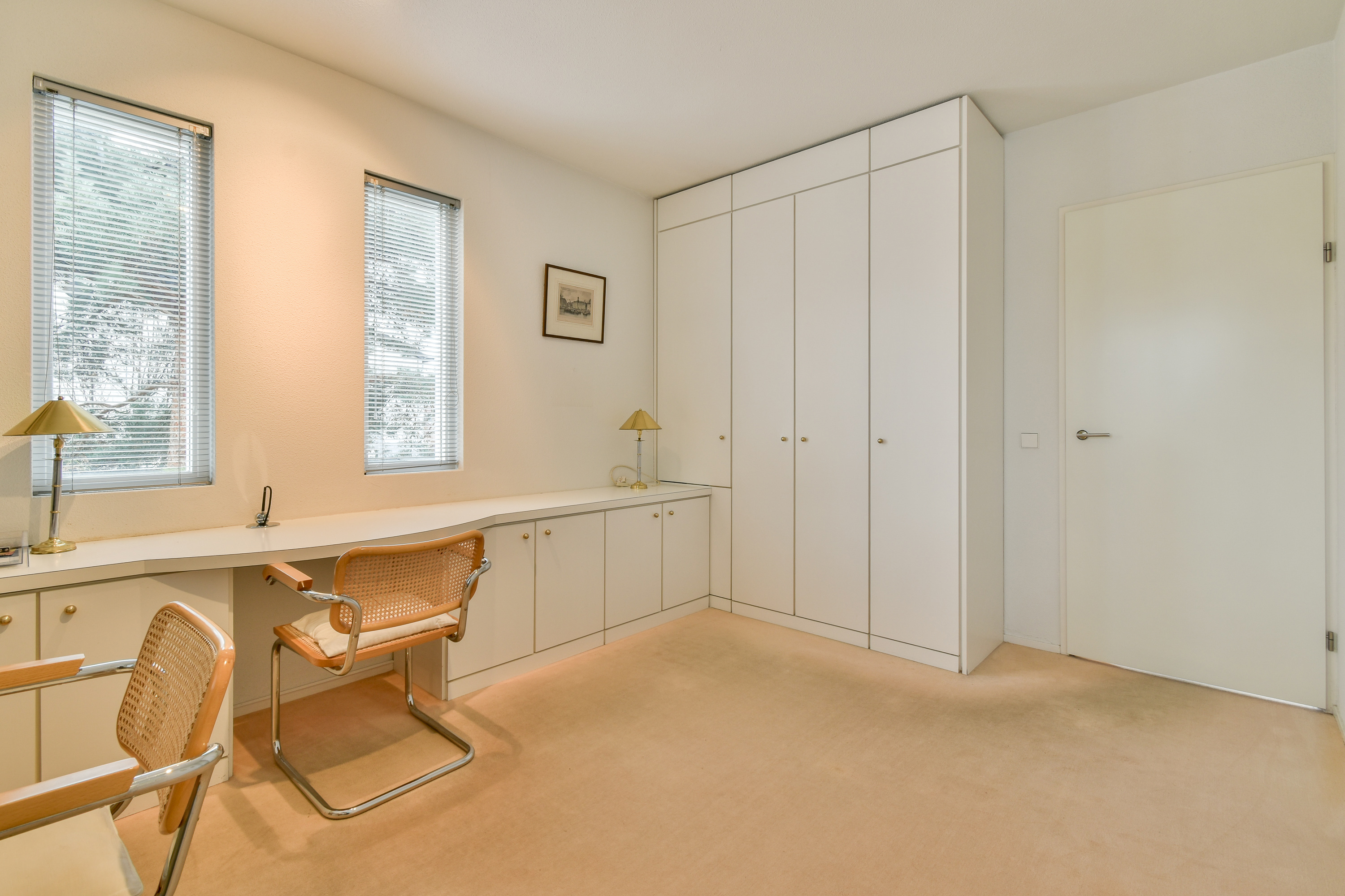 Op de eerste verdieping vindt u een ruime overloop die toegang geeft tot drie goed bemeten slaapkamers. De twee slaapkamers aan de achterzijde bieden opnieuw een schitterend, vrij uitzicht over het park, terwijl de derde slaapkamer aan de voorzijde veelzijdig in gebruik is. De badkamer is volledig betegeld, voorzien van vloerverwarming en praktisch ingericht met een ligbad, dubbele wastafels en een tweede toilet. Hier is comfort aanwezig zonder poespas, een prettige balans met de overige luxe van de woning.
