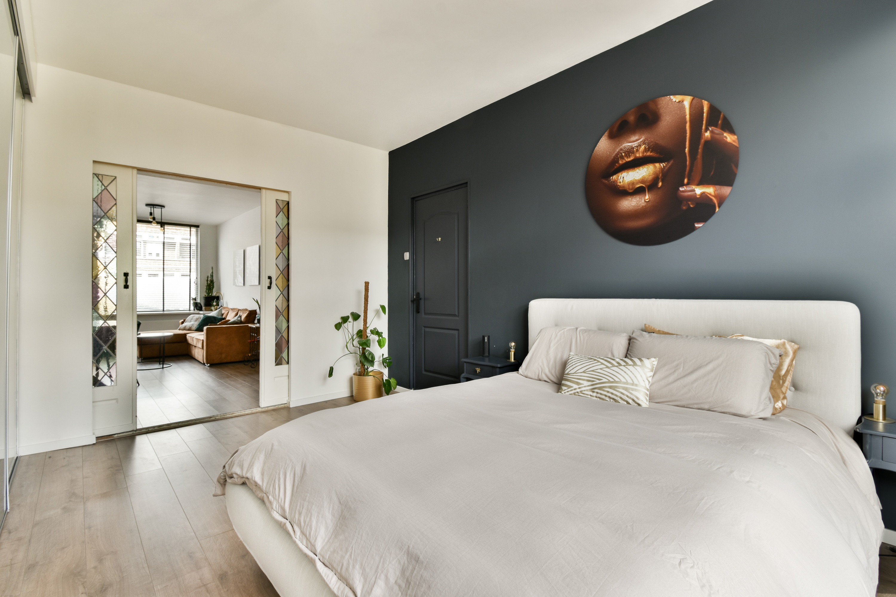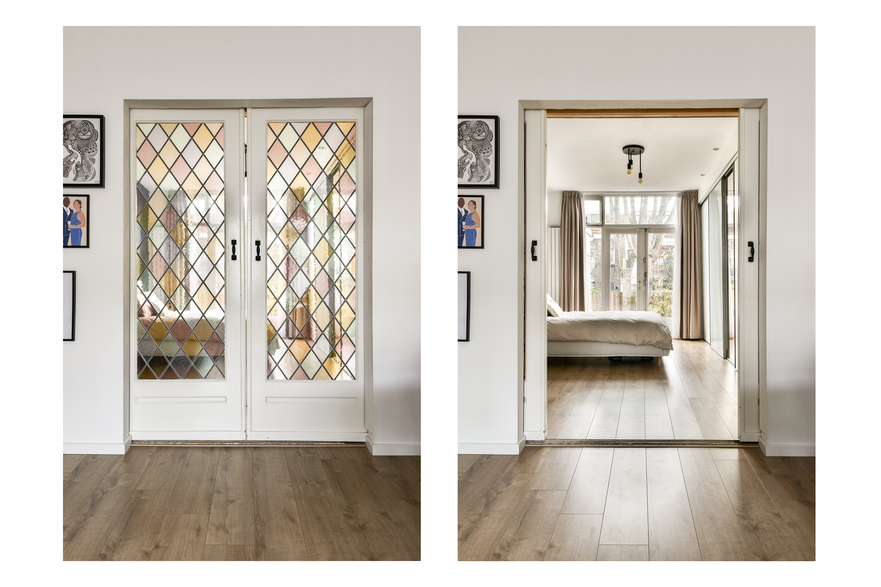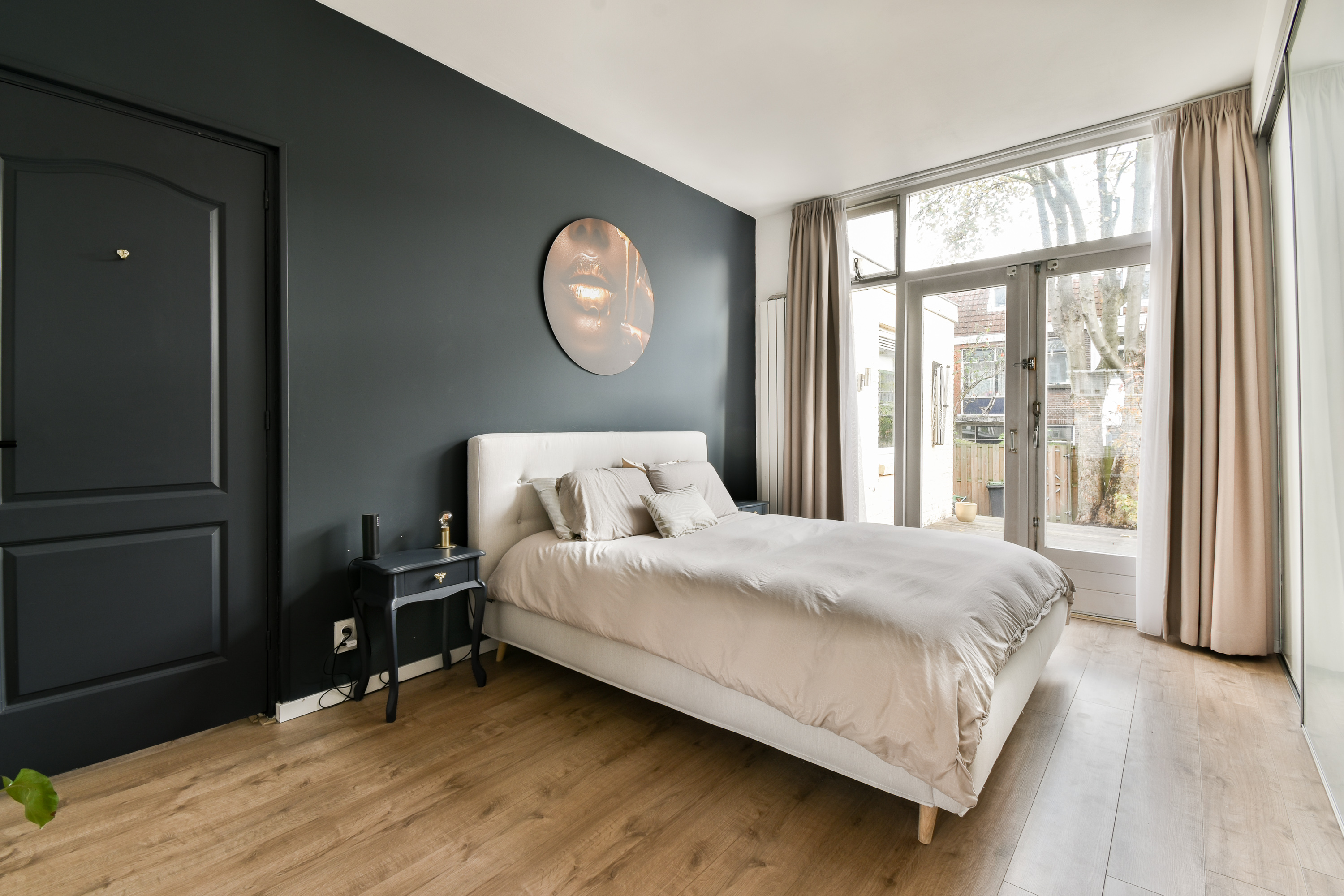 Entree met glas-in-lood bovenraam, tochtportaal, hal met meterkast, wasruimte, toiletruimte en toegang tot alle vertrekken. De sfeervolle woonkamer van ca. 21 m² biedt dankzij de nette laminaatvloer en glas-in-lood en suite deuren een warme en uitnodigende sfeer. Vanuit hier heb je een vrij en groen uitzicht over de boomrijke dubbele laan. De ruime hoofdslaapkamer (ca. 14 m²) staat middels de en suite deuren in verbinding met de woonkamer is voorzien van een schuifdeurkastenwand, plafondspots en een hardhouten pui met openslaande deuren naar de tuin, waardoor binnen en buiten op natuurlijke wijze in elkaar overlopen. De moderne keuken is uitgerust met een afzuigkap, koelkast, vriezer, 4-zones inductiekookplaat, oven, kokend water kraan, en een klimaat wijnkoelkast. Tevens heeft u vanuit hier direct toegang tot de achtertuin. Aan de achterzijde bevindt zich tevens een tweede slaapkamer van ca. 6 m², ideaal als werk-, logeer- of hobbykamer. De badkamer beschikt over een wastafelmeubel met spiegelkast, inloopdouche, designradiator en plafondspots.