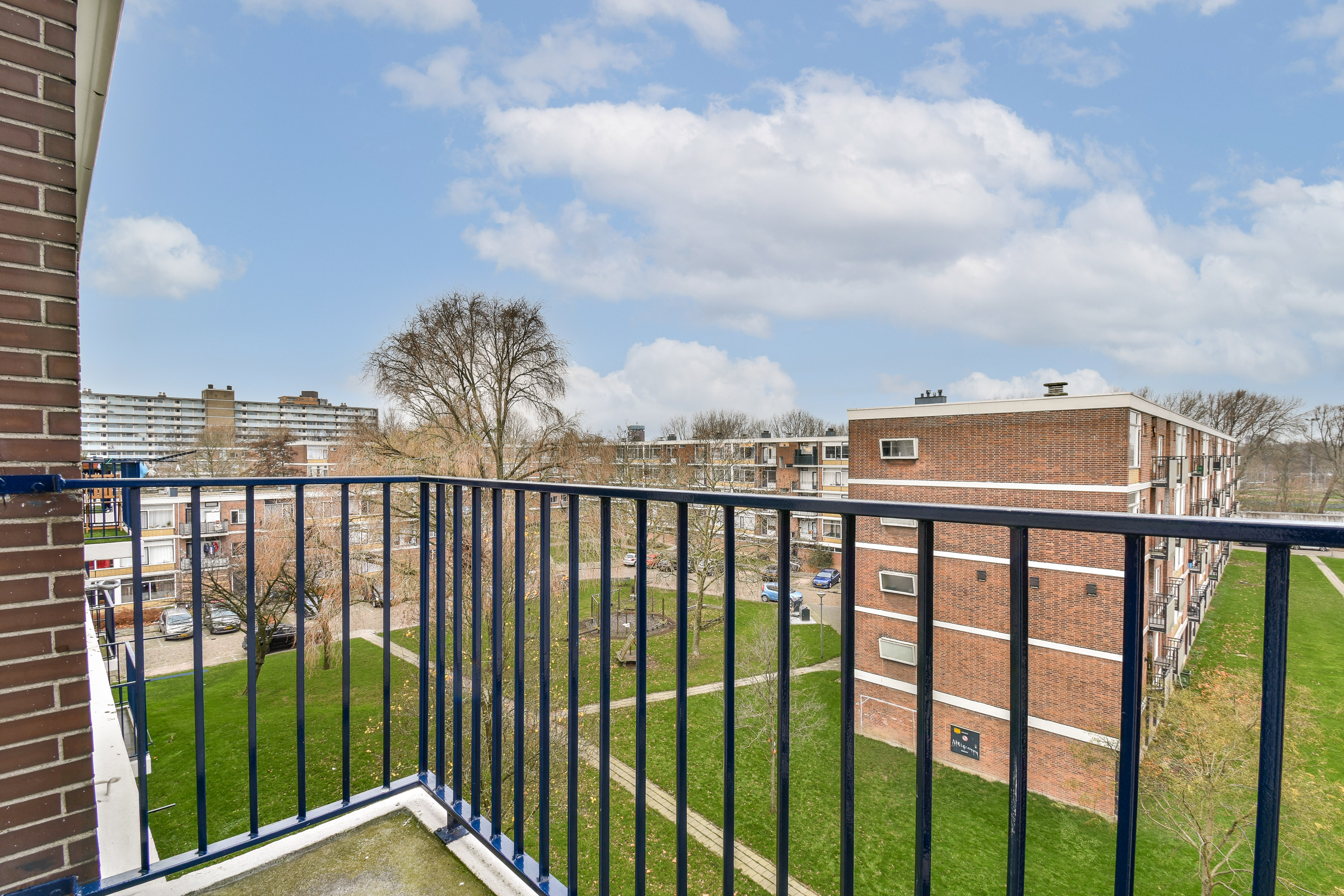 Keurig 3-kamer portiek appartement gelegen in de wijk Schiedam-Nieuwland, gesitueerd op de 4e verdieping (topverdieping). Het appartement beschikt over twee balkons, een intercominstallatie en een eigen berging op de begane grond. Geheel voorzien van kunststof kozijnen met dubbele beglazing en fraai gelegen aan een singel in een groene woonomgeving.
