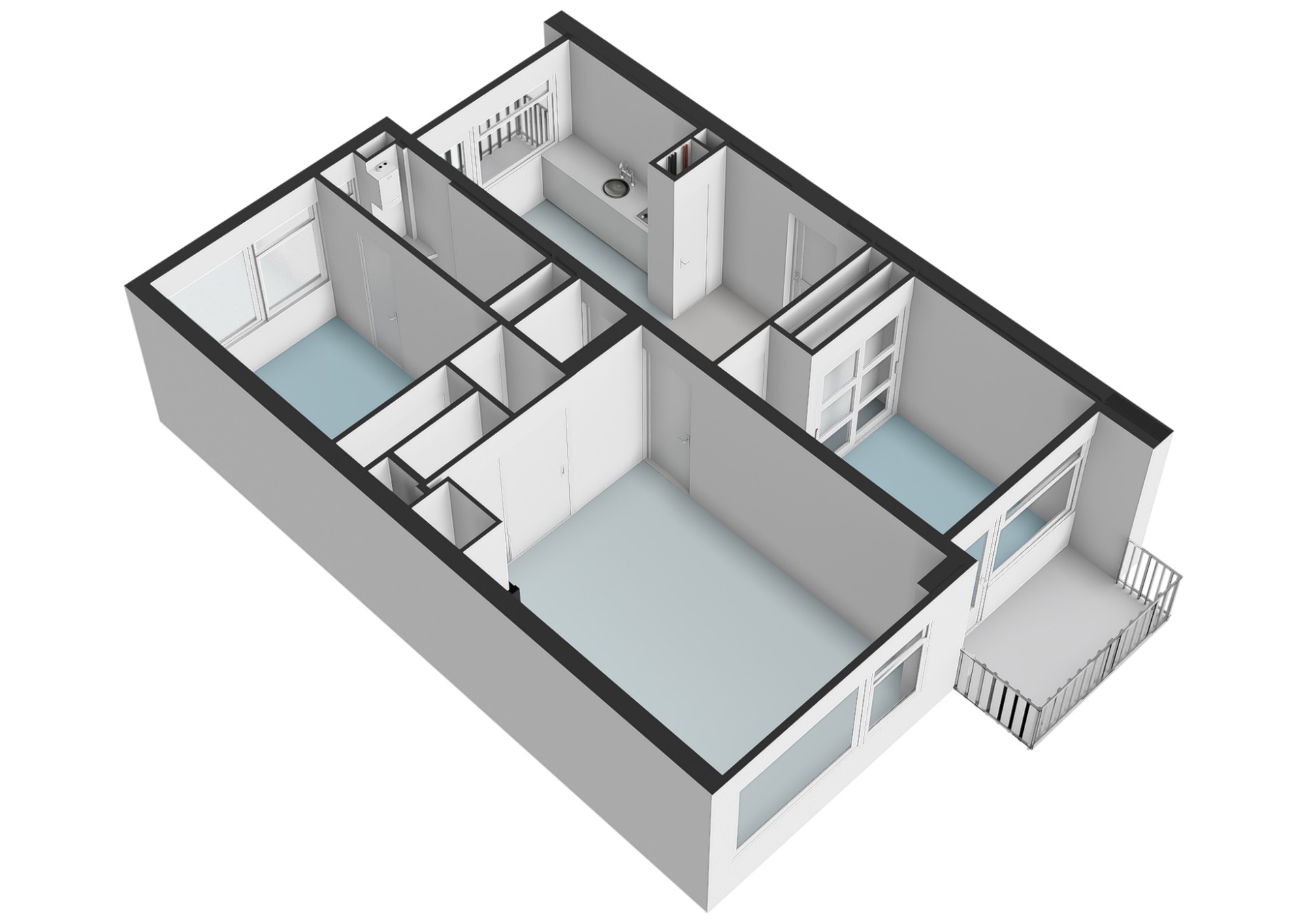 Bij binnenkomst komt u in de hal met meterkast. De keuken is voorzien van een 4-pits gaskookplaat, vlakscherm afzuigkap en een tafelmodel koelkast met vriesvak. Vanuit de keuken is er toegang tot het balkon aan de noordwestzijde. Het appartement beschikt over een separaat toilet. Slaapkamer 1 bevindt zich aan de voorzijde en is voorzien van een schuifwandkast. Deze slaapkamer biedt toegang tot het tweede balkon, gelegen op het zuidoosten. De lichte woonkamer is voorzien van een sfeervolle gaskachel en biedt uitzicht over de singel. Slaapkamer 2 beschikt eveneens over een schuifwandkast en heeft directe toegang tot de badkamer. De badkamer is uitgerust met een wastafel, geiser en een ligbad.