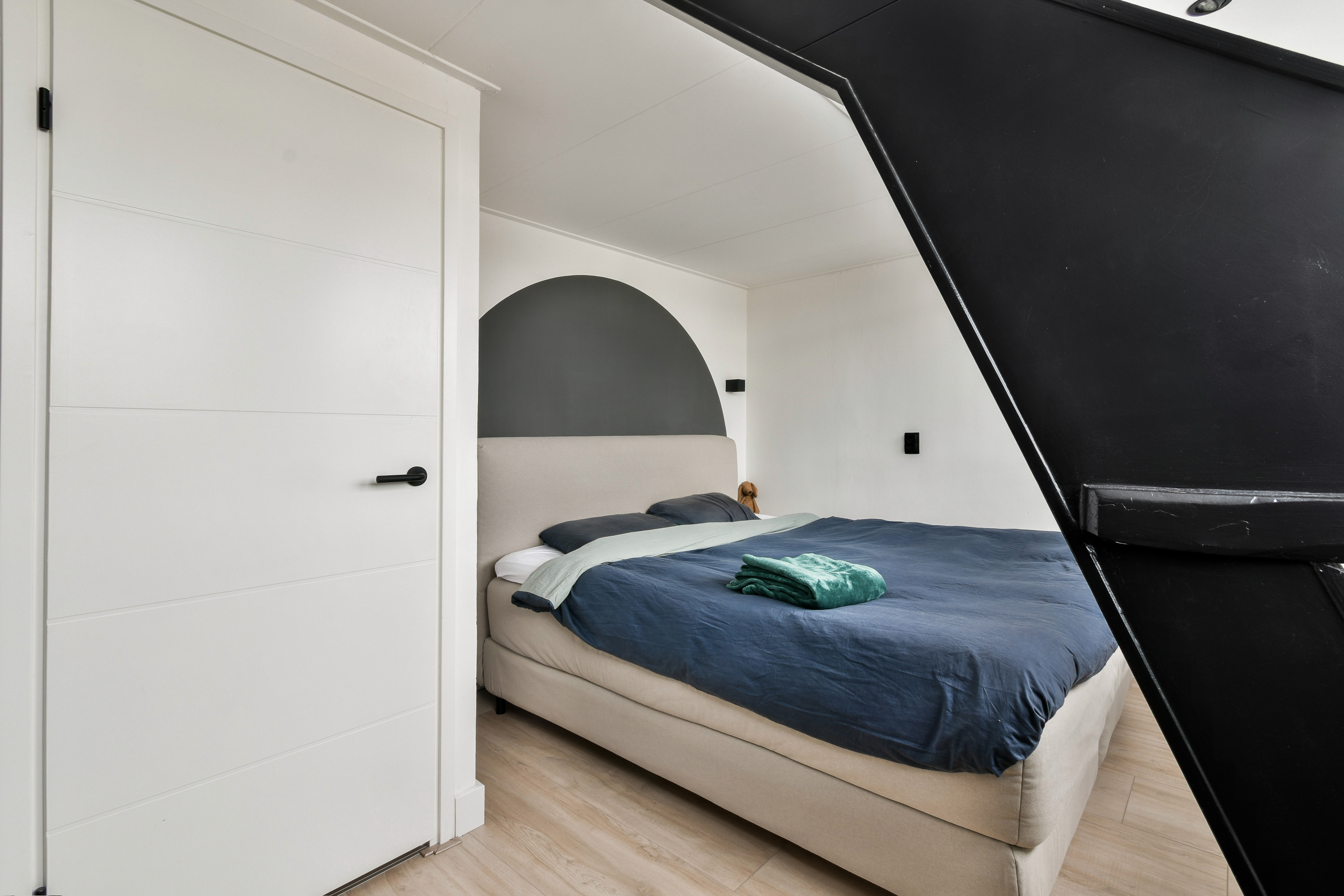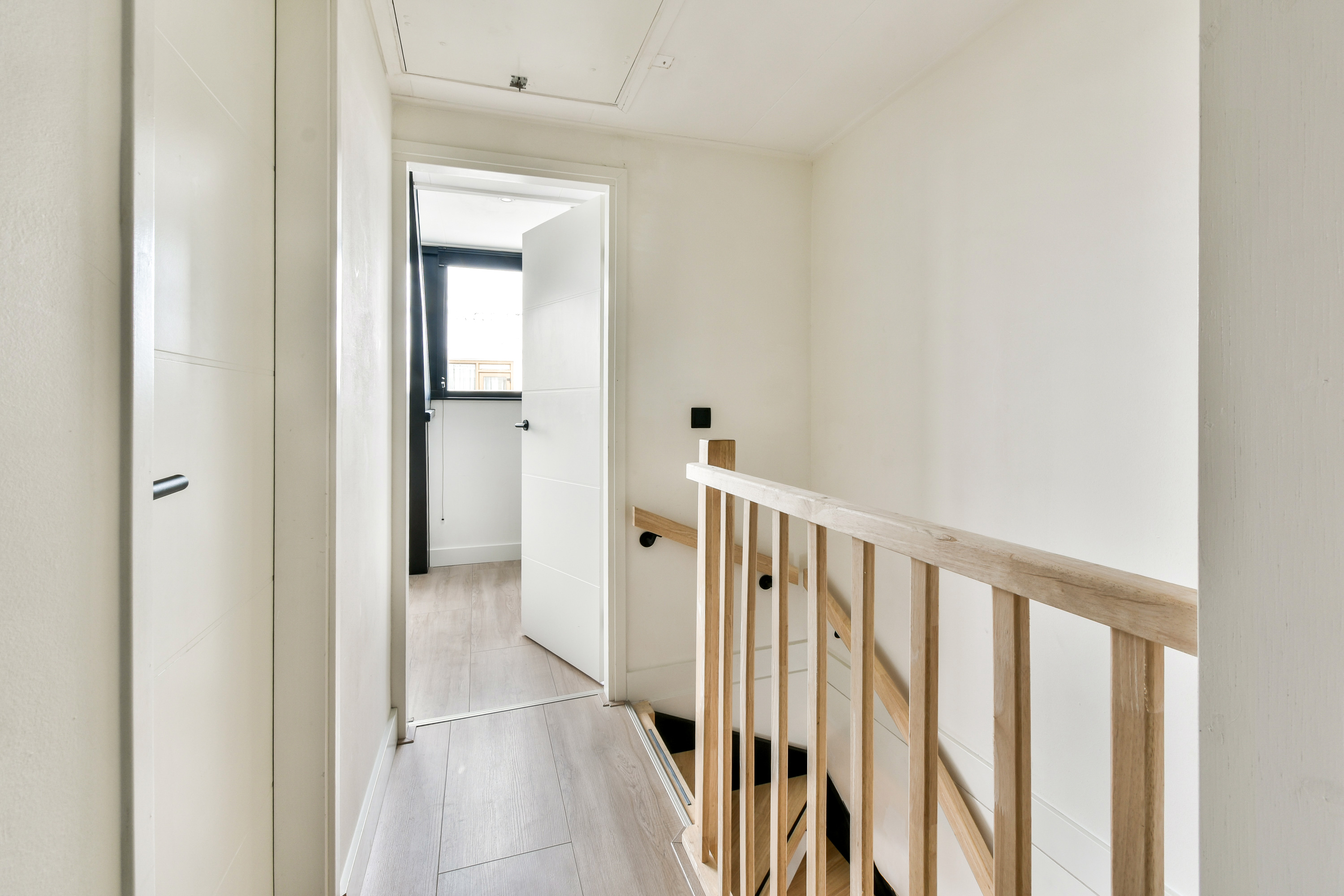 Geheel voorzien van een fraaie laminaatvloer. De overloop biedt ruimte voor de wasmachine en droger en herbergt de Intergas HRE CV-combiketel (maart 2025). Slaapkamer 1, gelegen aan de voorzijde, is voorzien van een dakkapel. De luxe en compleet verbouwde badkamer is voorzien van een ruime inloopdouche, tweede (wand)closet en een modern badmeubel met dubbele wastafel. Slaapkamer 2 is aan de achterzijde gelegen en vergroot middels een opbouw, waardoor er extra ruimte is ontstaan. Via een vlizotrap is de bergvliering bereikbaar.