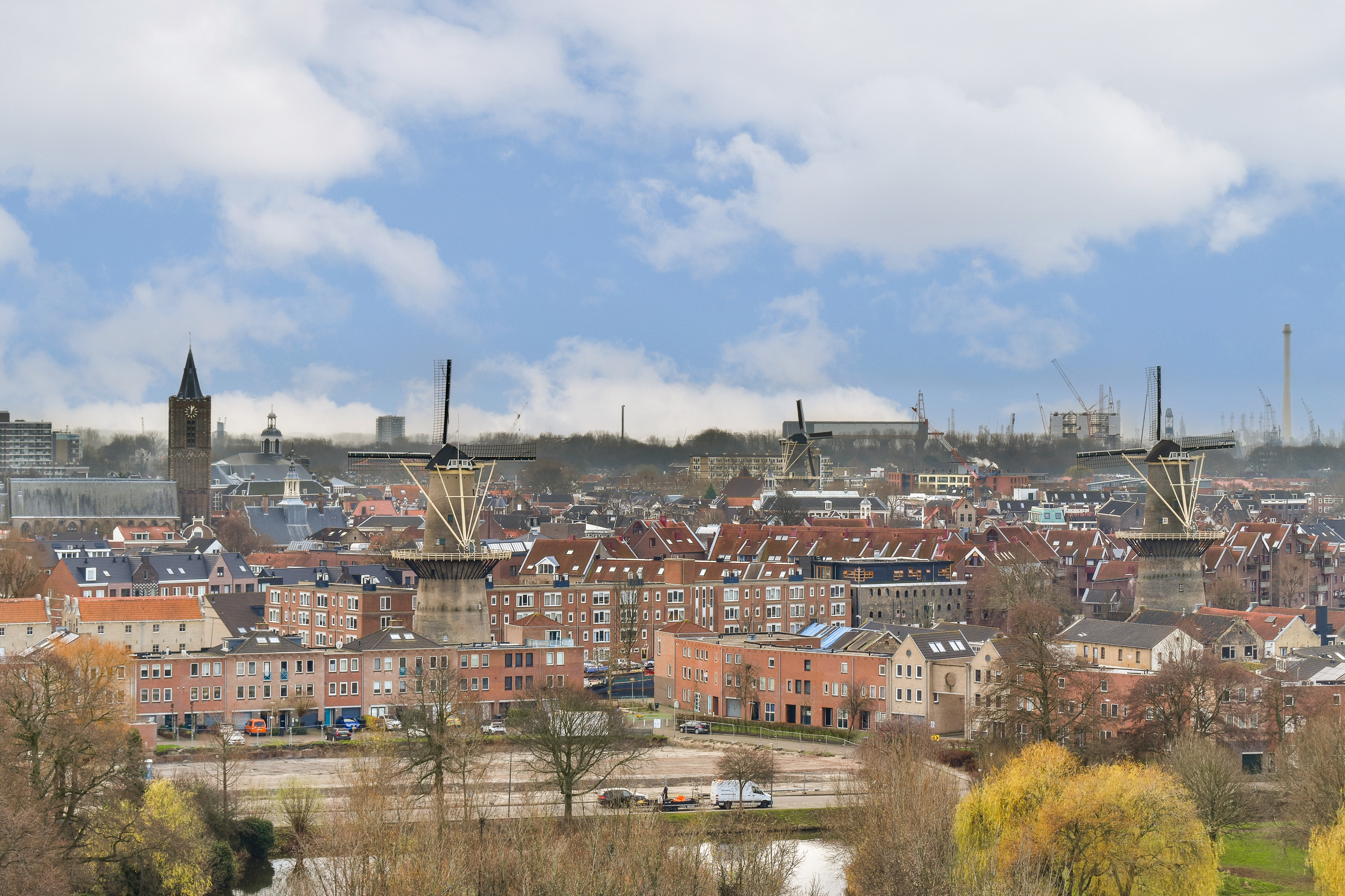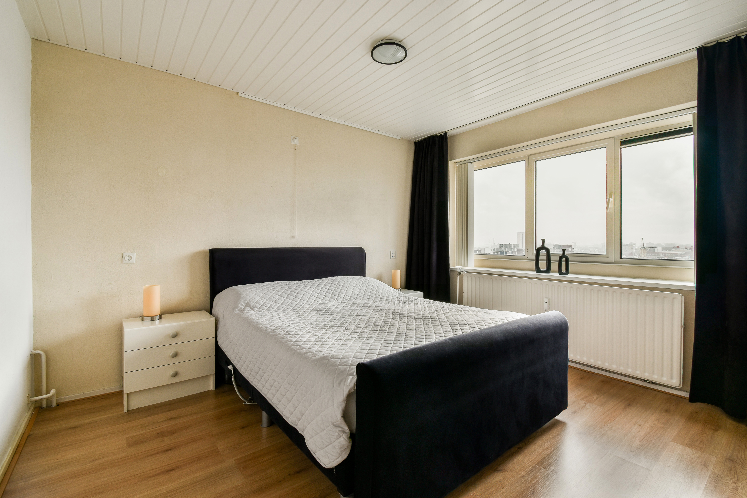 Via de entree kom je in de ruime hal, die toegang biedt tot vrijwel alle vertrekken van het appartement. In de hal bevinden zich een praktische wasruimte en een separate garderoberuimte, wat zorgt voor extra comfort en bergruimte. De dichte keuken is uitgevoerd in een nette wandopstelling en voorzien van een 5-pits gaskookplaat met afzuigkap, een losse vaatwasser en een boiler. Dankzij de efficiënte indeling is er voldoende werk- en kastruimte aanwezig. Het toilet is separaat en uitgevoerd met een fonteintje. De badkamer is functioneel ingericht en beschikt over een wastafelmeubel en een douche. Het appartement telt twee slaapkamers. Slaapkamer 1 is van goed formaat en biedt diverse indelingsmogelijkheden. Slaapkamer 2 onderscheidt zich door het bijzondere uitzicht over de iconische molens van Schiedam, wat elke dag een uniek en typisch Hollands decor oplevert. De zeer royale en lichte woonkamer vormt het hart van het appartement. Door de grote raampartijen geniet je hier van een indrukwekkend weids uitzicht over de omgeving. Vanuit de woonkamer is er directe toegang tot het ruime balkon op het westen, waar je tot in de avonduren kunt genieten van de zon en adembenemende zonsondergangen. Een heerlijke plek om tot rust te komen en te genieten van het uitzicht op hoogte.