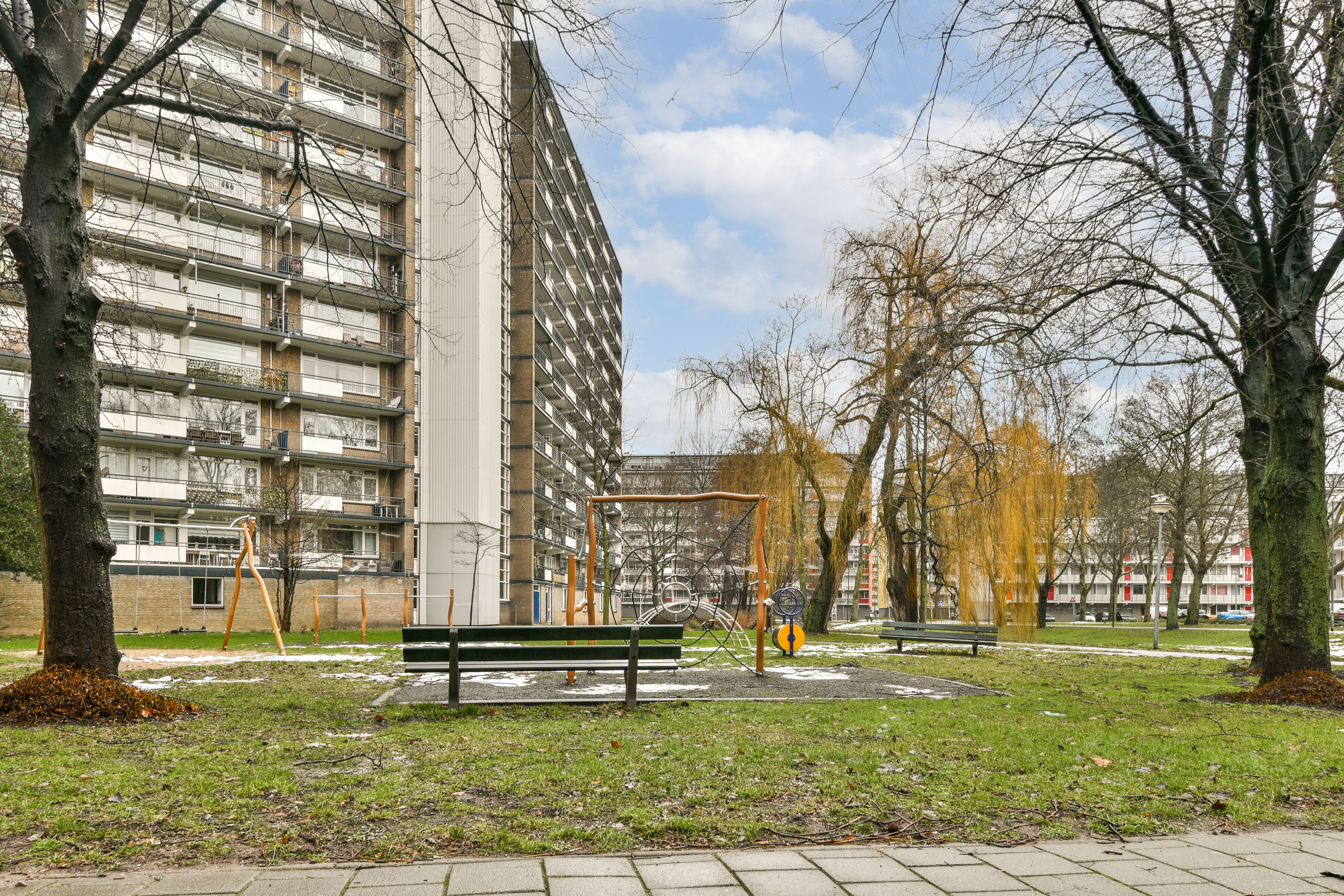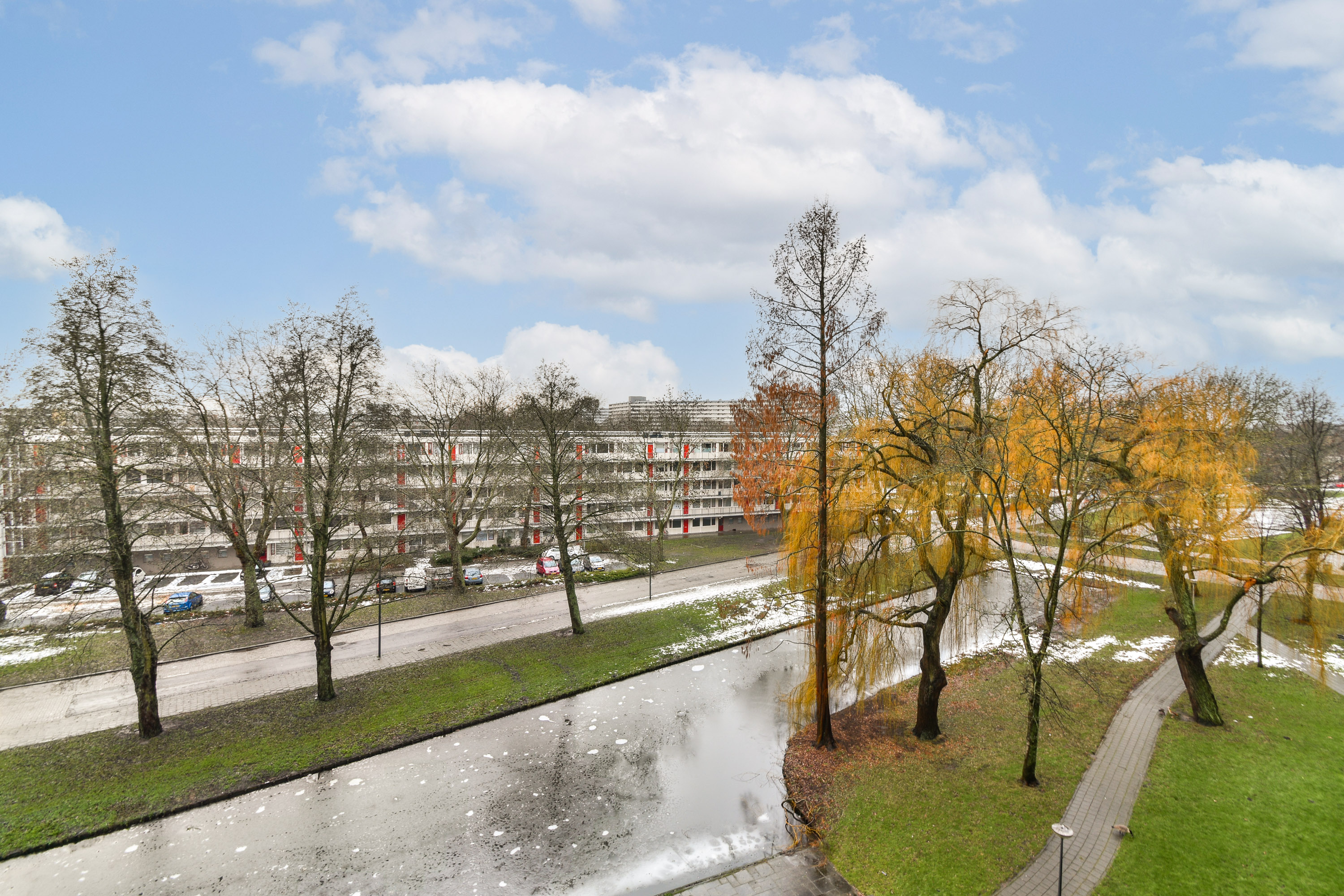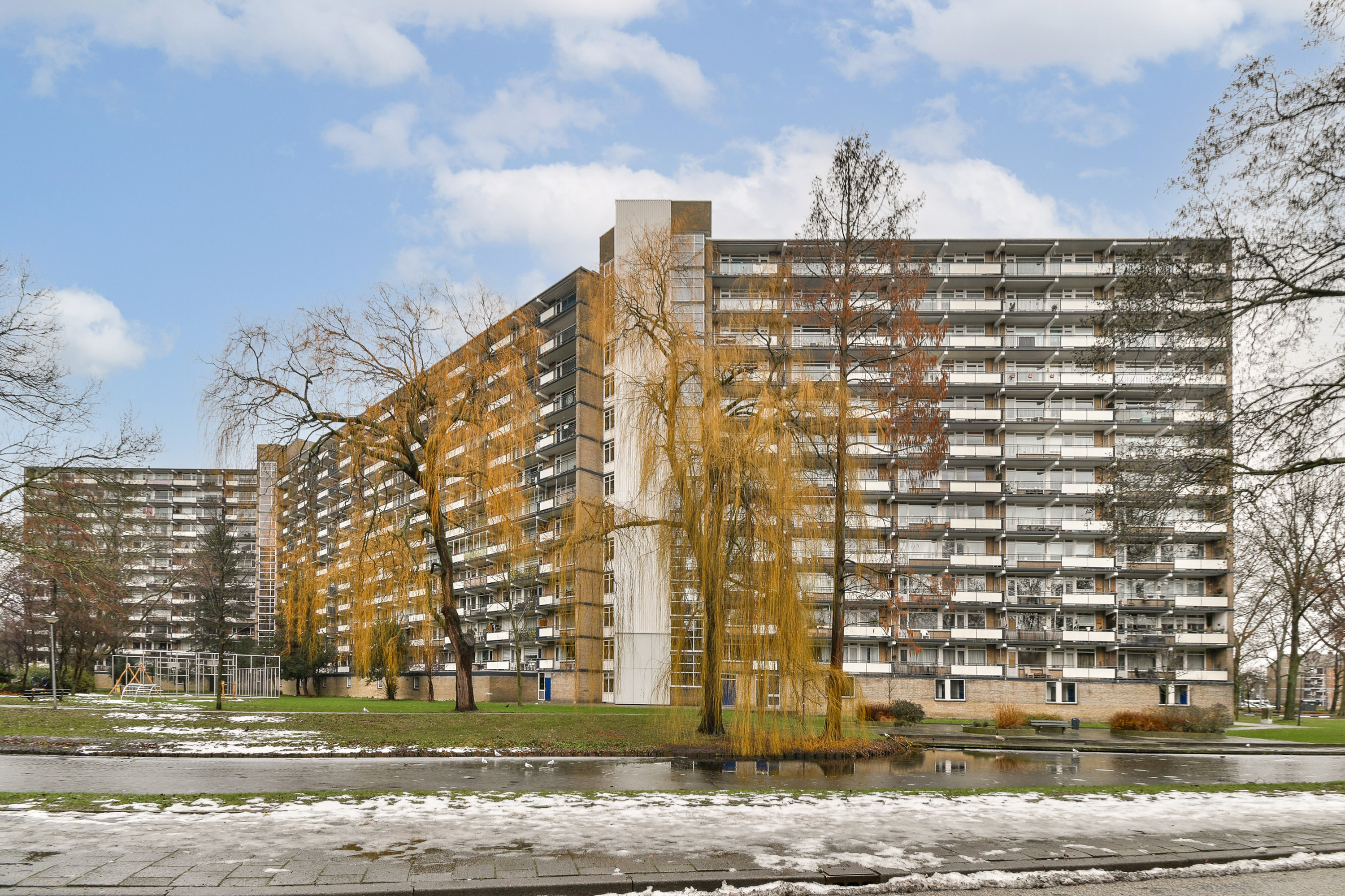 Gelegen op de 5e verdieping van een verzorgd complex in de geliefde wijk Schiedam-Noord (Groenoord) bevindt zich dit lichte 4 kamer appartement met vrij uitzicht over de singel. Het complex is voorzien van een lift, intercom en betreft een nette galerijflat. Het appartement beschikt over een zonnig balkon op het zuiden, waar u dankzij het aanwezige zonnescherm heerlijk kunt genieten van de zon. De woning is geheel voorzien van dubbel glas, wat bijdraagt aan een comfortabel woonklimaat. Tevens is het buitenschilderwerk recent uitgevoerd en is de dakbedekking in 2025 vernieuwd, wat zorgt voor een goed onderhouden gebouw. Op de begane grond b... Lees meer