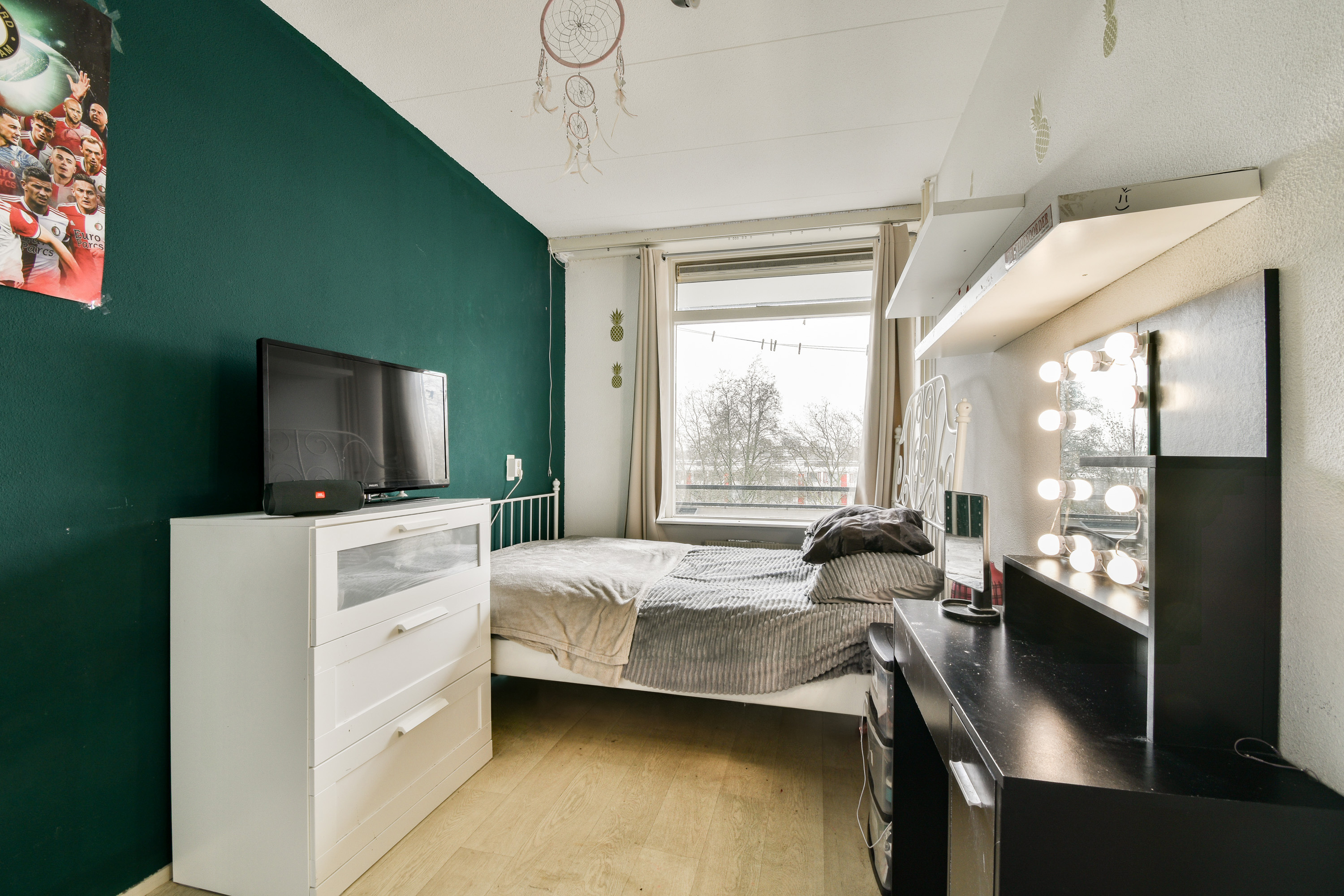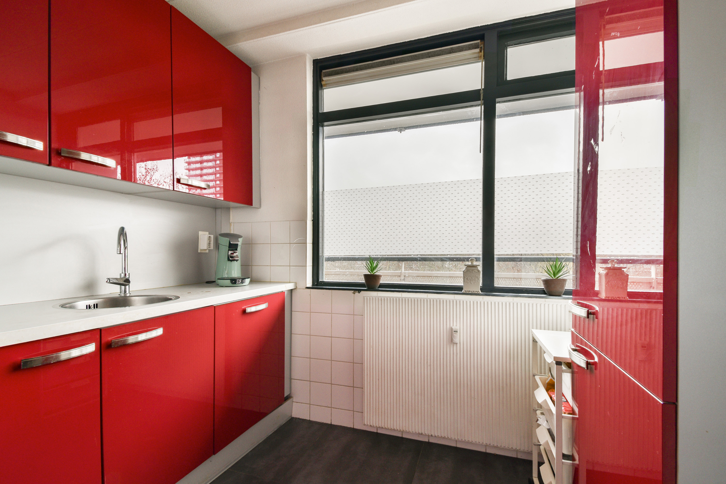 Via de entree/hal met meterkast bereikt u alle vertrekken van dit prettig ingedeelde appartement, ideaal voor starters die op zoek zijn naar ruimte, licht en comfort. De dichte keuken is functioneel en netjes uitgevoerd en voorzien van alle gemakken, waaronder een 4-pits gaskookplaat met afzuigkap, oven met magnetronfunctie, vaatwasser en een koel-/vriescombinatie. Een fijne plek om dagelijks te koken, met voldoende werk- en kastruimte. De ruime en lichte woonkamer vormt het hart van de woning en biedt dankzij de grote raampartijen een aangename lichtinval. Vanuit de woonkamer heeft u toegang tot het royale, pandbrede balkon, gelegen op het zonnige zuiden. Hier kunt u al vroeg in het voorjaar genieten van de zon en het vrije uitzicht over de singel – een echte meerwaarde voor wie graag buiten zit na een werkdag. De masterbedroom is gelegen aan de galerijzijde en biedt voldoende ruimte voor een tweepersoonsbed en kasten. Aan de achterzijde bevinden zich nog twee slaapkamers, ideaal als extra slaapkamer, thuiswerkplek of hobbyruimte. Eén van deze kamers heeft eveneens directe toegang tot het balkon, wat zorgt voor een extra gevoel van ruimte en vrijheid. Het separate toilet is voorzien van een fonteintje. De badkamer is praktisch ingericht met een wastafel, douchegelegenheid en aansluiting voor de wasmachine. Daarnaast beschikt het appartement over een inpandige berging met een Inventum boiler van 120 liter (lease), handig voor extra opslag.
