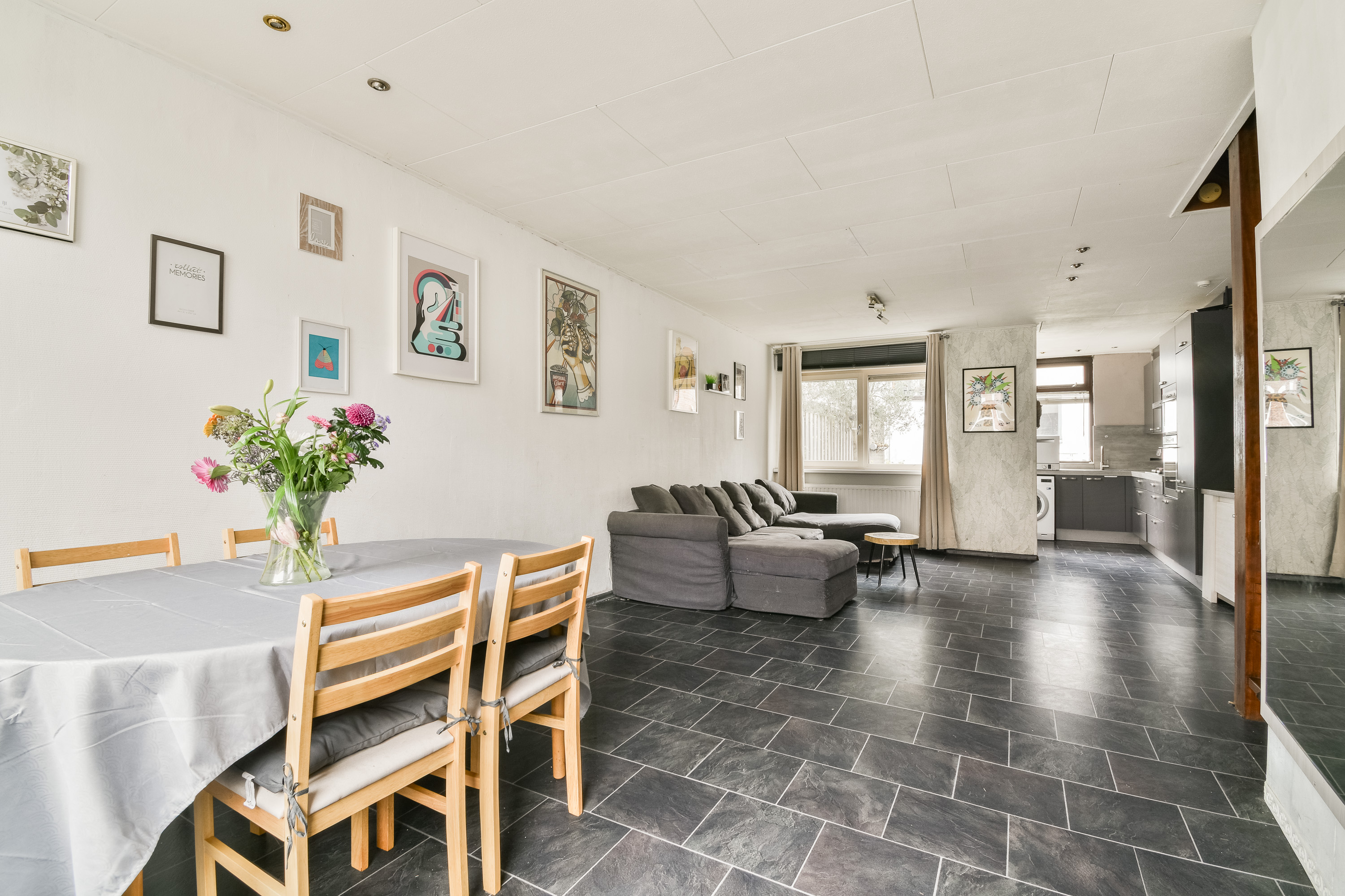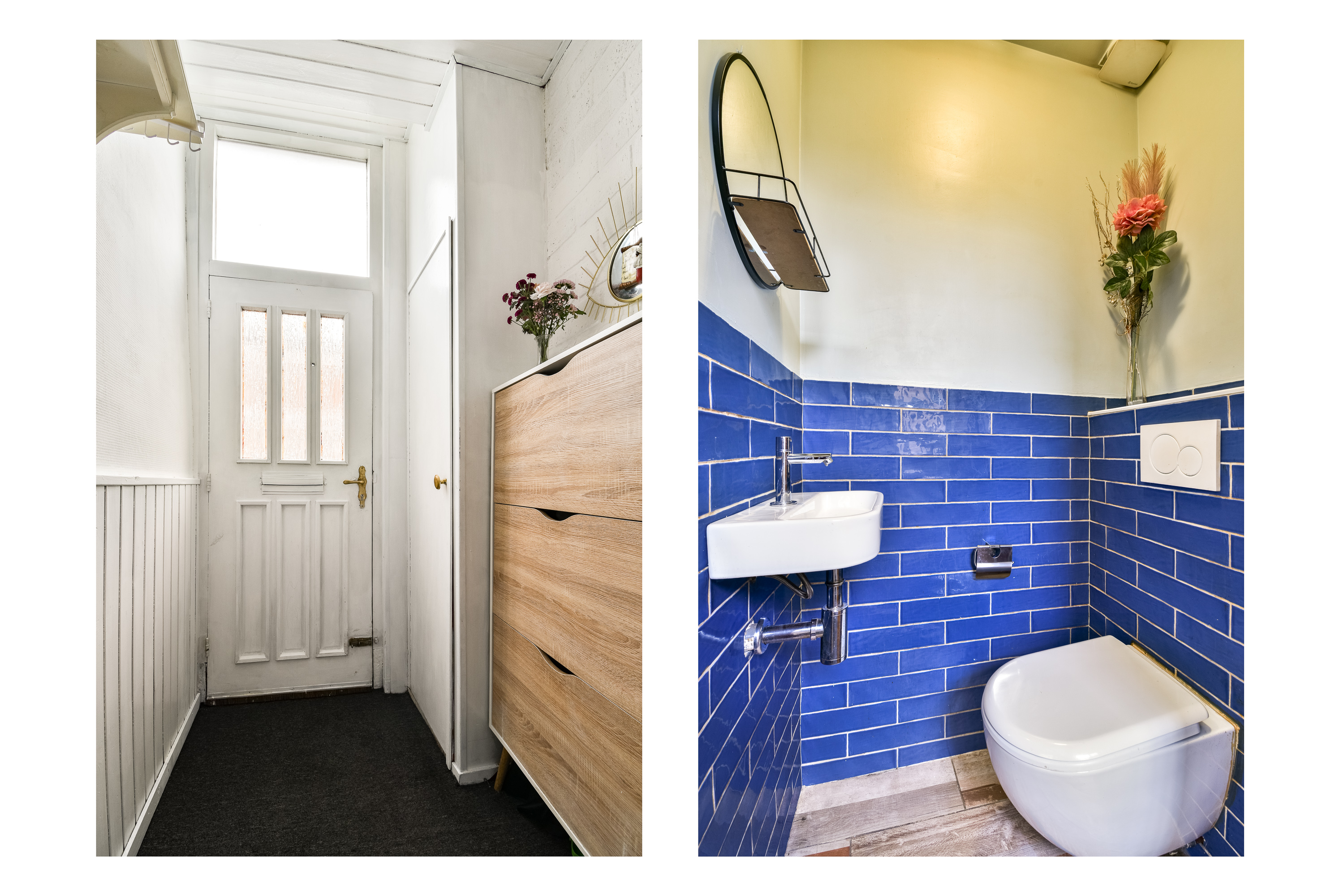 Entree/hal met meterkast en modern toilet voorzien van wandcloset en fonteintje. Vanuit de hal betreedt u de zeer ruime en lichte woonkamer met open keuken, die een fijne verbinding vormt tussen wonen en koken.