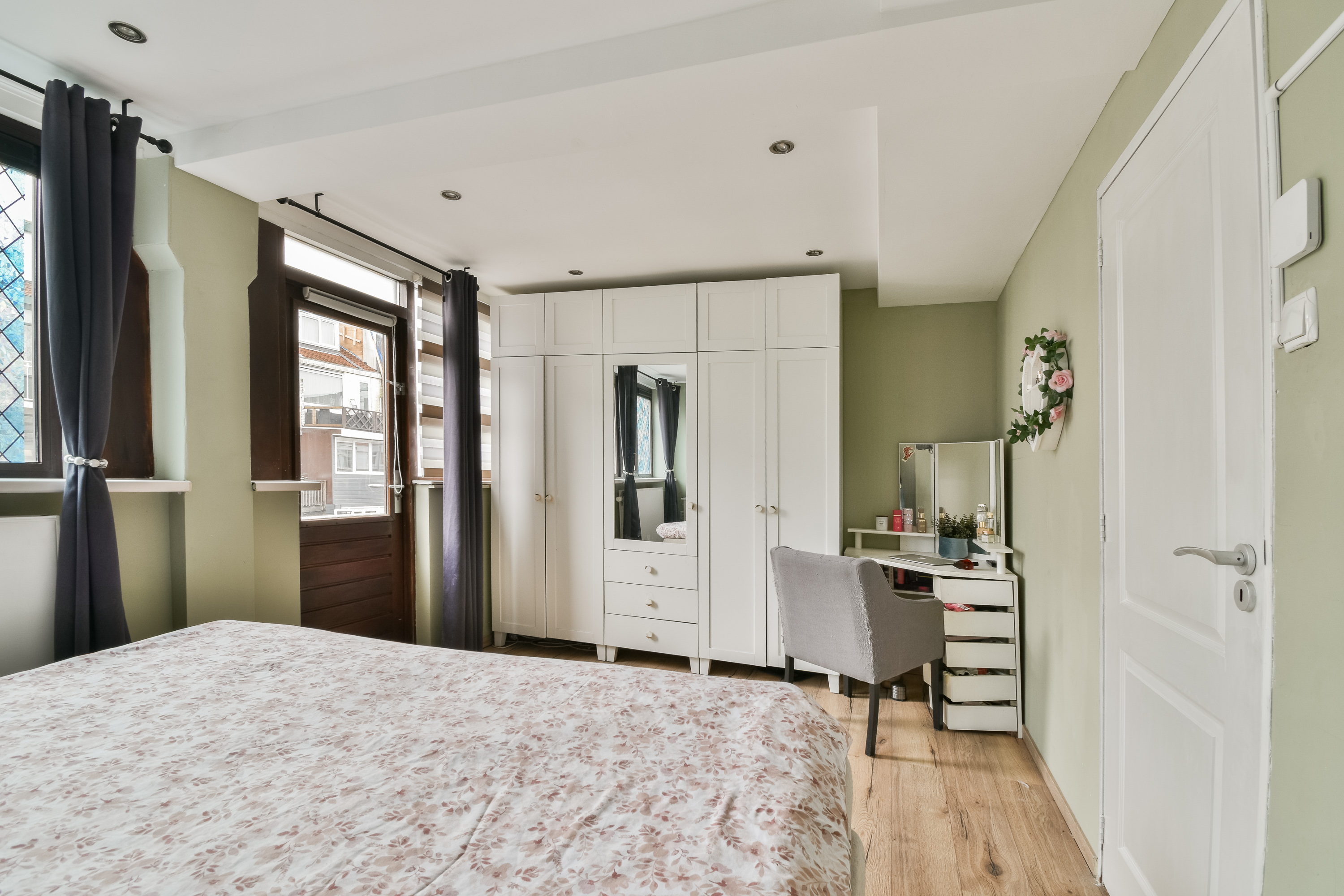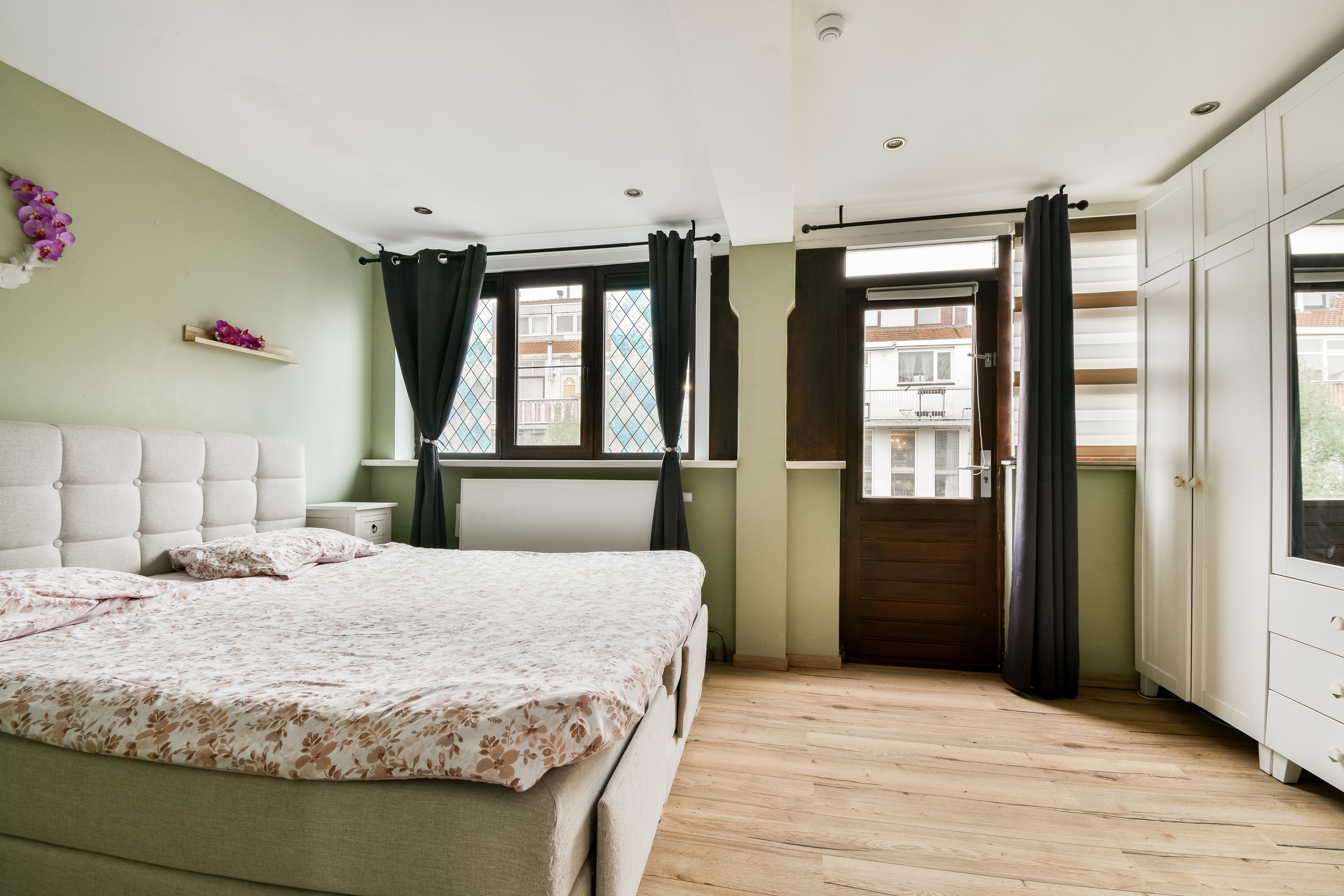 Overloop met toegang tot drie slaapkamers. De royale hoofdslaapkamer is gelegen aan de achterzijde en biedt toegang tot het heerlijke terras op het zuidwesten. Slaapkamer twee en drie bevinden zich aan de voorzijde van de woning.