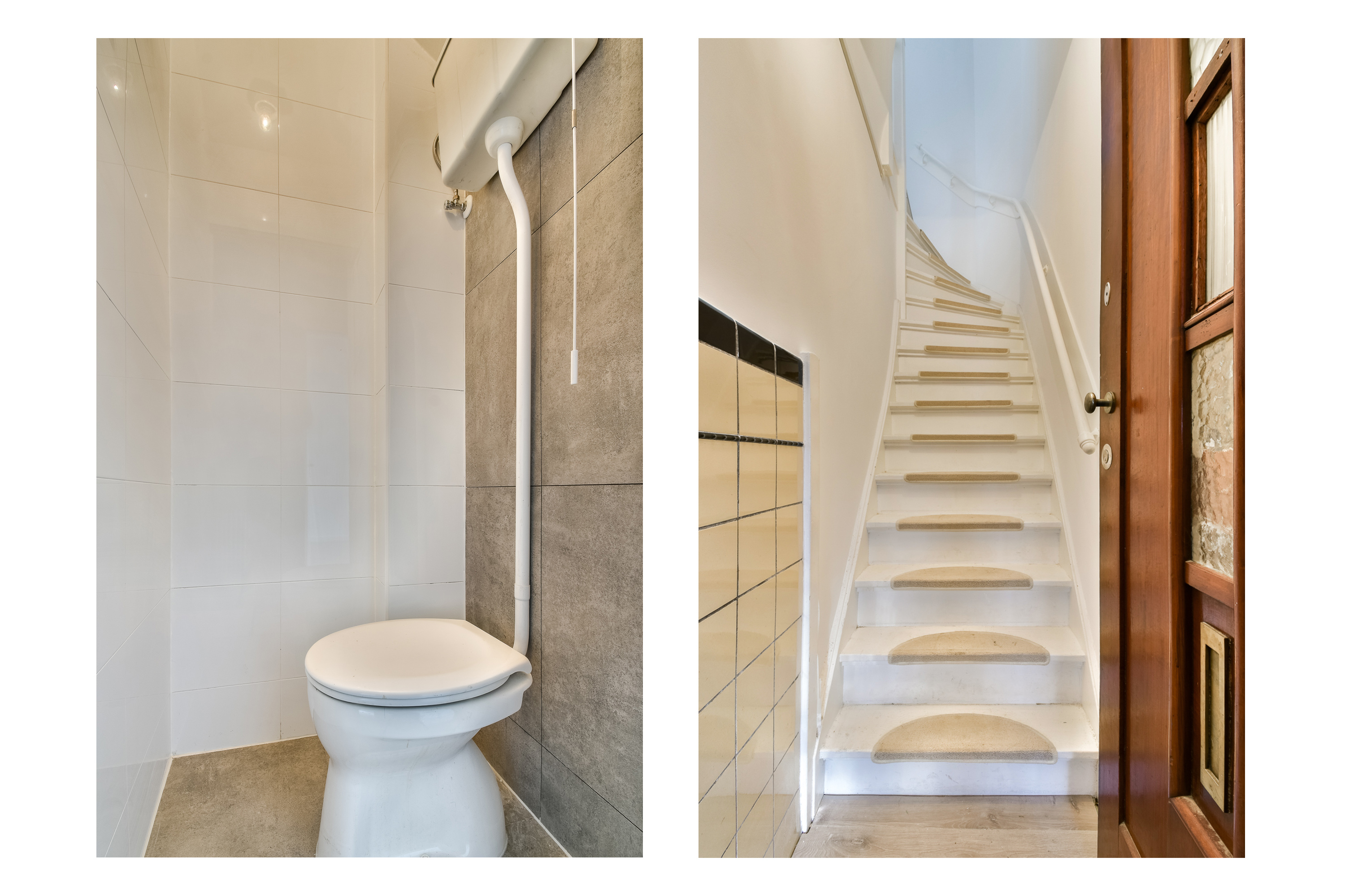 Overloop met trapkast en separate toiletruimte. Vanuit de overloop zijn alle vertrekken bereikbaar.
