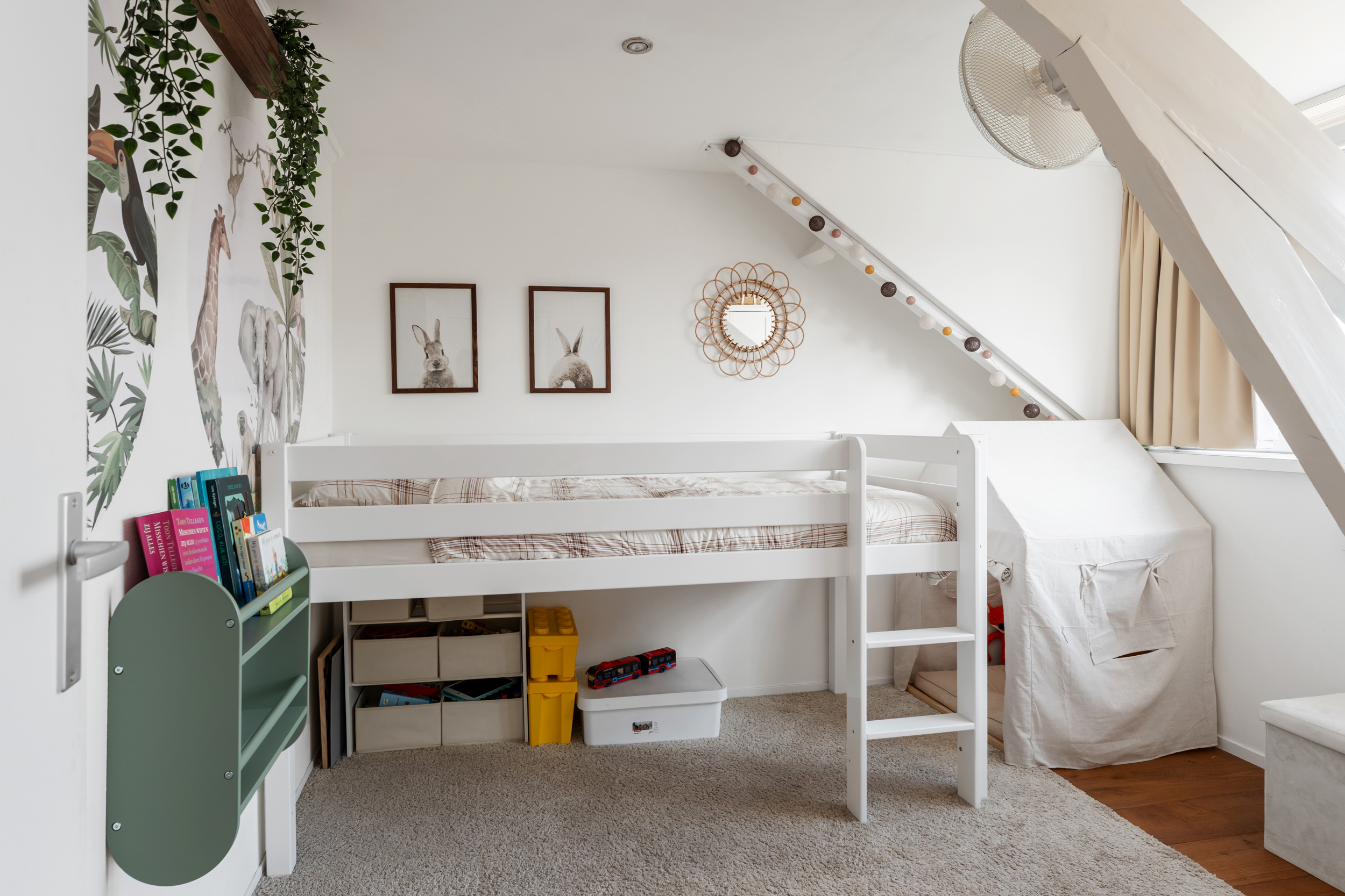 De ruime vliering is bereikbaar via een vlizotrap en biedt veel extra bergruimte.