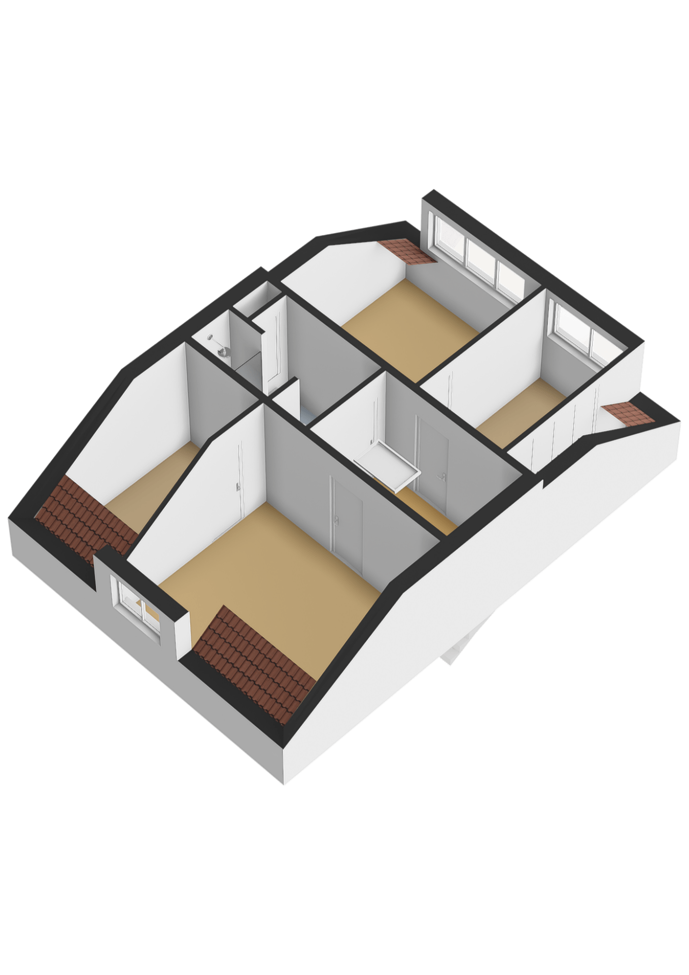 Aan de voorzijde bevindt zich een ruime slaapkamer met inloopkast. Aan de achterzijde ligt een royale slaapkamer met inloopkasten en een dakkapel voor extra licht en ruimte. Daarnaast beschikt deze verdieping over een tweede badkamer met toilet, douche en wastafel.