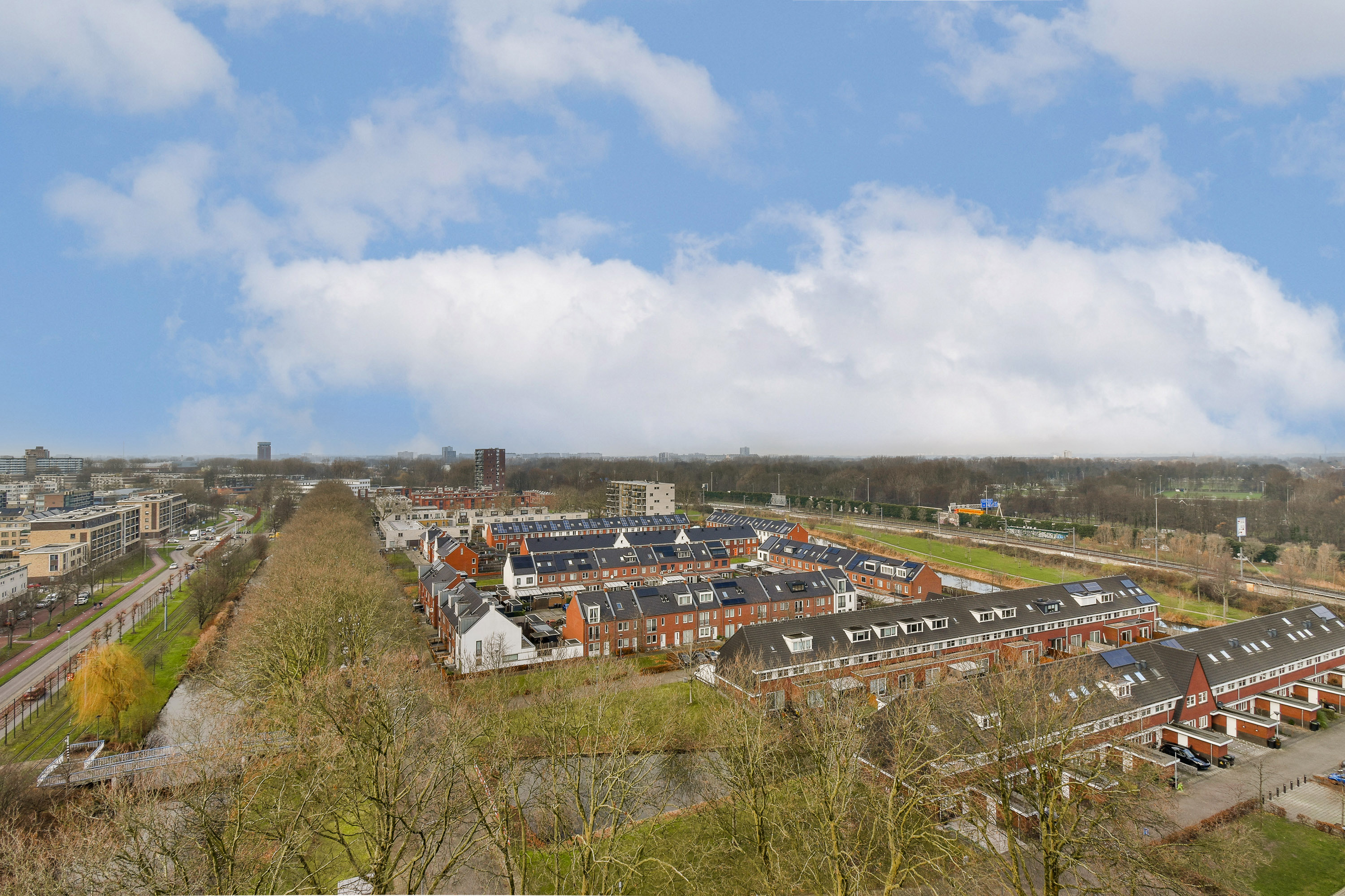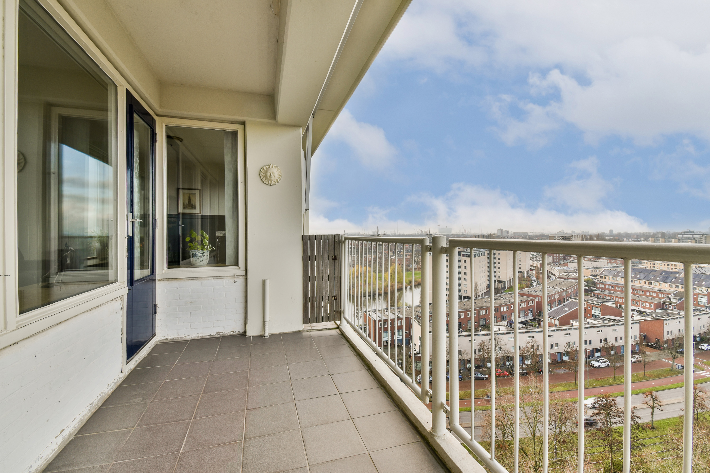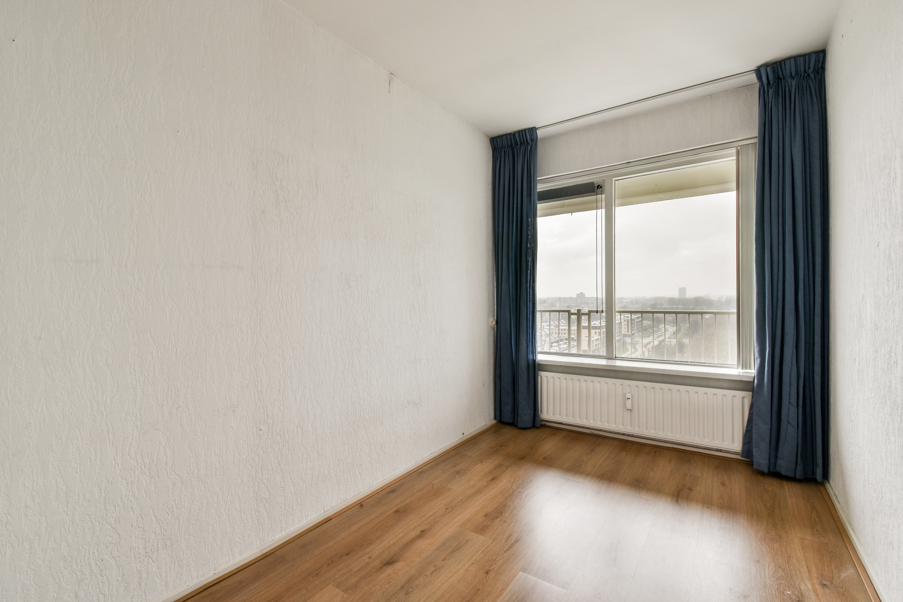 Via de entree kom je in de ruime hal, die toegang biedt tot vrijwel alle vertrekken van het appartement. In de hal bevinden zich een praktische wasruimte en een separate garderoberuimte, wat zorgt voor extra comfort en bergruimte. De dichte keuken is uitgevoerd in een nette wandopstelling en voorzien van een 5-pits gaskookplaat met afzuigkap, een losse vaatwasser en een boiler. Dankzij de efficiënte indeling is er voldoende werk- en kastruimte aanwezig. Het toilet is separaat en uitgevoerd met een fonteintje. De badkamer is functioneel ingericht en beschikt over een wastafelmeubel en een douche. Het appartement telt twee slaapkamers. Slaapkamer 1 is van goed formaat en biedt diverse indelingsmogelijkheden. Slaapkamer 2 onderscheidt zich door het bijzondere uitzicht over de iconische molens van Schiedam, wat elke dag een uniek en typisch Hollands decor oplevert. De zeer royale en lichte woonkamer vormt het hart van het appartement. Door de grote raampartijen geniet je hier van een indrukwekkend weids uitzicht over de omgeving. Vanuit de woonkamer is er directe toegang tot het ruime balkon op het westen, waar je tot in de avonduren kunt genieten van de zon en adembenemende zonsondergangen. Een heerlijke plek om tot rust te komen en te genieten van het uitzicht op hoogte.