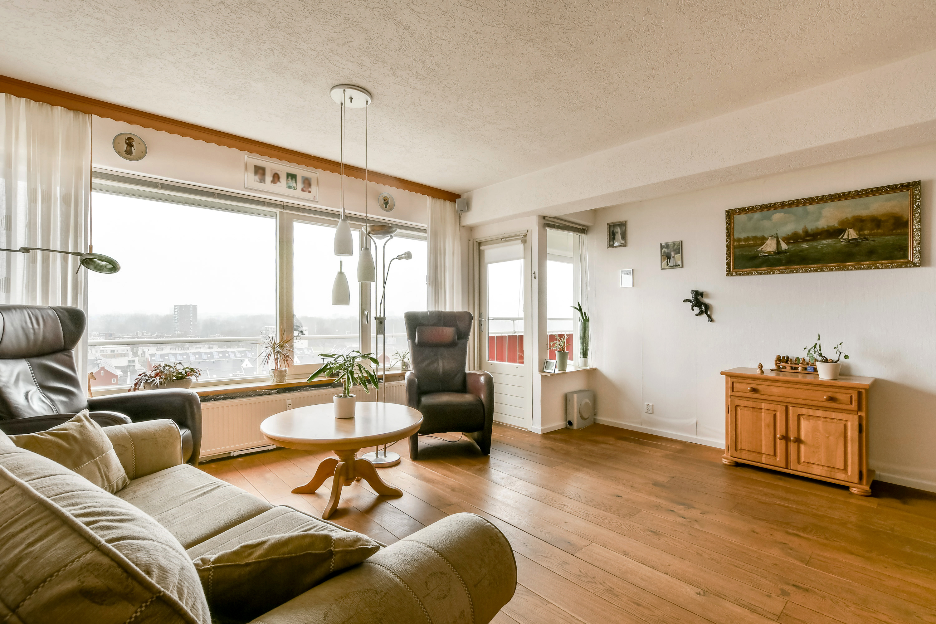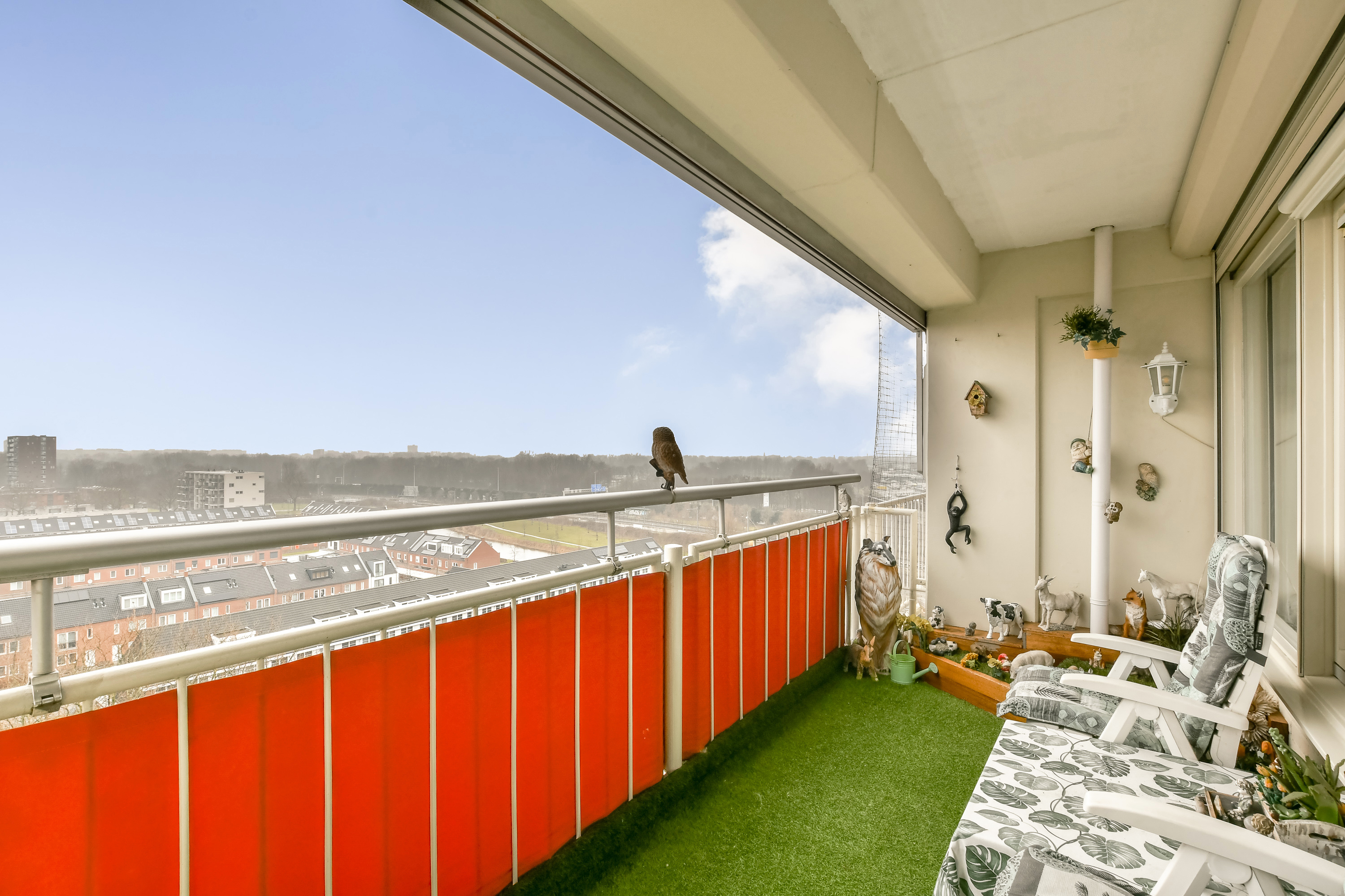 Wij bieden u dit goed ingedeelde 3-kamer appartement aan, gelegen op de tiende verdieping van een verzorgd appartementencomplex met een prachtig vrij en weids uitzicht over Schiedam en de wijde omgeving. De woning beschikt over een lichte en ruime woonkamer met massief eikenhouten vloer, twee slaapkamers, een nette keuken en badkamer, een zonnig balkon op het westen en een eigen berging in de onderbouw. Het complex wordt actief beheerd door een gezonde Vereniging van Eigenaars.