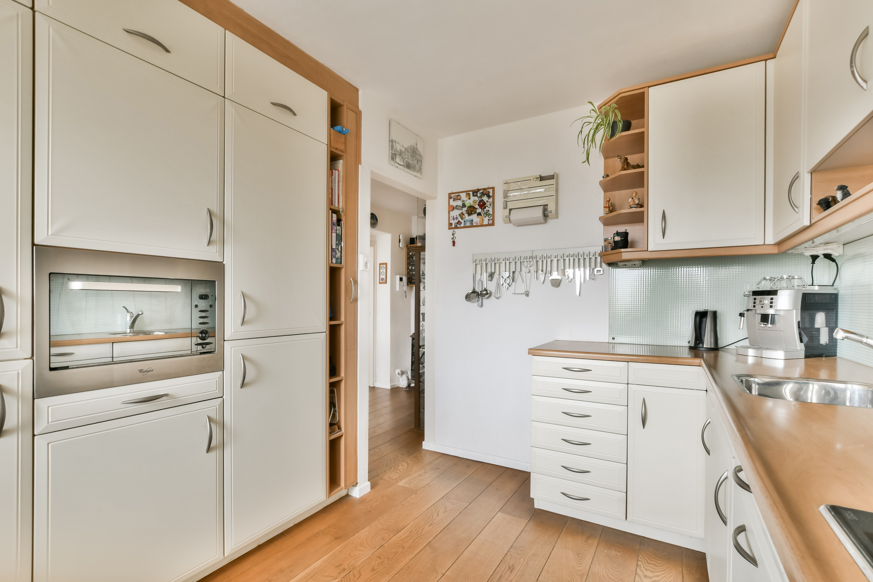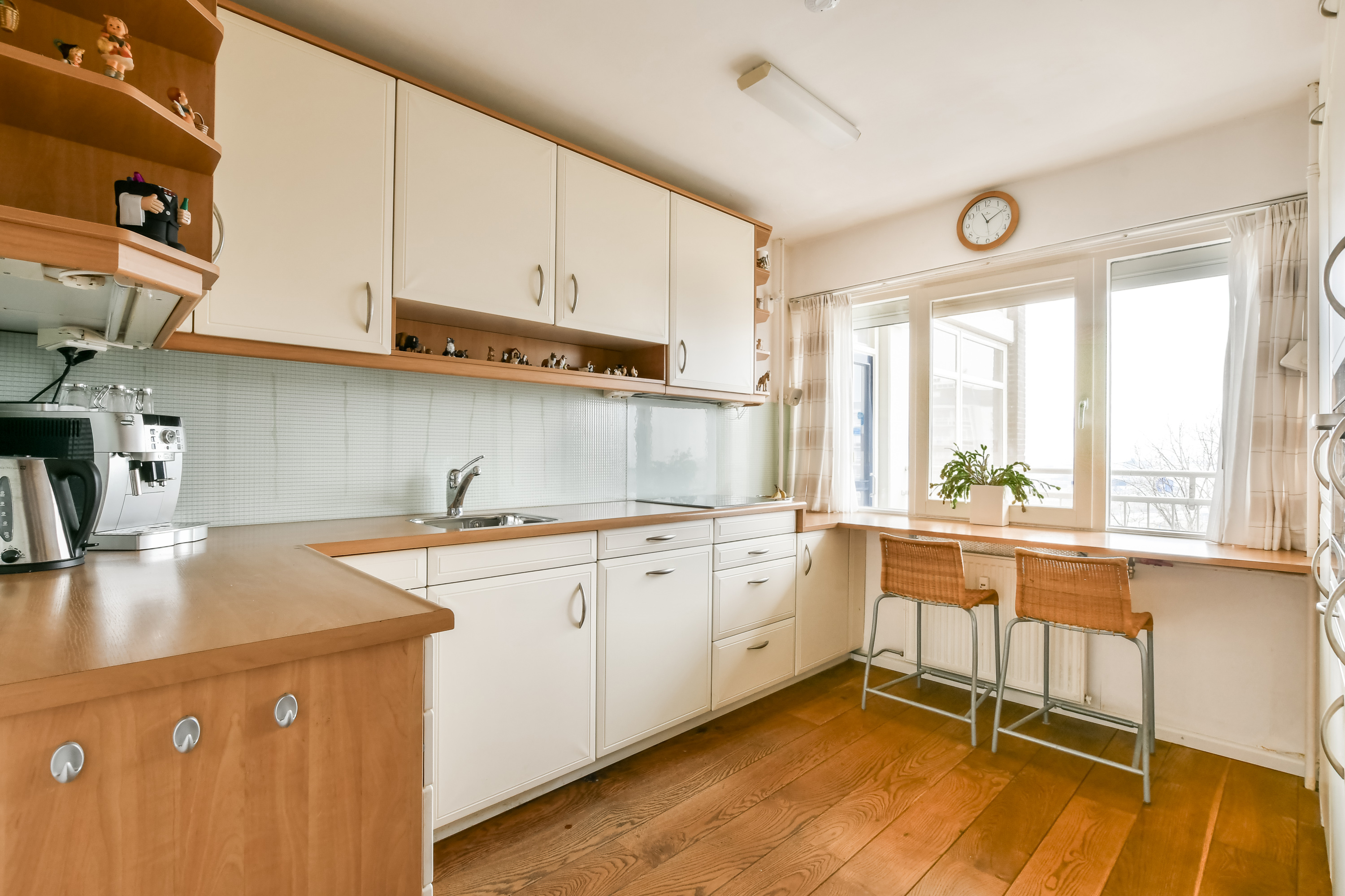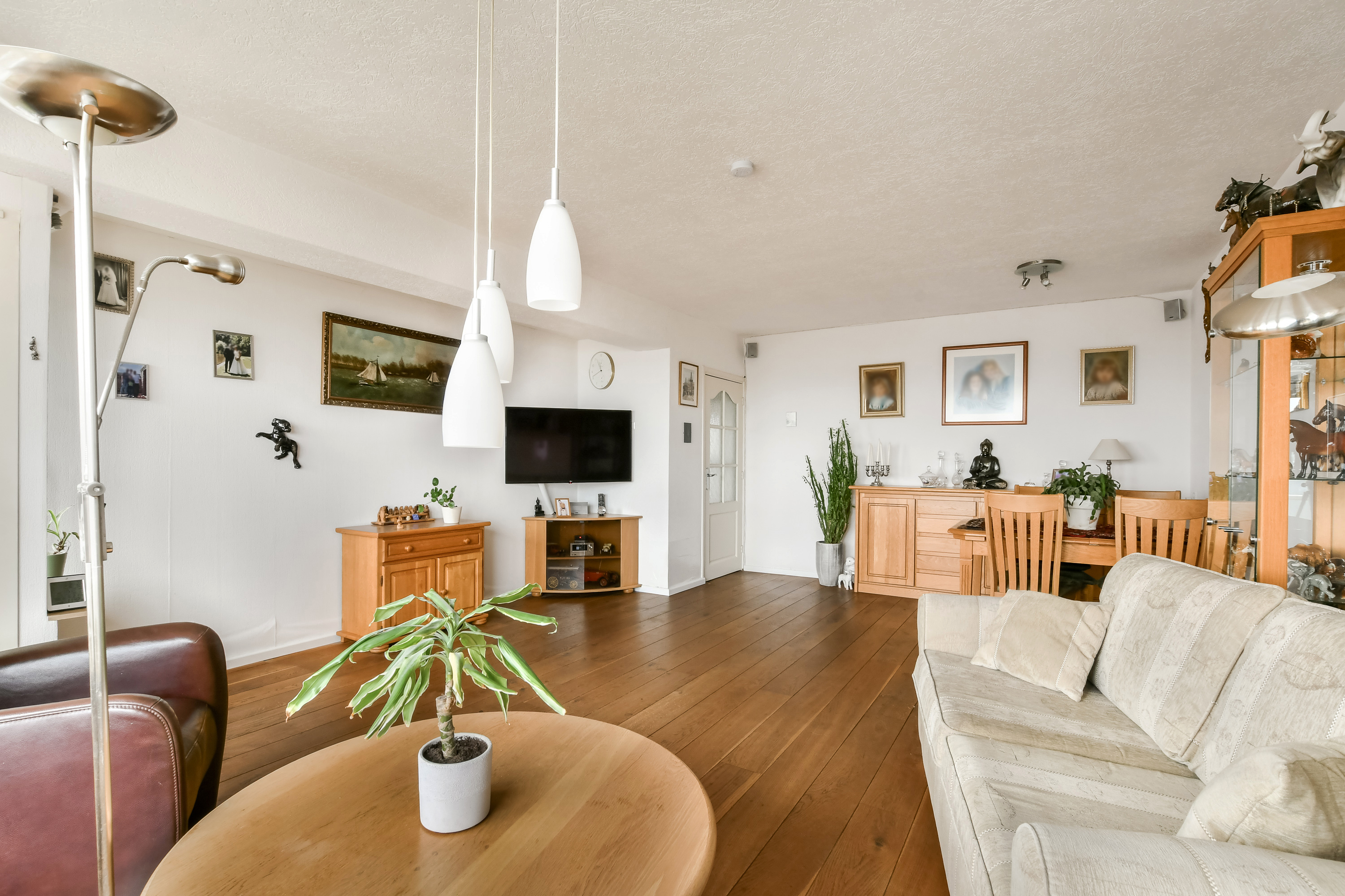 De ruime woonkamer aan de achterzijde biedt veel lichtinval en toegang tot het brede balkon op het westen. De keuken bevindt zich aan de galerijzijde en is voorzien van onder- en bovenkasten, koel-/vriescombinatie, afzuigkap, vaatwasser, combi-oven en aansluiting voor de wasmachine.