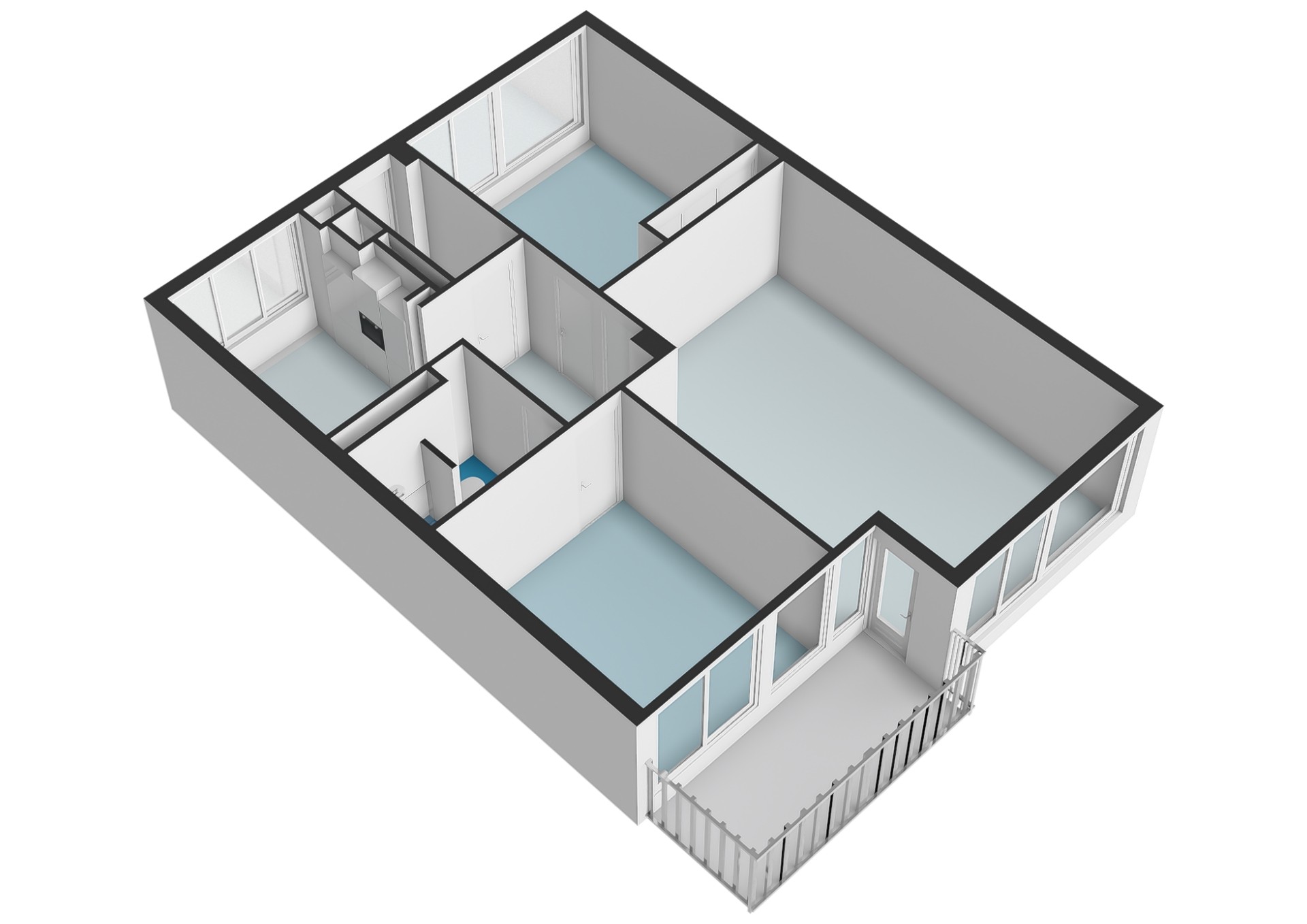 De hoofdslaapkamer bevindt zich aan de galerijzijde, terwijl de tweede slaapkamer aan de achterzijde is gelegen. De badkamer is uitgerust met een douche, wastafelmeubel, radiator en toilet.