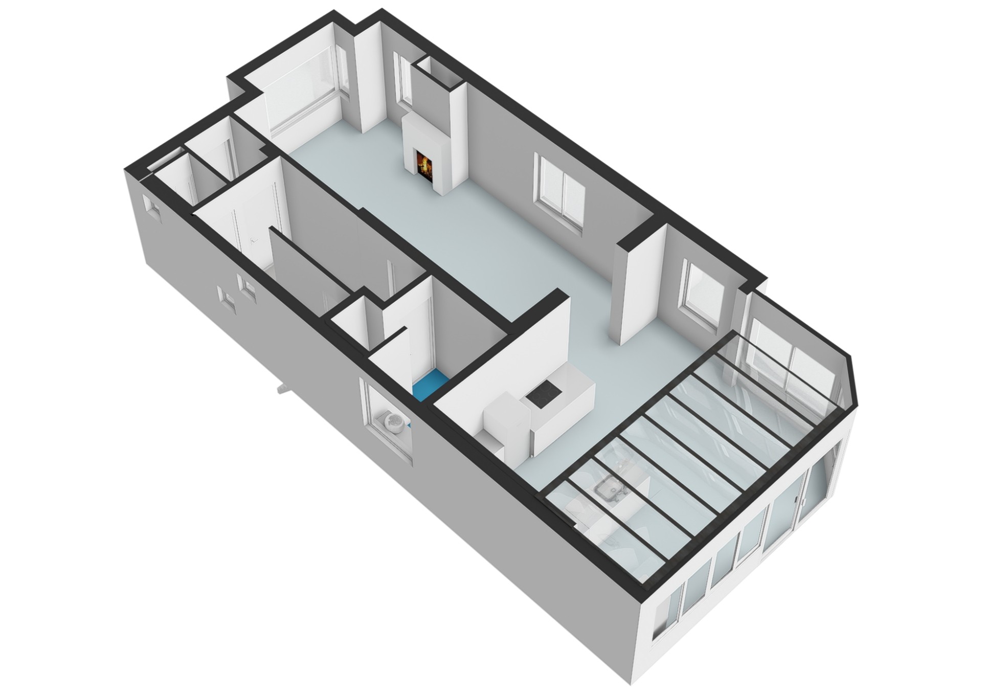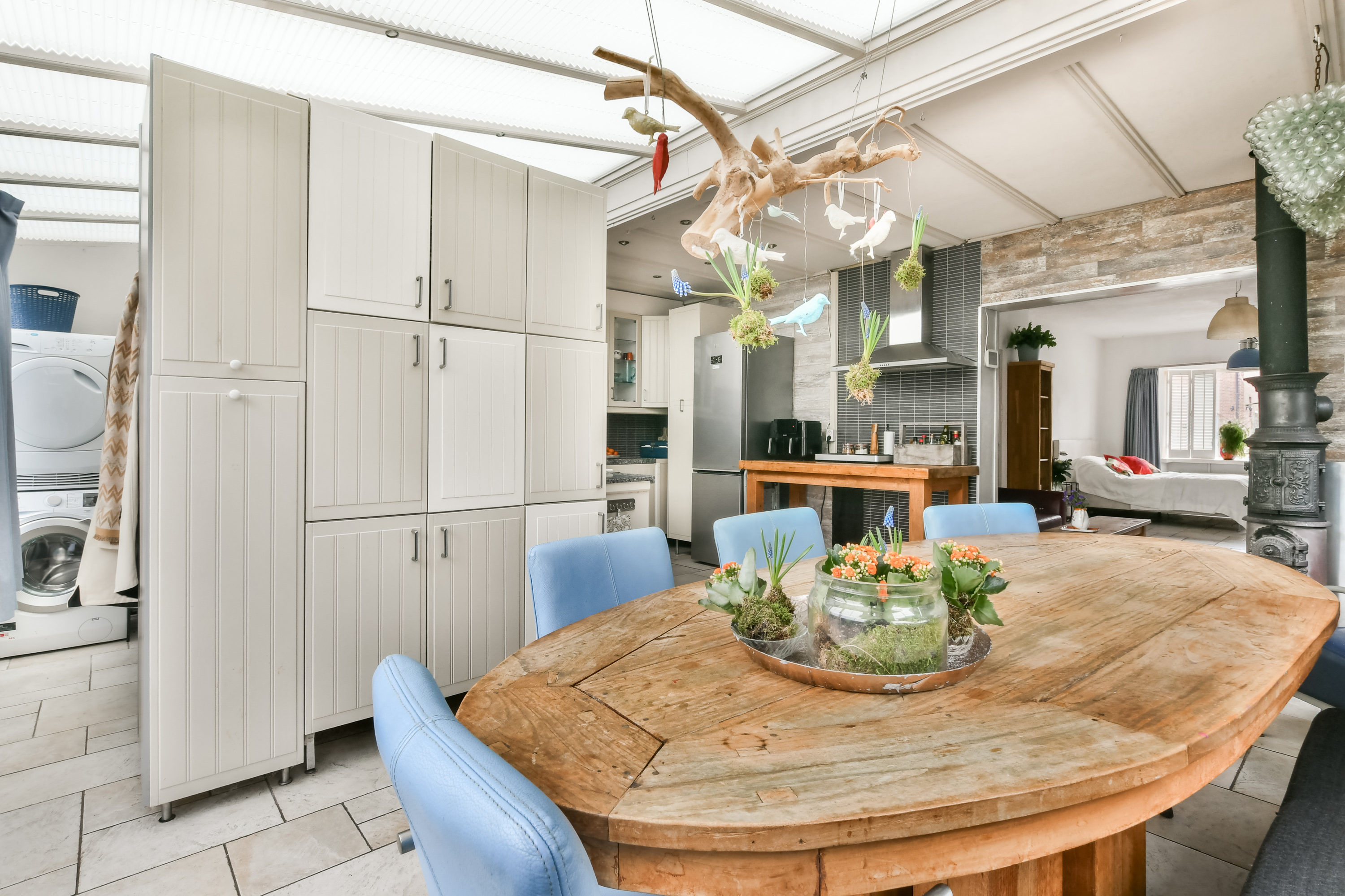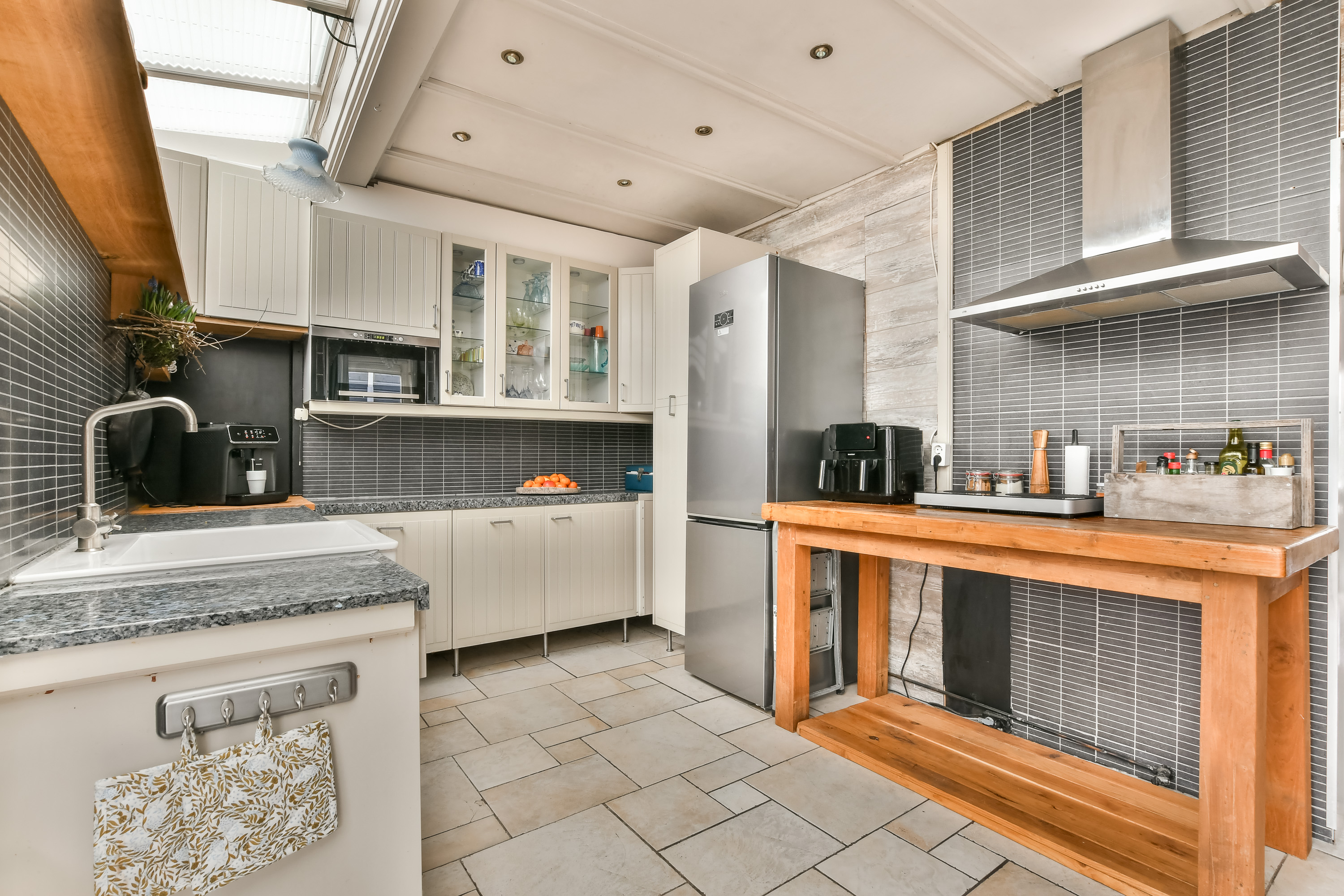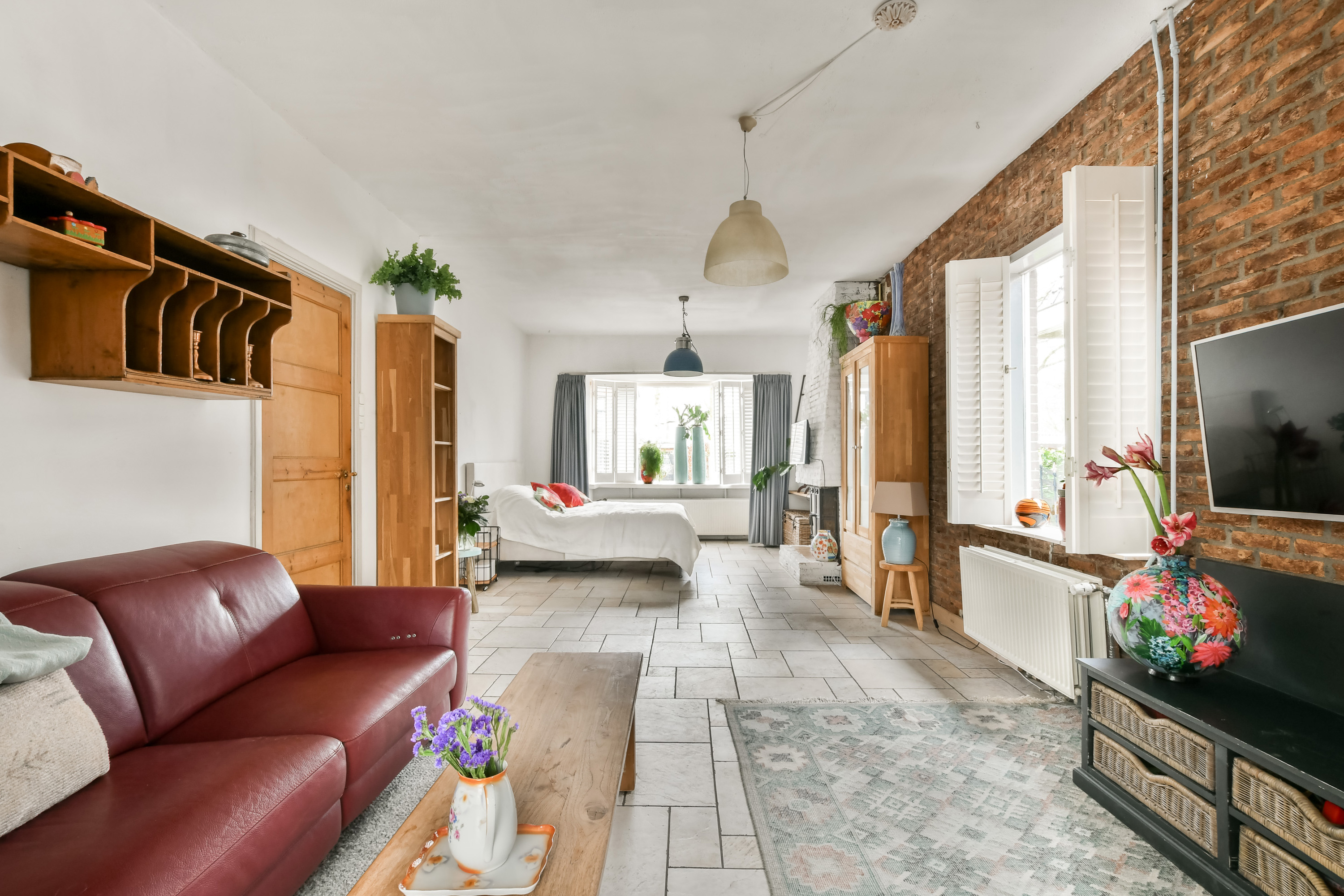 De royale doorzonwoonkamer is een ware blikvanger: heerlijk ruim, licht en sfeervol, met een charmant erkerraam, plavuizen vloer en een gezellige open haard als centraal middelpunt. Dankzij de grote raampartijen geniet u hier de hele dag van natuurlijk licht. Via de achterzijde van de woonkamer bereikt u de woonkeuken, voorzien van diverse kasten en inbouwapparatuur, met volop werk- en bergruimte.