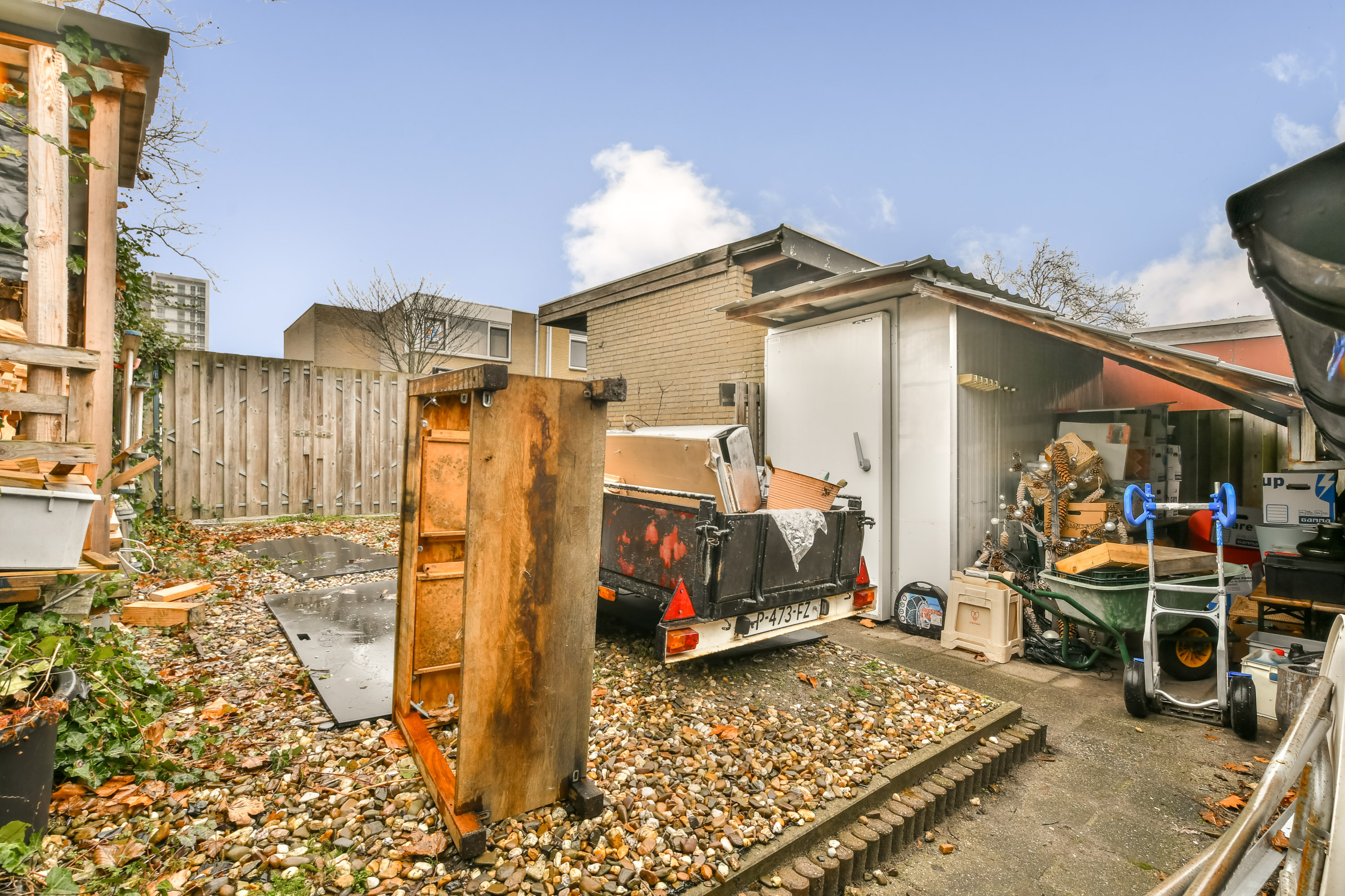- Gelegen op eigen grond, achterzijde van het perceel ia in gebruik van gemeente Schiedam