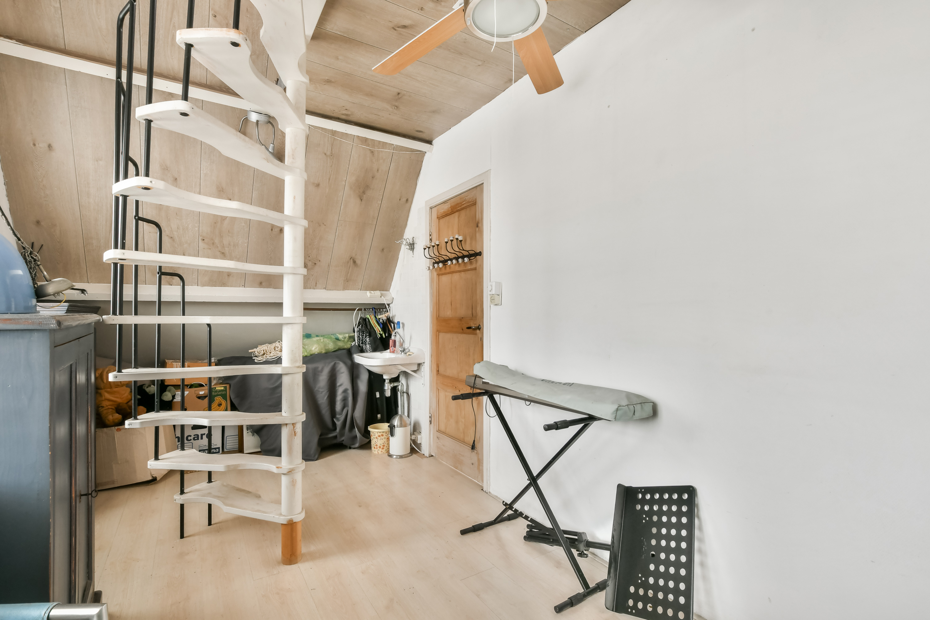 Via een spiltrap bereikt u de zolderverdieping. Deze ruimte biedt verrassend veel mogelijkheden en kan naar wens worden ingericht als kantoor, hobbyruimte of bergruimte.