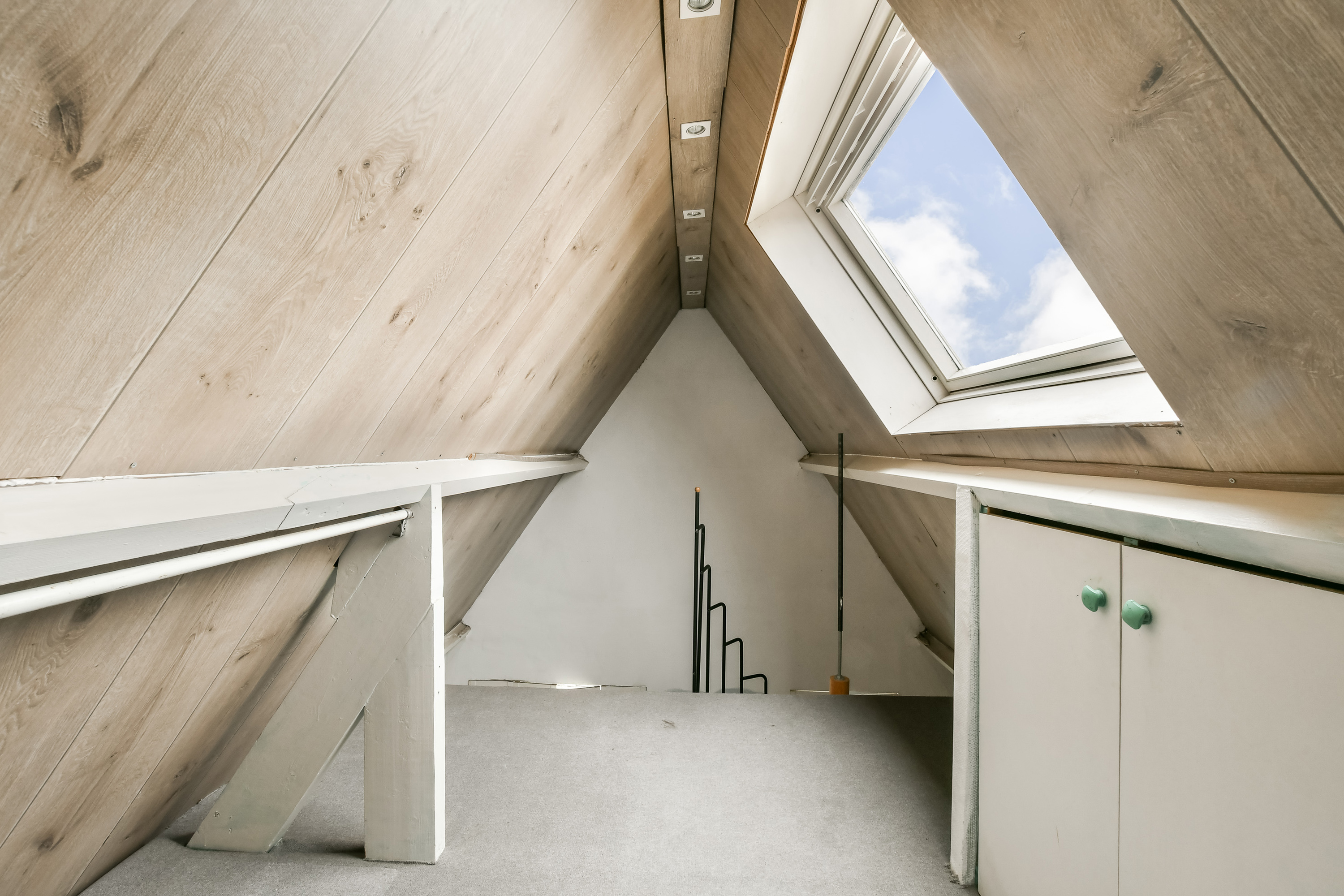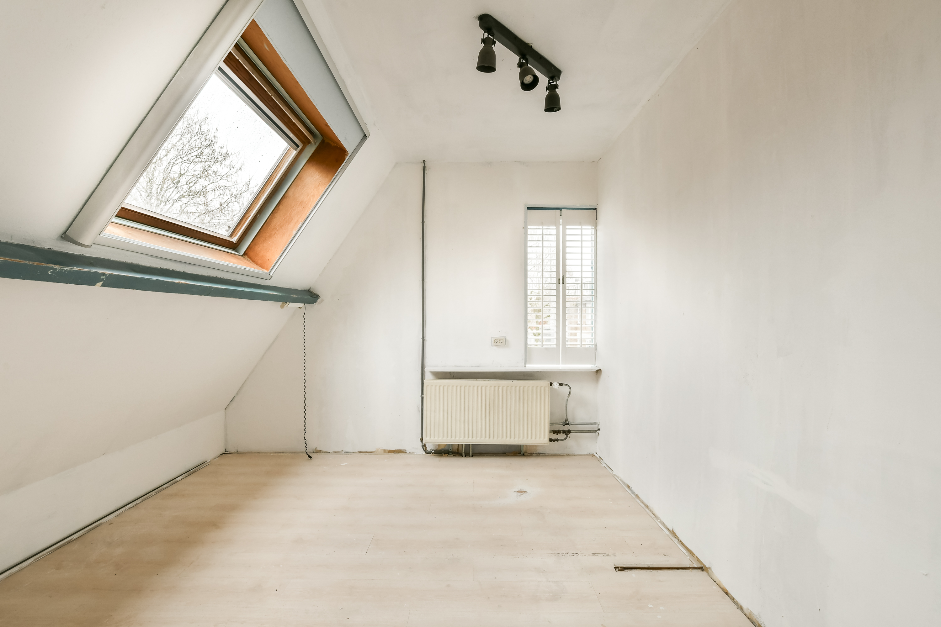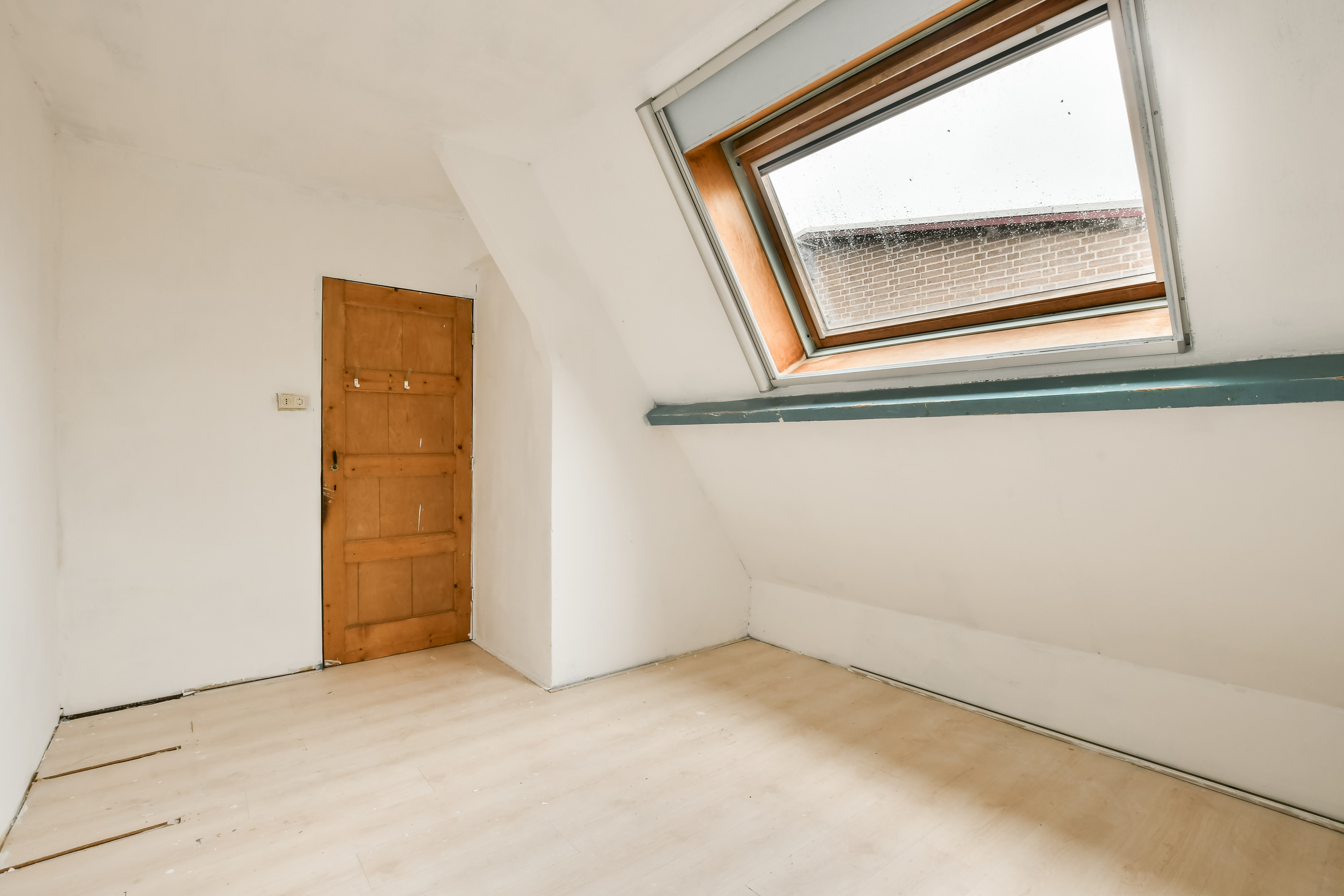De overloop biedt toegang tot meerdere slaapkamers. Aan de voorzijde bevindt zich twee slaapkamers met dakramen. Aan de achterzijde treft u derde slaapkamer met een spiltrap naar de zolderverdieping, waar eenvoudig een hobby of werkruimte gerealiseerd kan worden. Deze verdieping biedt volop mogelijkheden voor gezinnen, thuiswerkers of hobbyisten. Vanuit de derde slaapkamer heeft u toegang tot een terras op het westen.