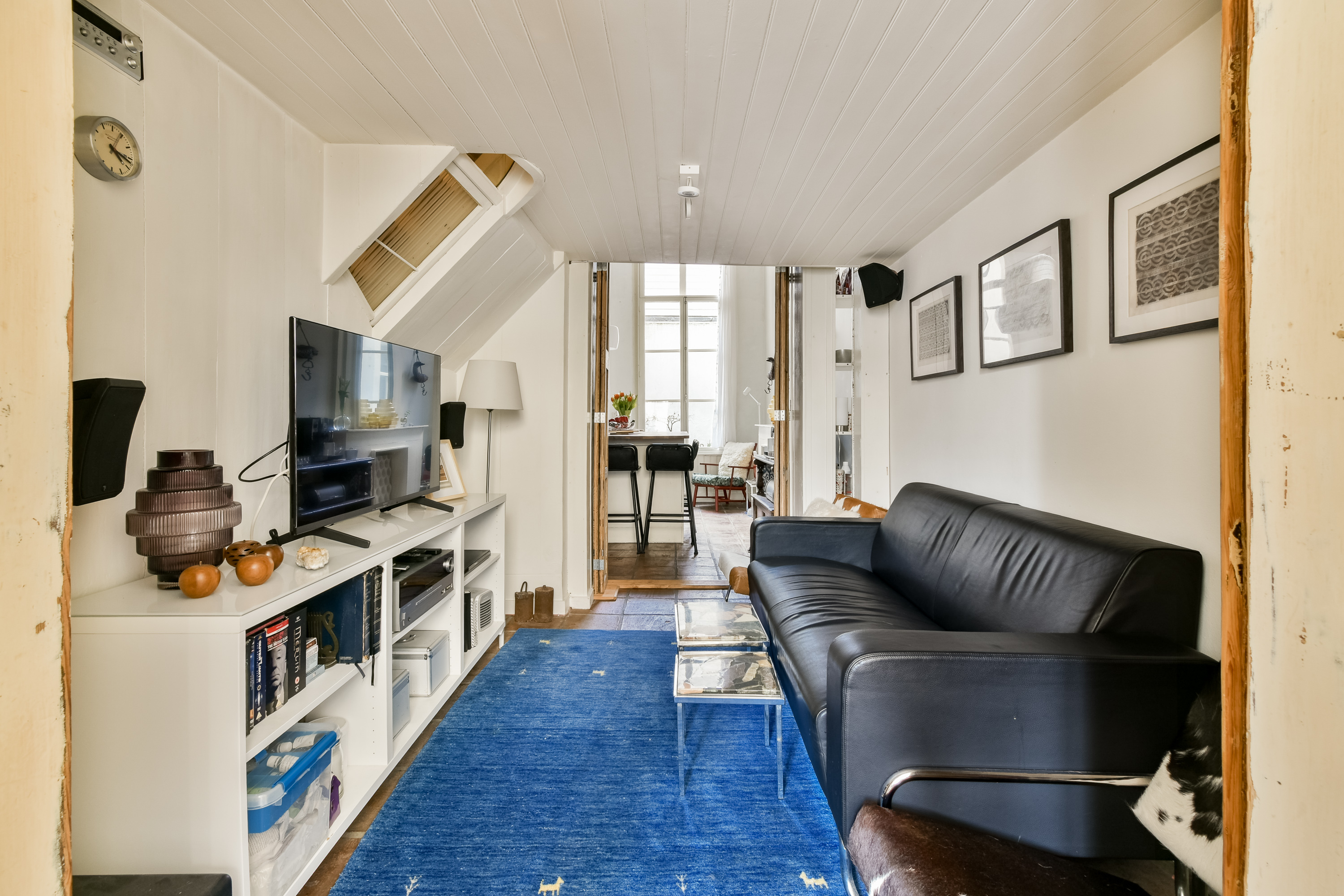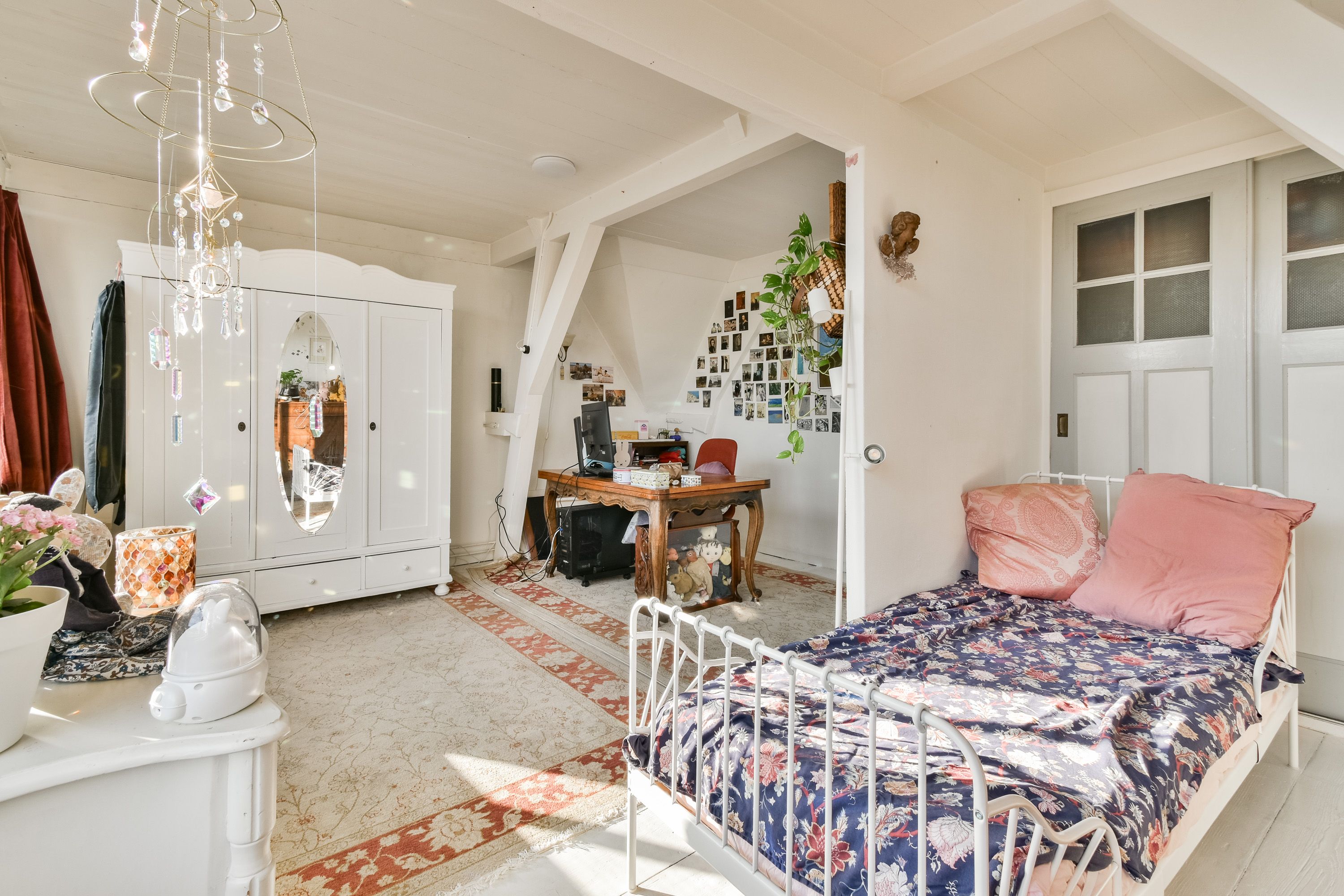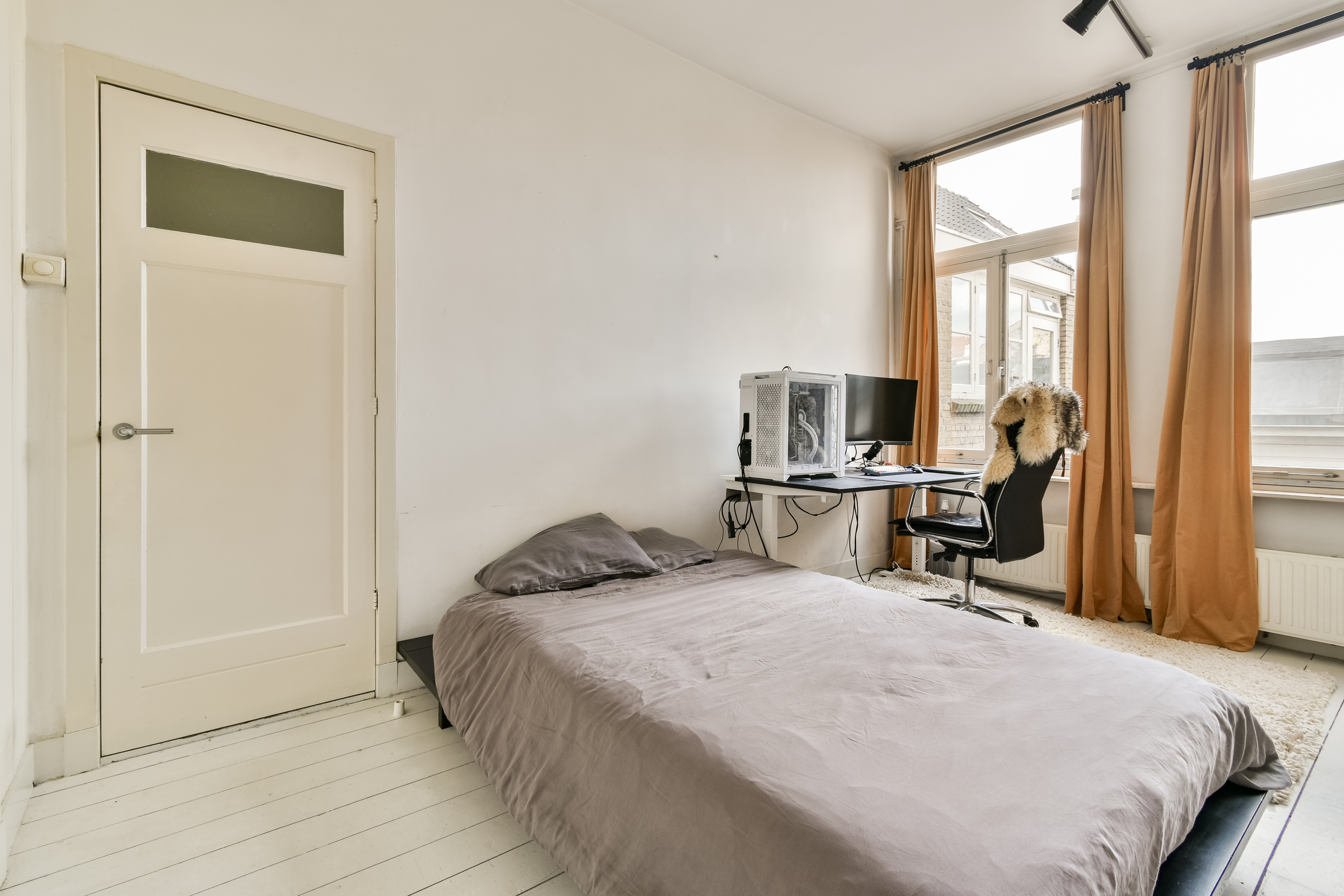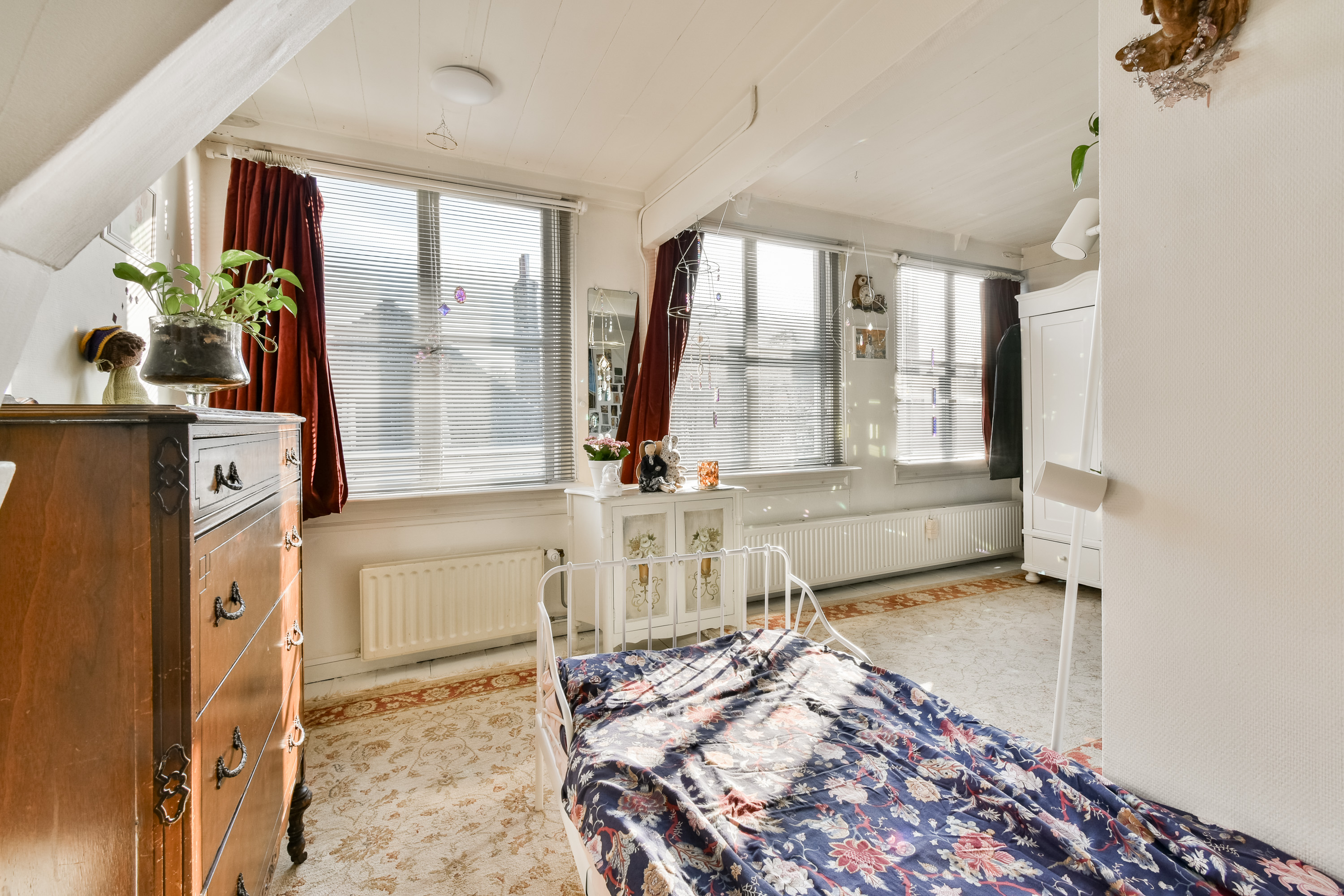 Een zeer royale overloop/open zolderruimte met Velux dakraam. Ideaal als werkruimte, atelier of extra leefruimte. Tevens is er extra bergruimte aanwezig via de vide-bergingen bereikbaar met een ladder. Vanuit deze open ruimte is er toegang tot nog eens twee slaapkamers, gelegen aan de voor- en achterzijde van de woning. Beiden voorzien van een eikenhouten vloer.