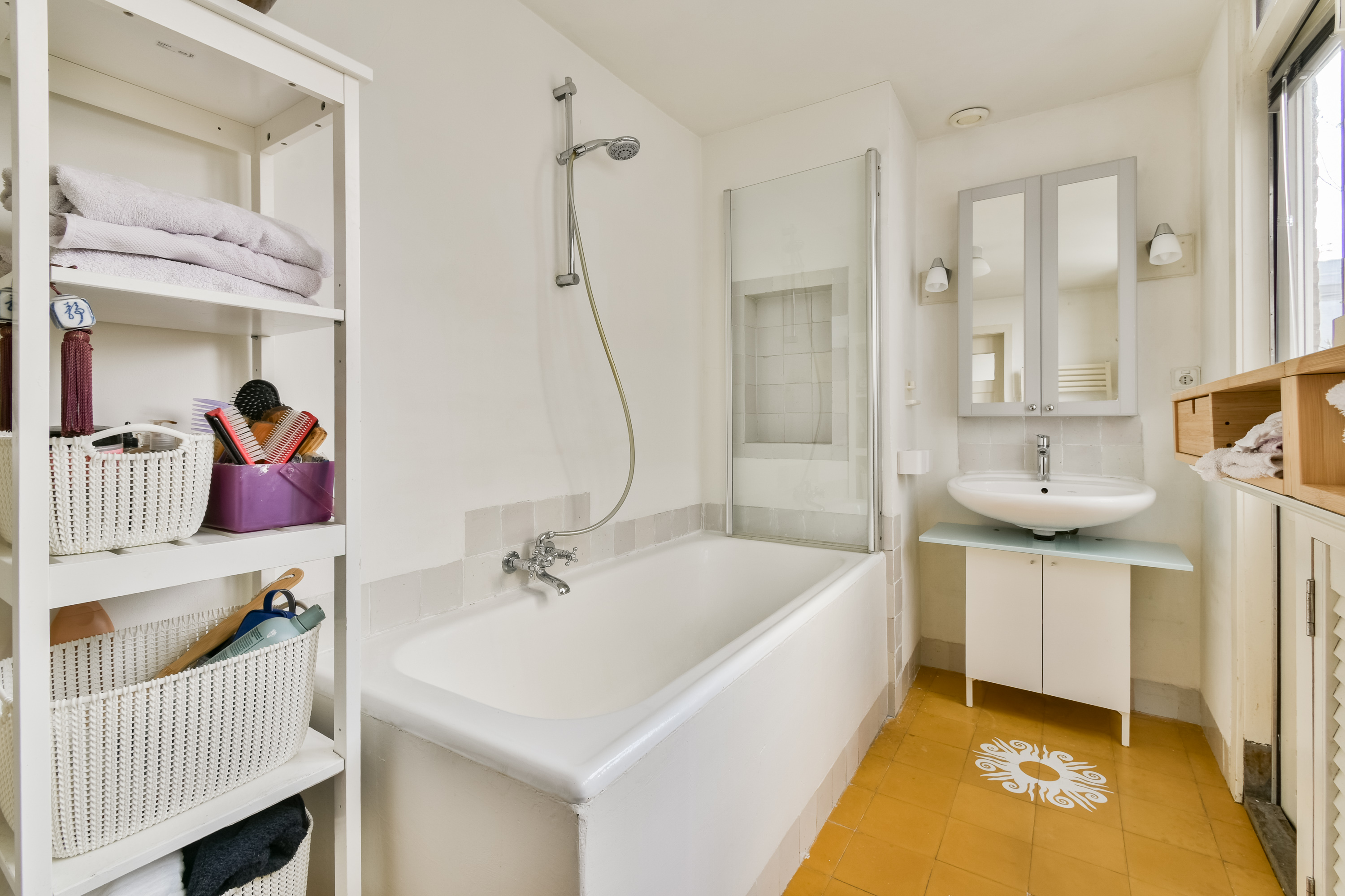 Ruime overloop met toegang tot twee slaapkamers, de badkamer, separate toiletruimte en een vaste kast waarin de opstelplaats van de wasmachine en droger zich bevind. Royale slaapkamer met eikenhouten vloer gelegen aan de voorzijde van de woning. De tweede slaapkamer is gelegen aan de achterzijde en eveneens ruim en voorzien van twee vaste kasten en een eikenhouten vloer. De badkamer is uitgevoerd met ligbad en douchegedeelte, wastafelmeubel met spiegel en geeft toegang tot een verrassend ruime onderliggende bergruimte waarin zich tevens de opstelplaats van de cv-combiketel bevind. Vanuit de badkamer is er toegang tot het balkon met zicht op de binnenplaats.