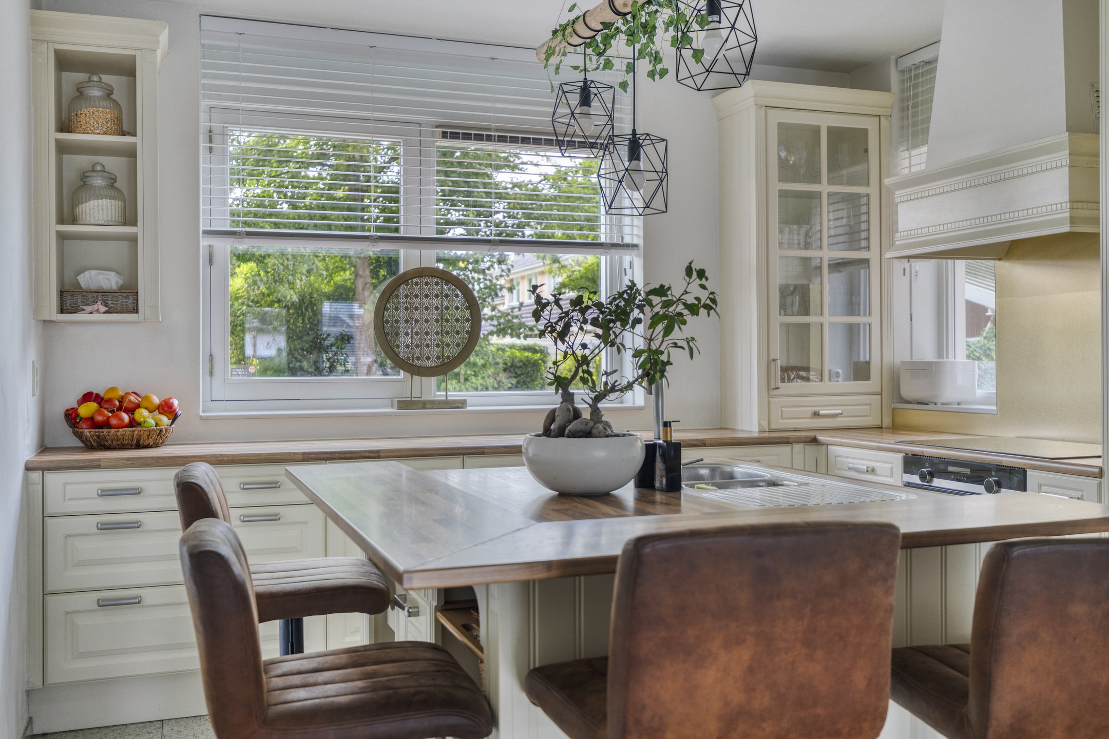 Via de entree met meterkast en toilet bereikt u de zeer ruime garage die ook direct toegang biedt tot de achtertuin. De royale L-vormige woonkamer is voorzien van vloerverwarming, airconditioning en openslaande deuren naar de achtertuin. De open keuken is een echte eyecatcher en beschikt over een koelkast, inductiekookplaat met afzuigkap, oven en een stijlvol spoeleiland met vaatwasser. De heerlijk grote en rustig gelegen achtertuin (noord) grenst direct aan het water: een prachtige plek om te ontspannen.