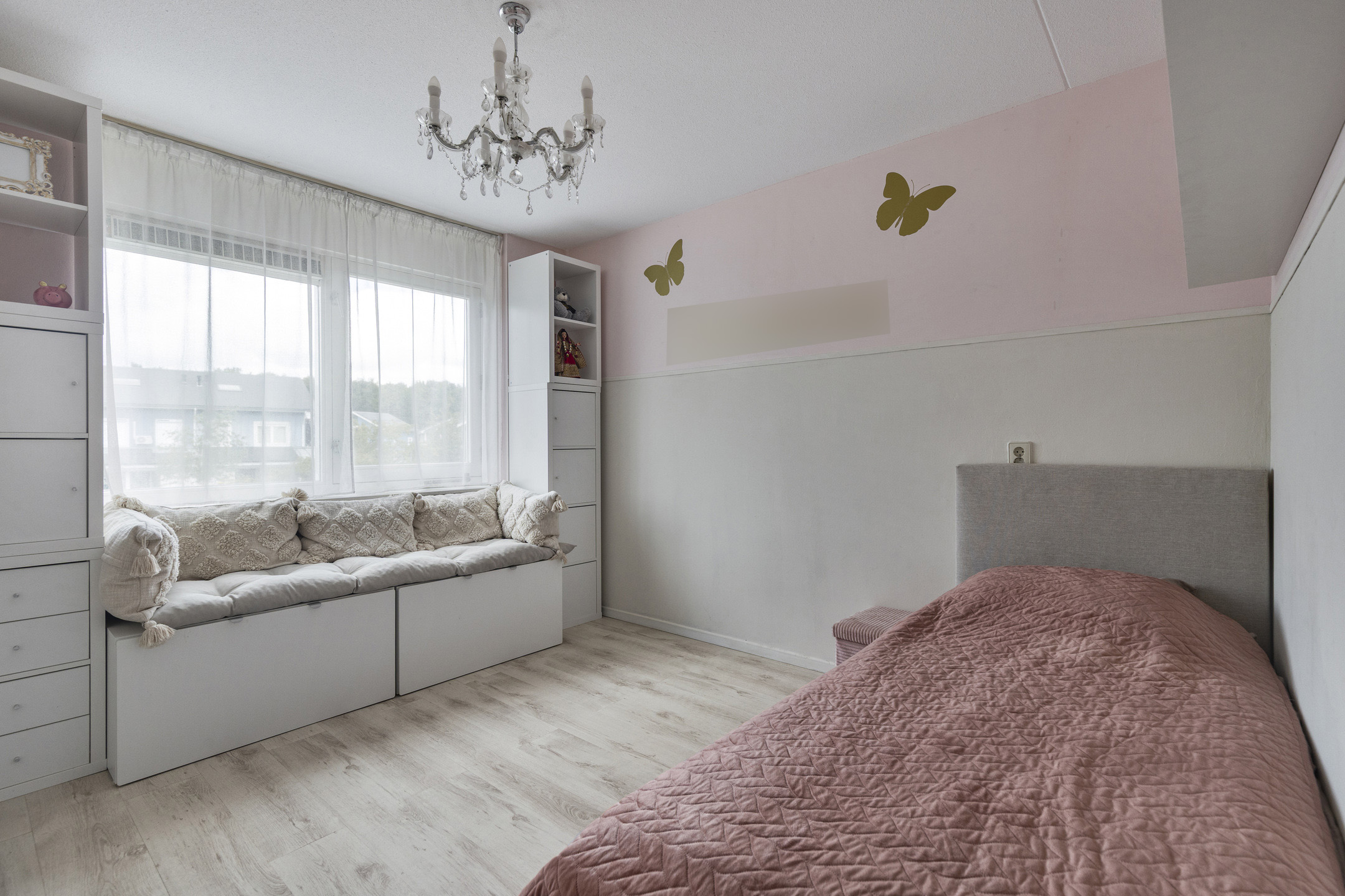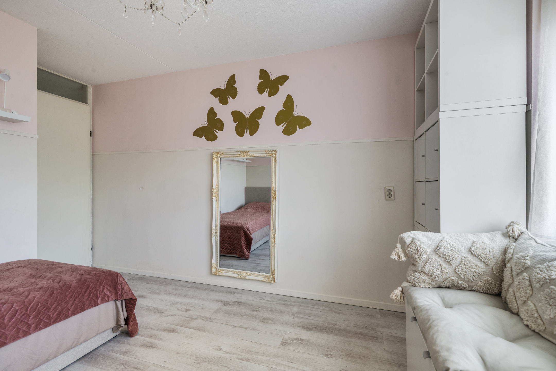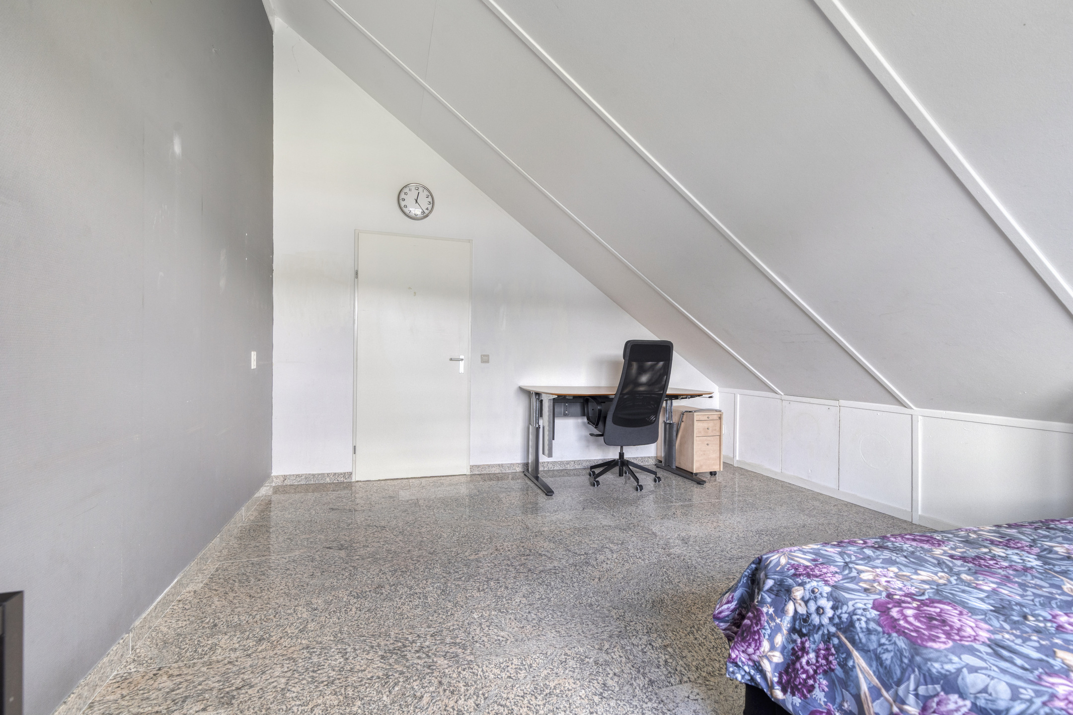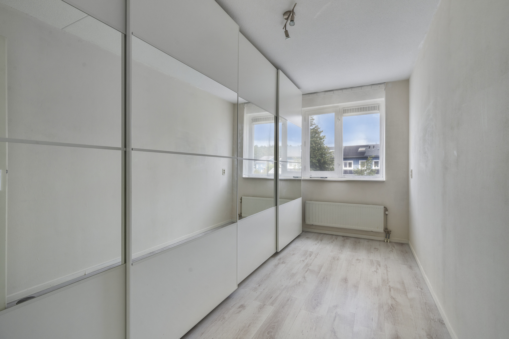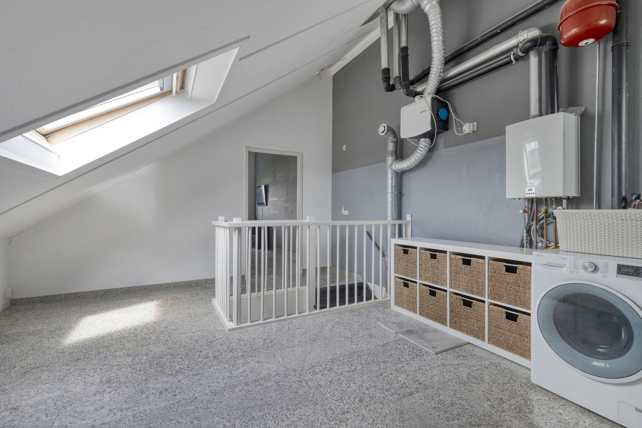 Deze verdieping biedt een verrassend ruime overloop met Velux-dakraam, wasmachineaansluiting, nieuwe mechanische ventilatie, een Remeha CV-combiketel (2016) en een gastendouche met wastafelmeubel. Aan de achterzijde bevindt zich de royale vijfde slaapkamer. Extra bergruimte is aanwezig achter de knieschotten.