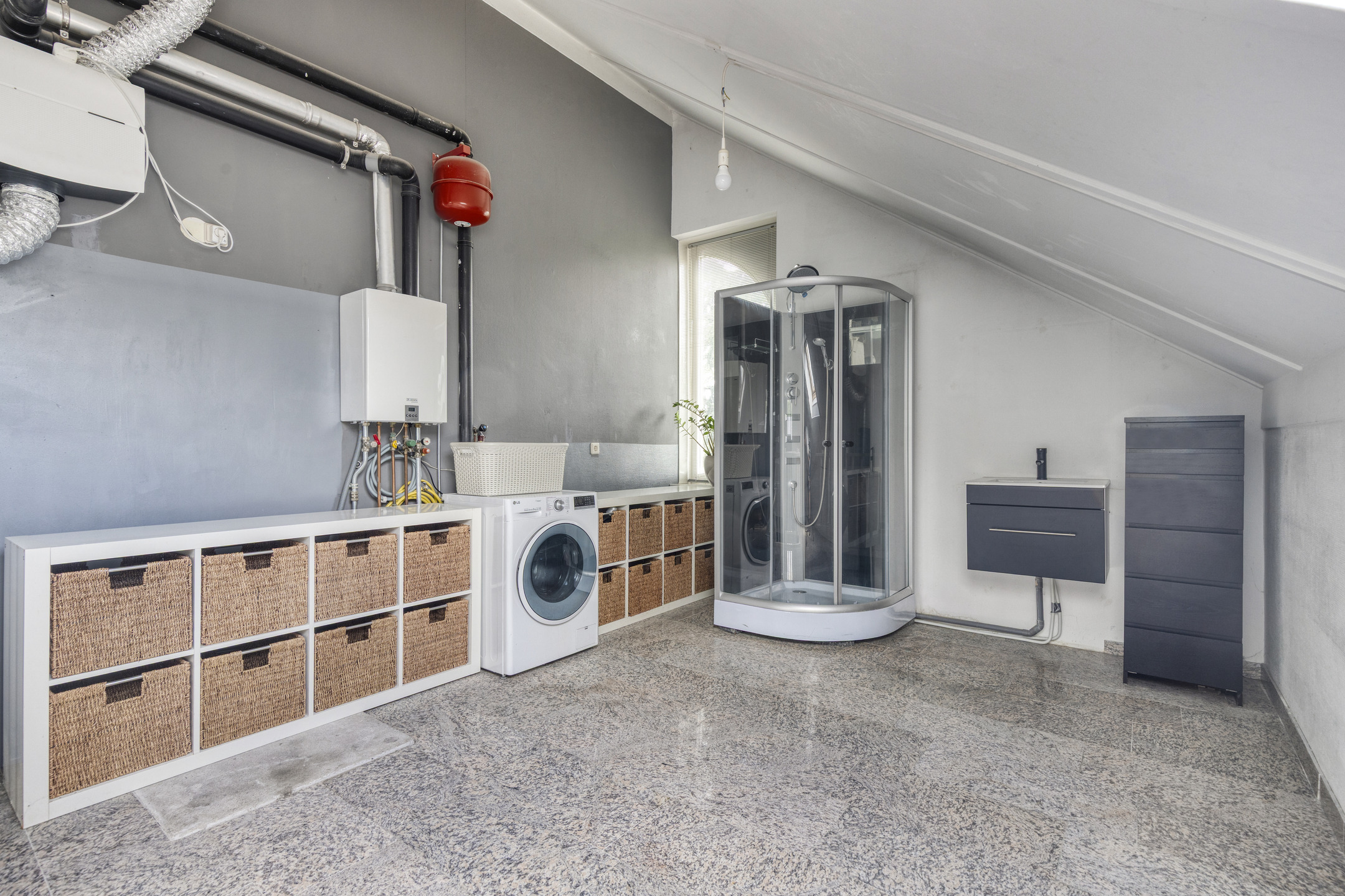 - Zeer ruime garage met granieten vloer