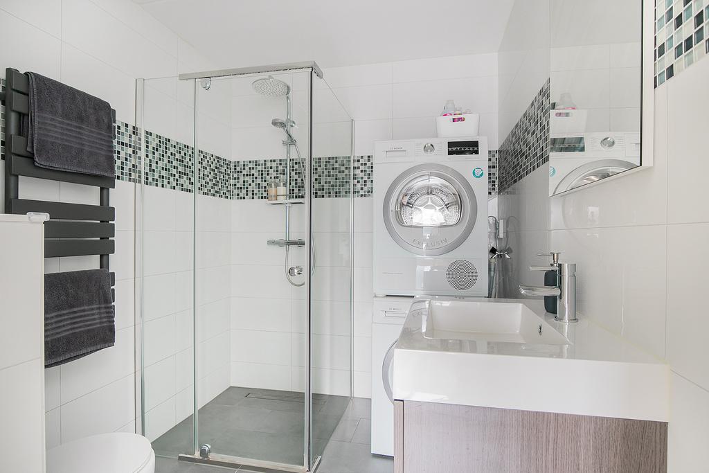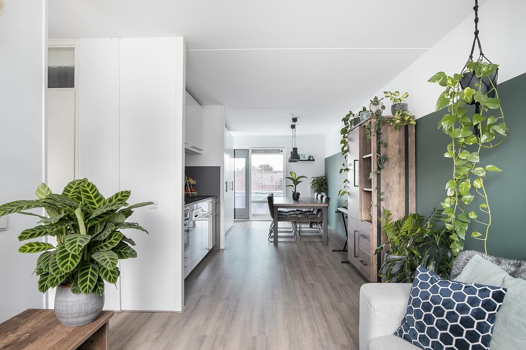 Entree, hal, meterkast, vaste kast en een tweede kast met opstelling cv-combiketel en de mechanische ventilatie unit. De woonkamer is gelegen aan de voorzijde van het appartement en hier heeft u toegang tot het ruime balkon. De open keuken is in het midden van de ruimte gesitueerd. De keuken is voorzien van diverse inbouwapparaten, o.a. een gaskookplaat, vaatwasser en een combi-oven. Aan de achterzijde bevindt zich het slaapgedeelte, welke op praktische wijze van de woonkamer wordt gescheiden middels een kastenwand. Ruime moderne badkamer met douche, toilet, en wastafelmeubel.
