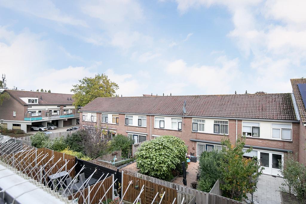 Het balkon is gesitueerd op het oosten en kijkt uit over de wijk.