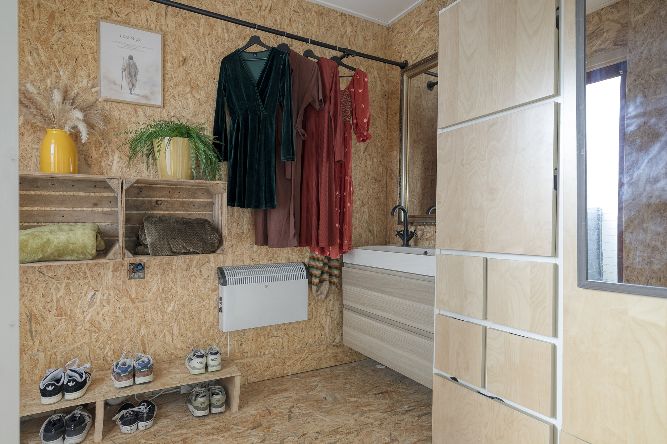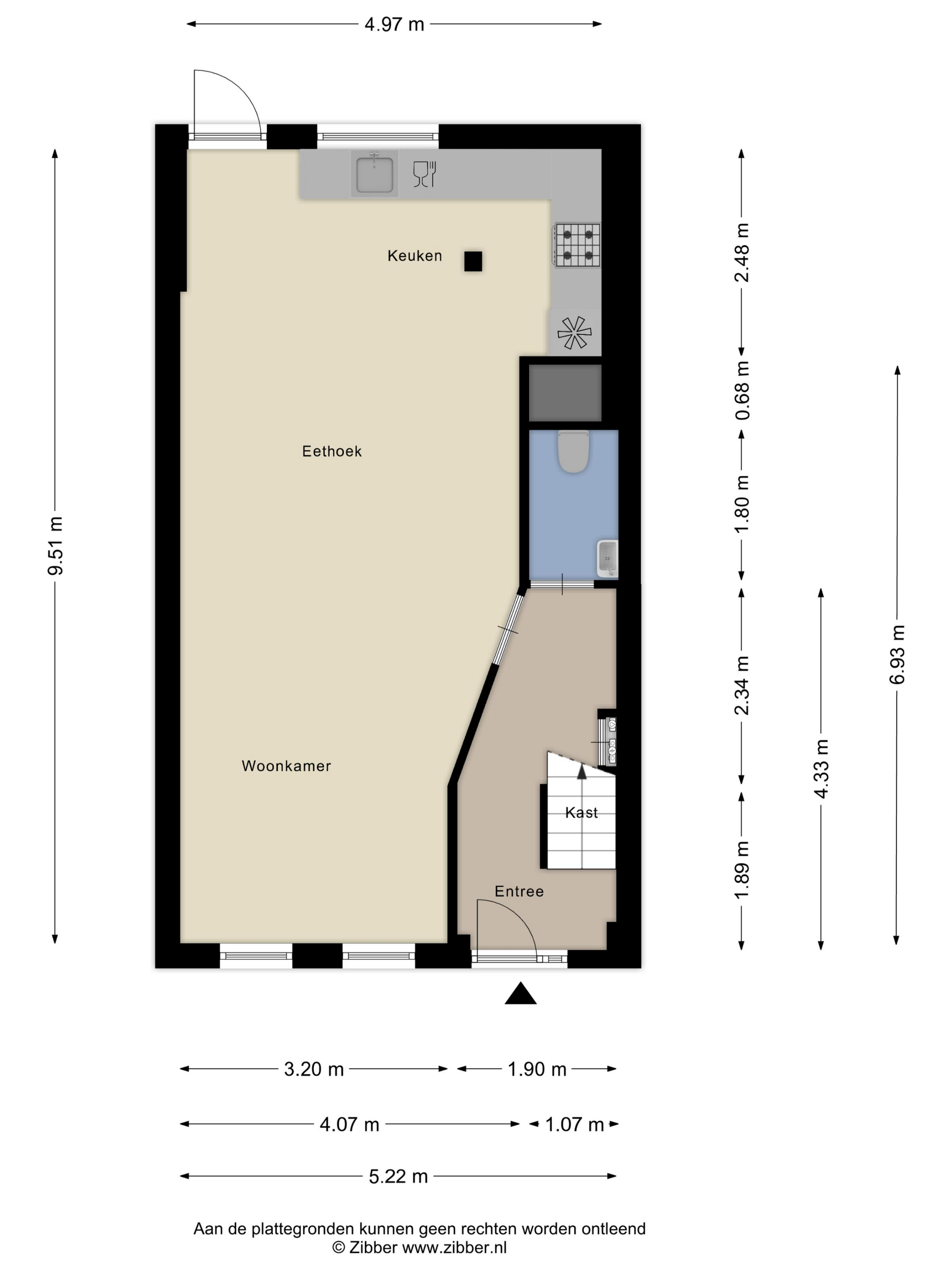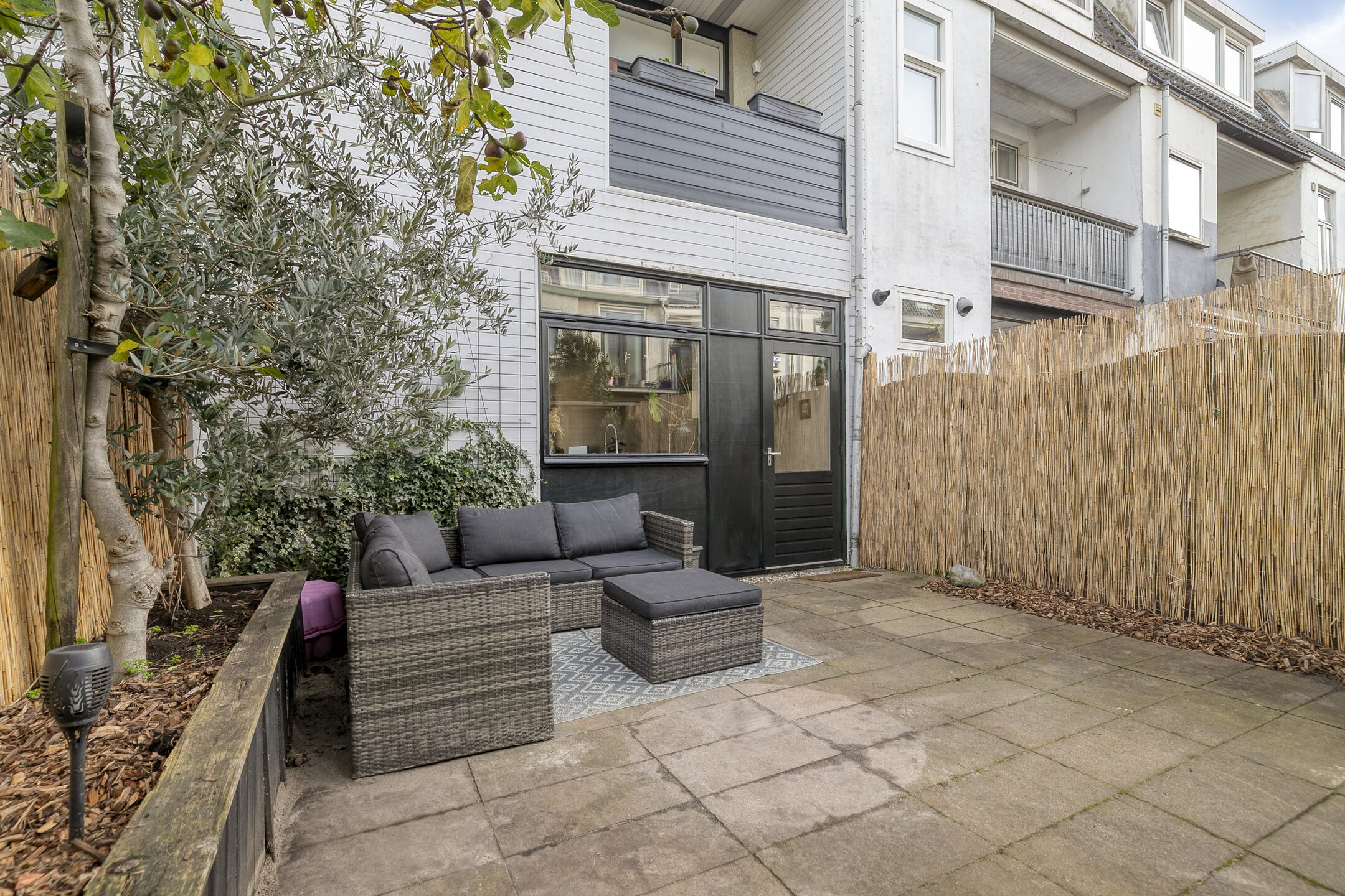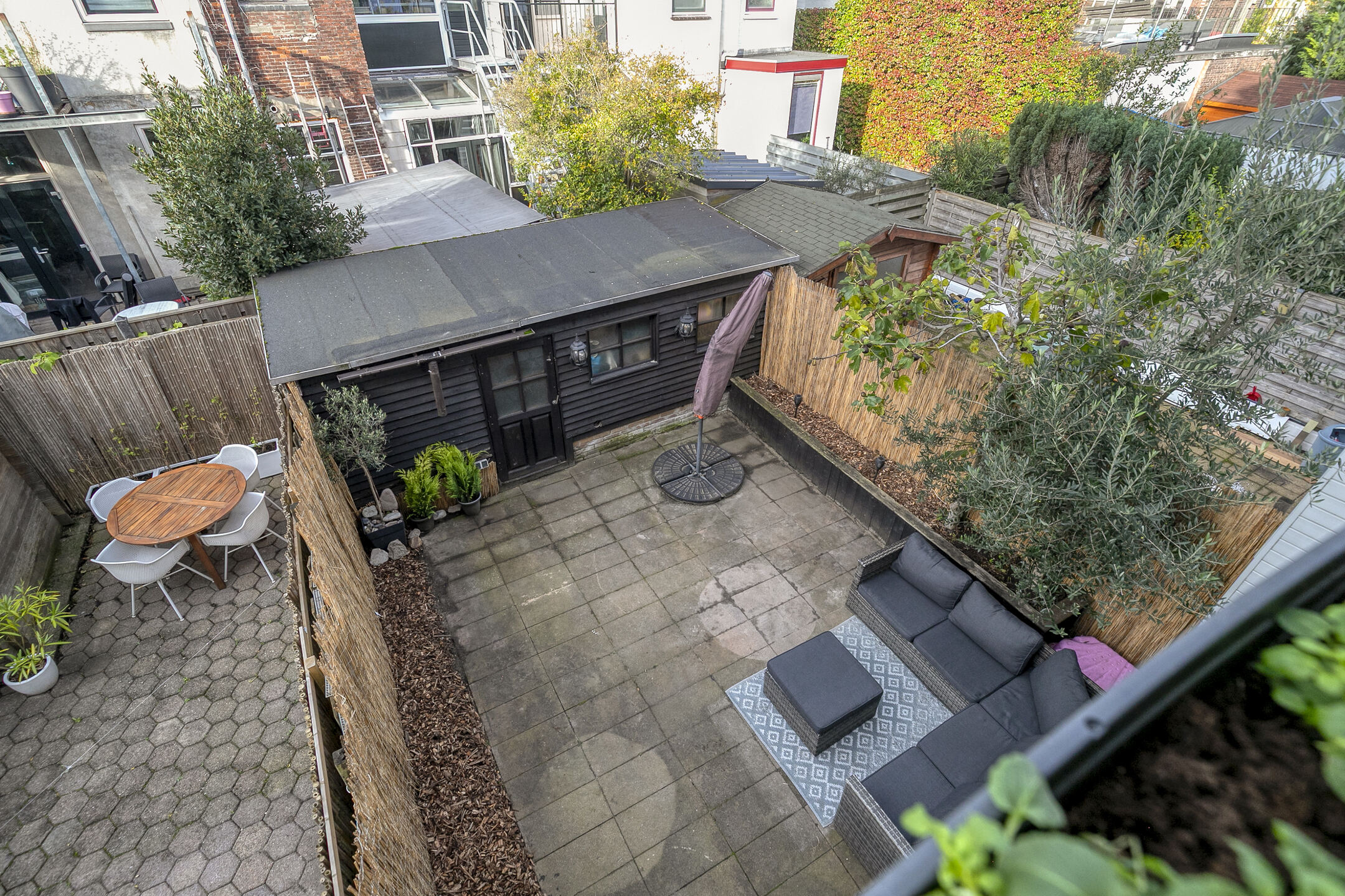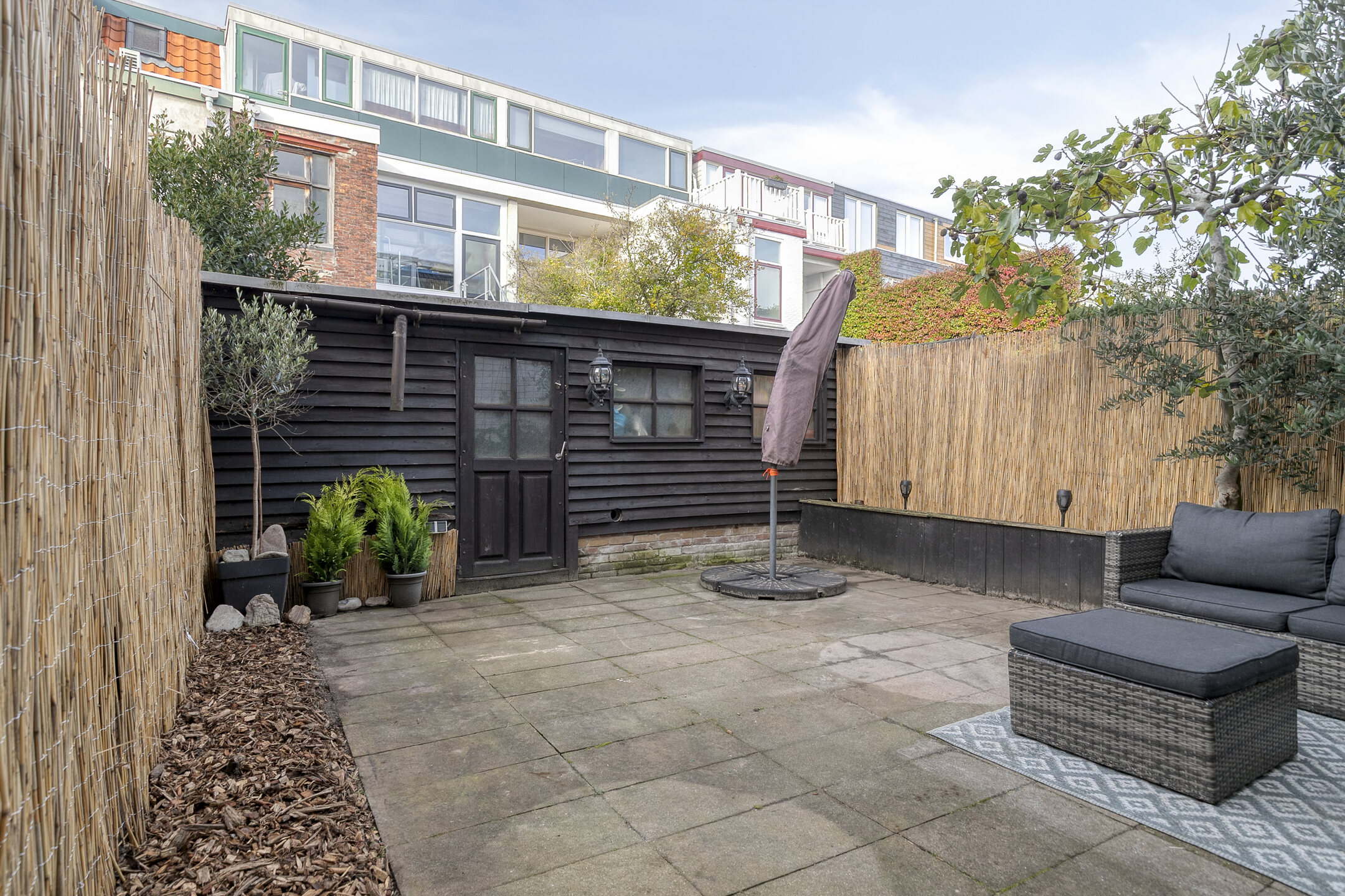 Entree met ruime hal, meterkast, schoenenkast onder de trap en extra bergruimte boven het toilet. Modern toilet met wandcloset en hardstenen fonteintje. De lichte en royale woonkamer staat in open verbinding met de keuken. De keuken, uitgevoerd in hoekopstelling, is voorzien van een 4-pits gaskookplaat, afzuigkap, oven en vaatwasser. Vanuit de woonkamer bereikt u de heerlijke achtertuin gelegen op het noordwesten, met houten berging voorzien van elektra.