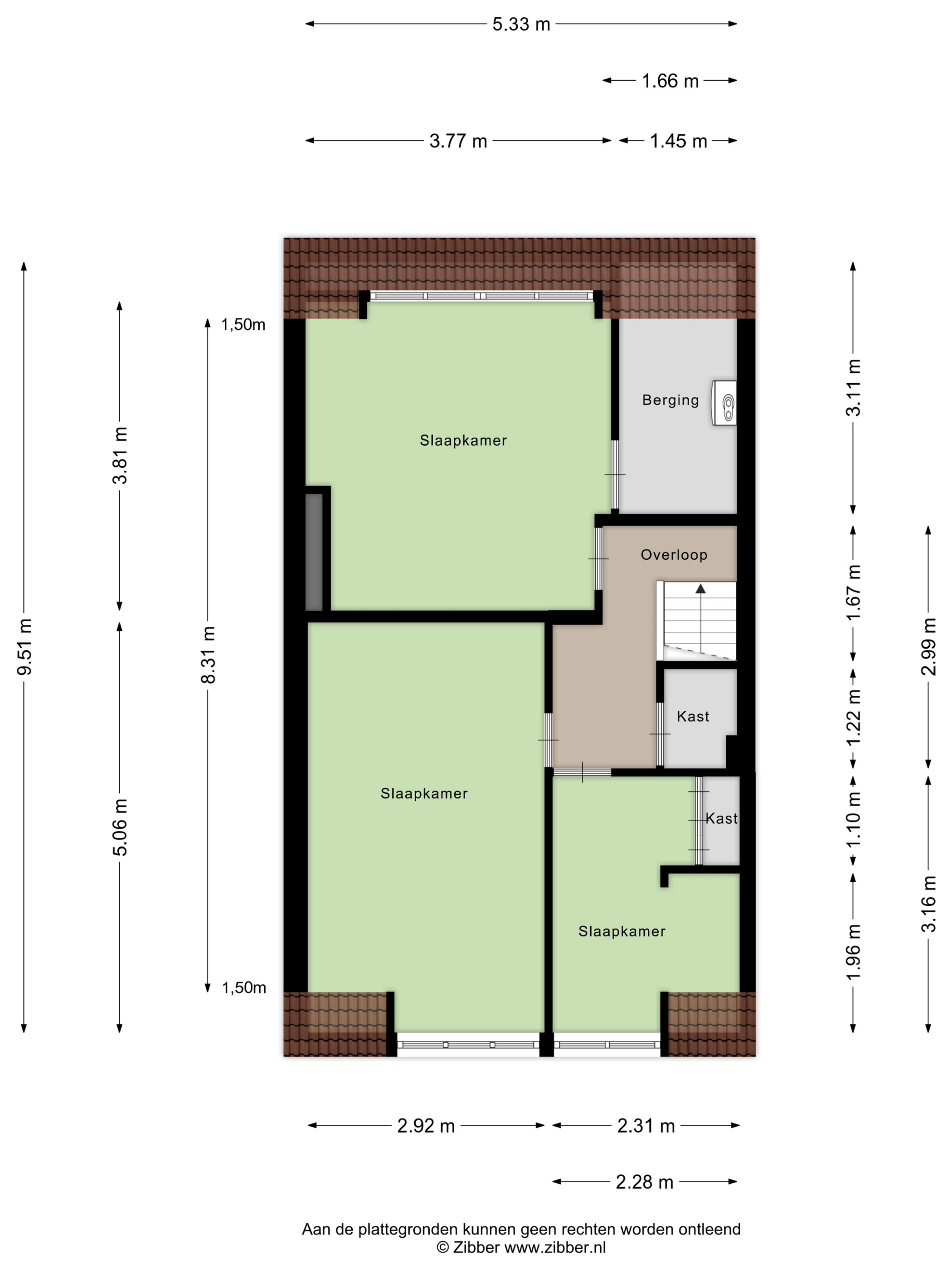 Voor de afmetingen van de diverse vertrekken verwijzen wij u naar de plattegronden.